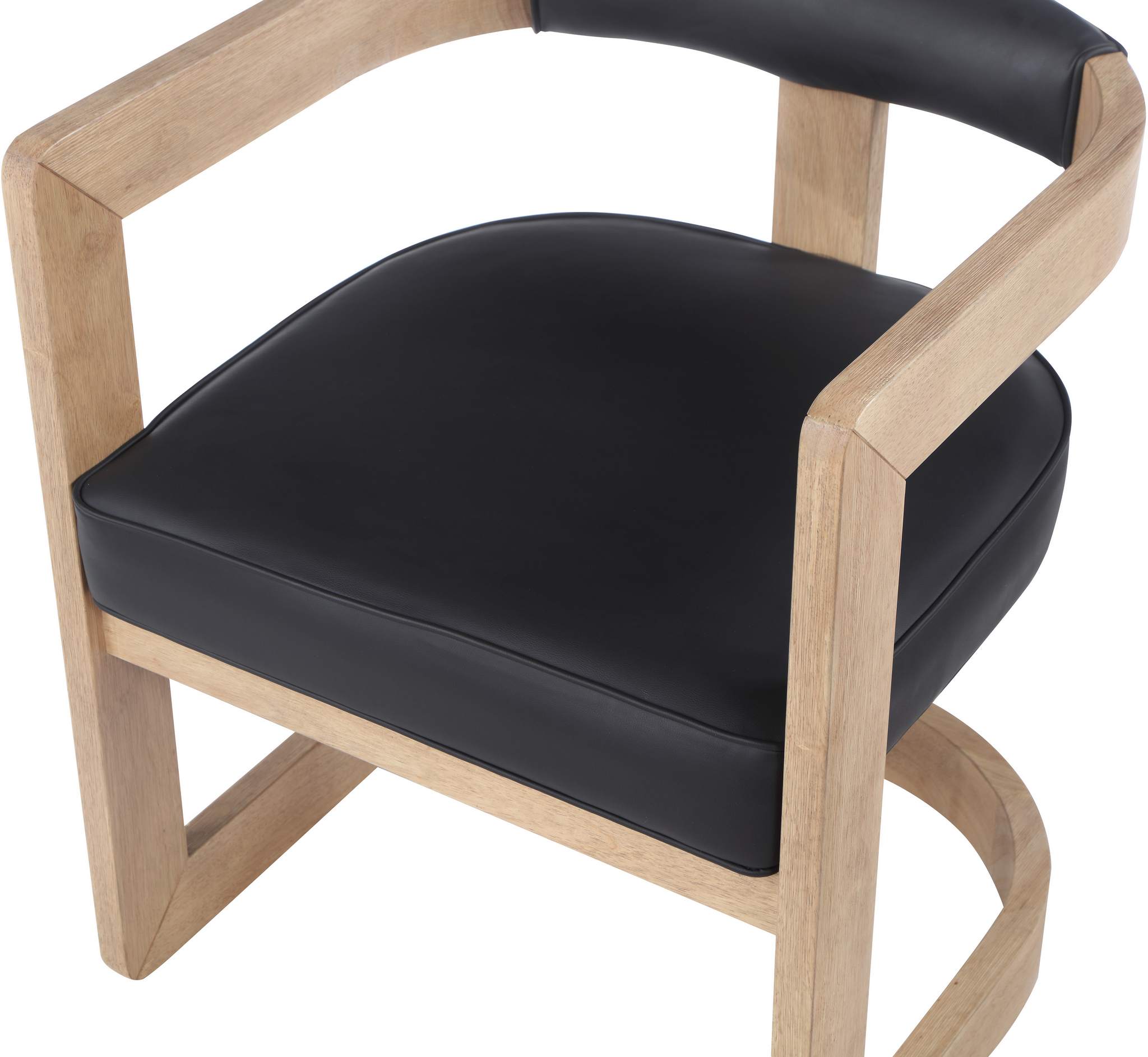 Show off your wild side with this unique Manchester vegan leather dining chair from Meridian Furniture. Featuring a frame crafted out of solid rubber wood with a wire brushed natural finish, this chair makes a bold statement in any dining space. A soft black vegan leather cushion and backrest add comfort while you sit and dine, as well as give the chair a 'wild side' flavor. Its contemporary design works well in any living space.