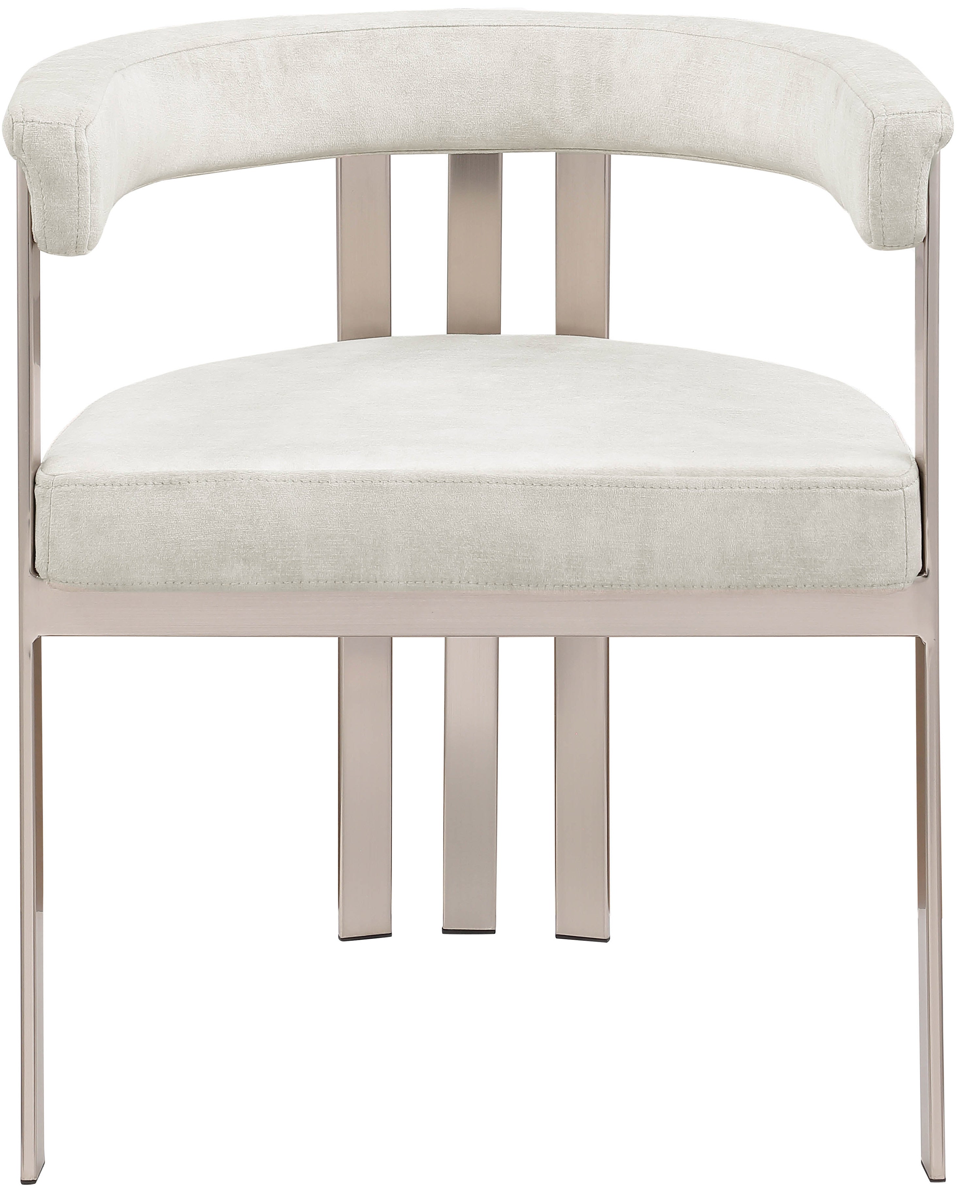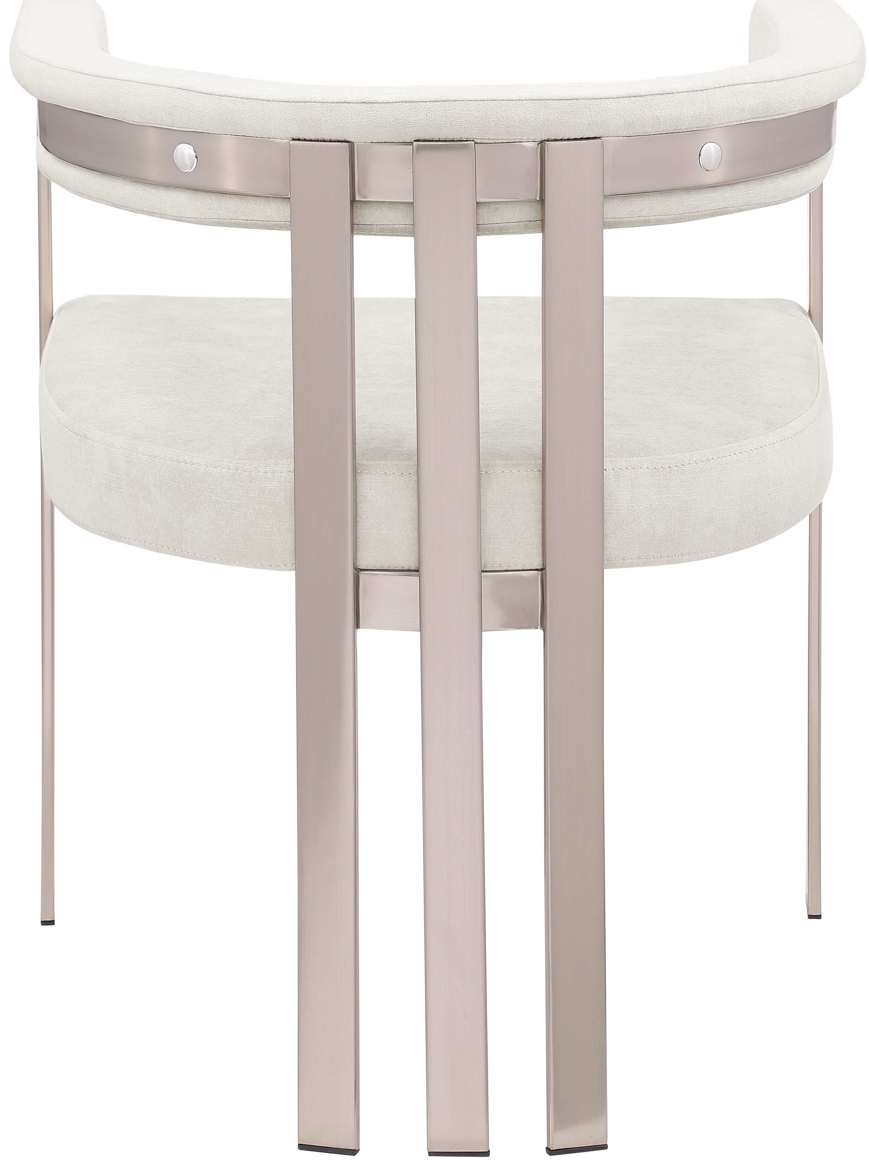 Turn your dining space into a contemporary haven with this Marcello stone velvet dining chair. Its soft, high-end stone velvet is soft for you to sit on, while its brushed chrome iron frame ensures durability for years to come. Its curved back provides support while you sit and enjoy your meal, so your back won't get tired or hurt while you eat. Its curved, contemporary design is perfect for any modern home.