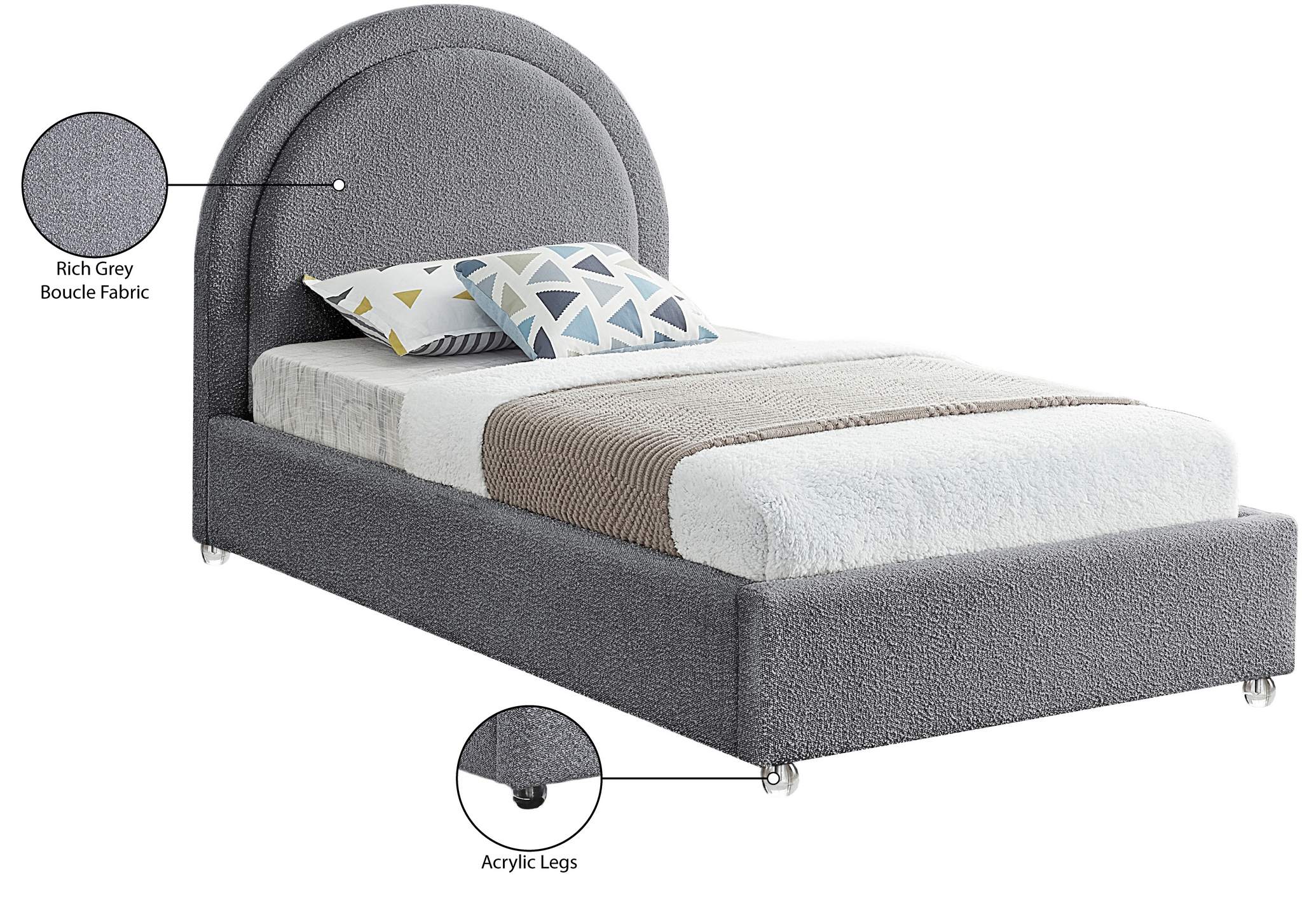 Milo Grey Boucle Fabric Upholstered Twin Bed | Meridian Furniture - MiloGrey-T