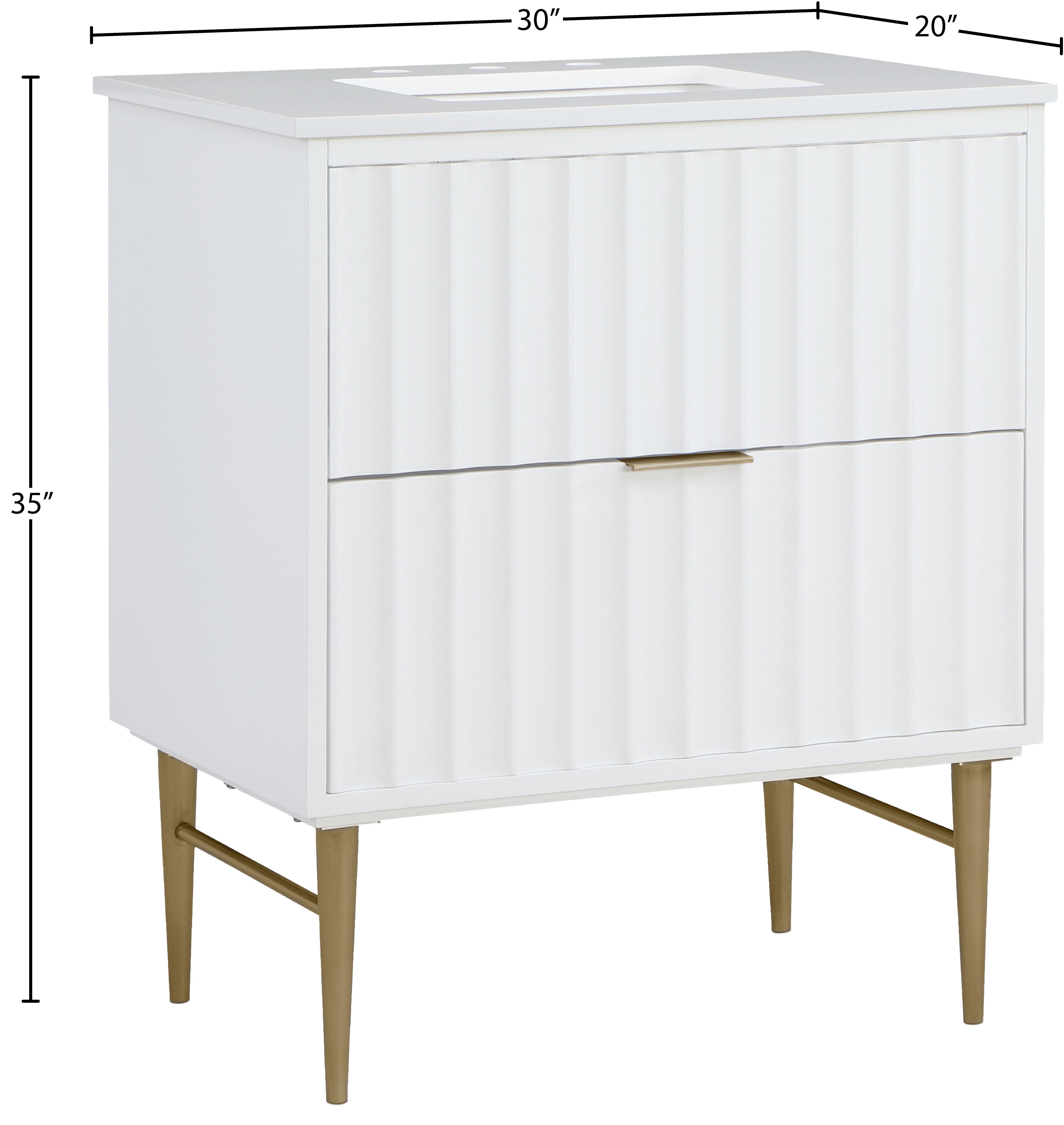Modernist 30" White Engineered Stone Top And Solid Wood Base Bathroom Vanity | Meridian Furniture - 401White-30