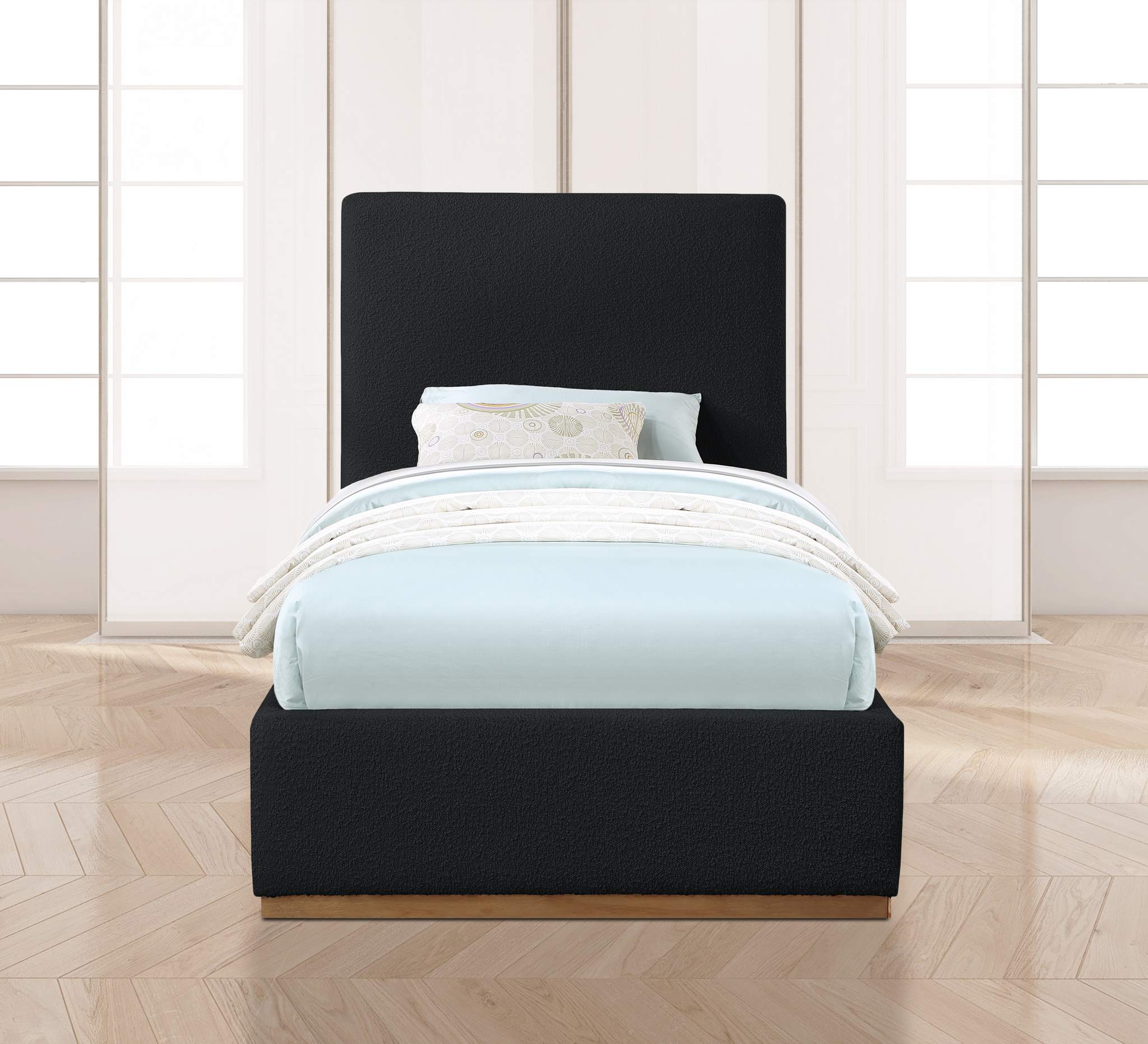 Monaco Black Boucle Fabric Upholstered Twin Bed | Meridian Furniture - MonacoBlack-T