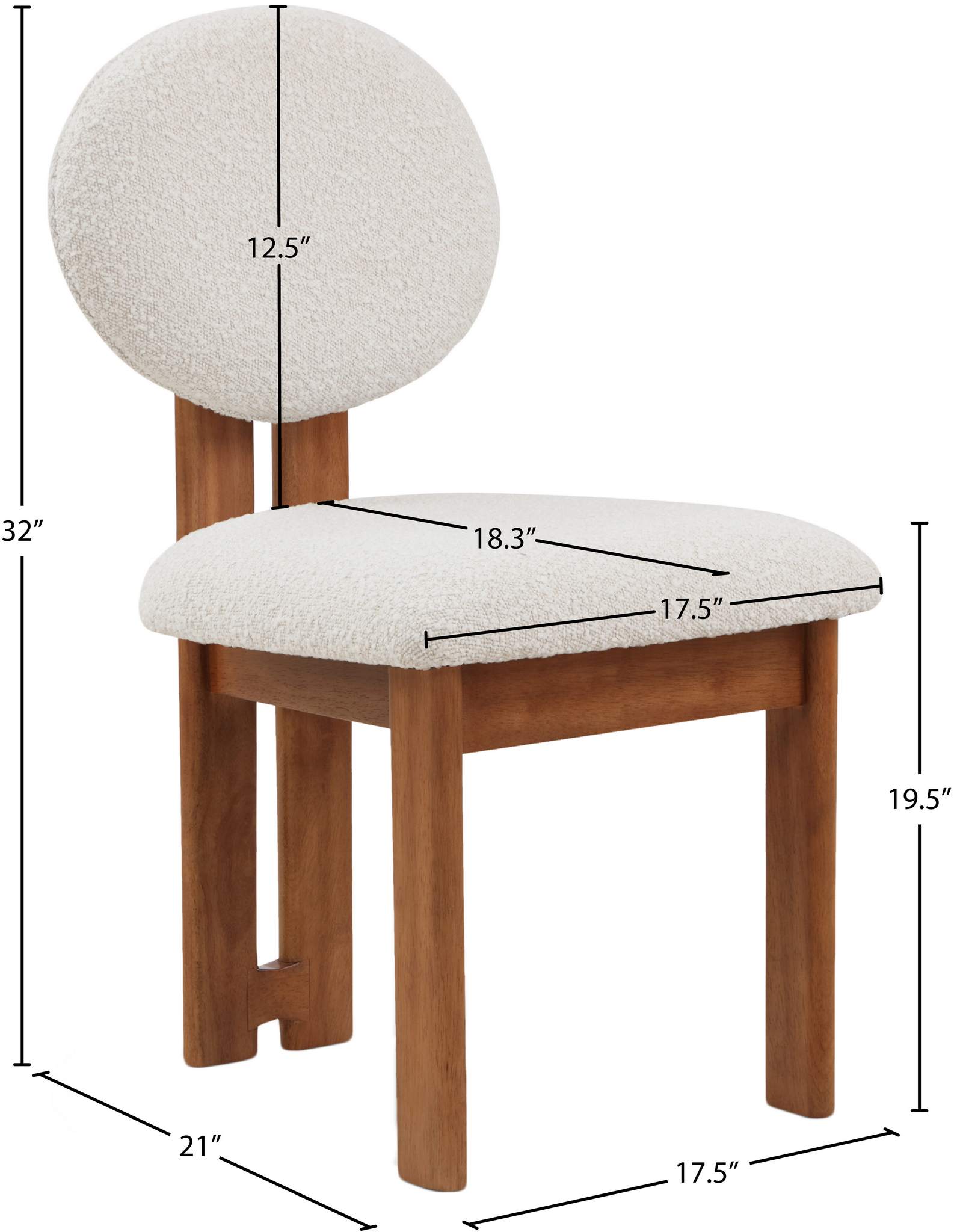 Elevate the look of your dining room with this Napa boucle fabric dining chair. This lovely chair features rich cream boucle fabric upholstery on the seat and back, so guests feel super comfortable from the minute they sit down and throughout the whole meal. Rubberwood and other wood products make up the frame's construction, giving the chair a sturdy countenance to withstand long-term use in your busy dining room or eat-in kitchen area.