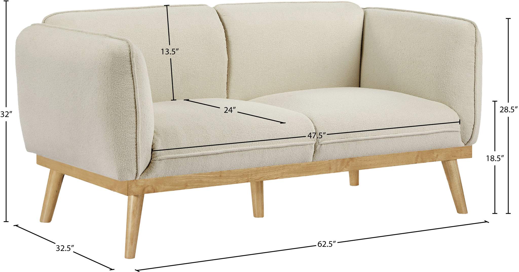 Nolita 62.5" Cream Boucle Fabric Upholstered Loveseat | Meridian Furniture - 159Cream-L