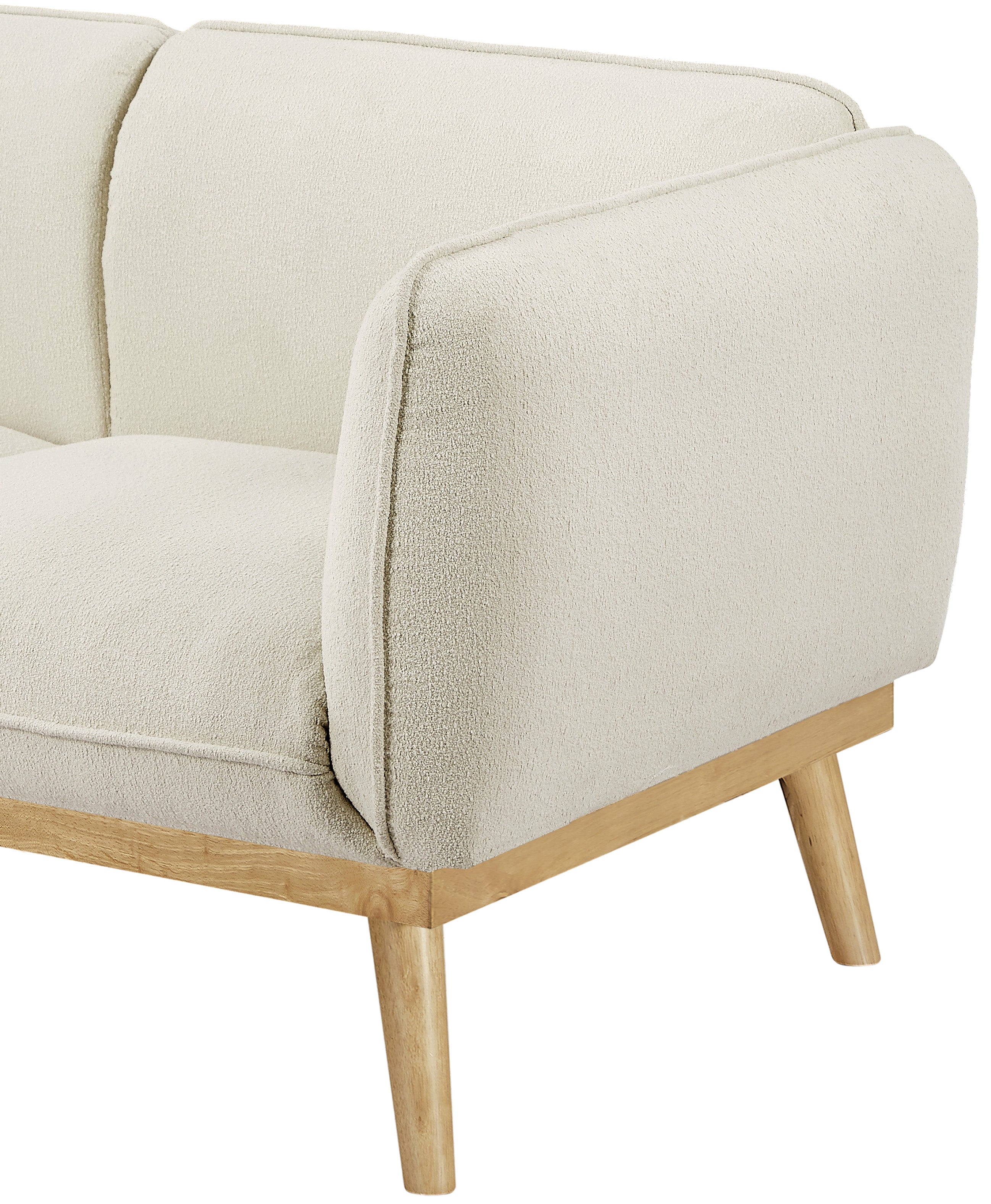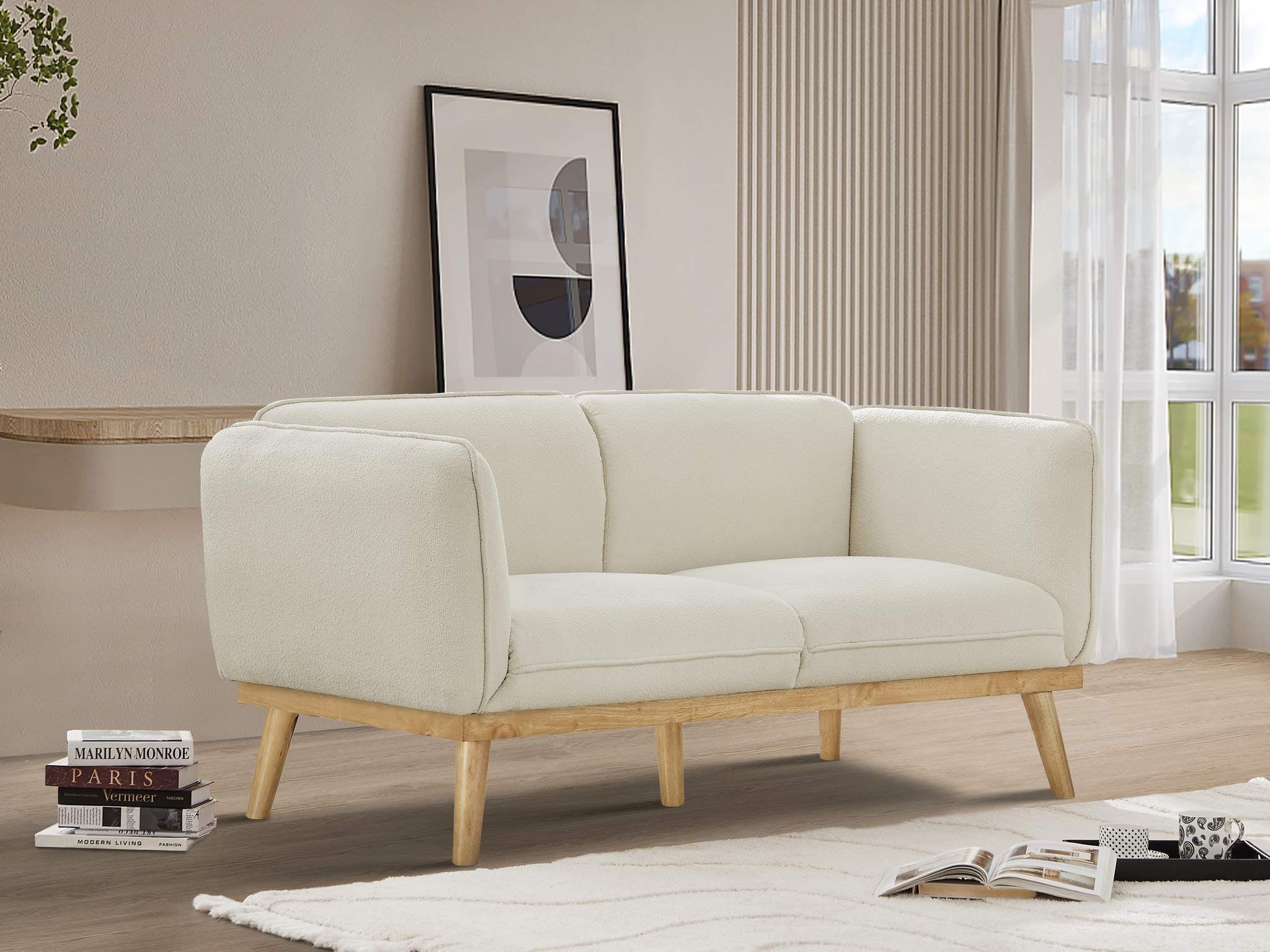 Cozy up with a good book from the confines of this Nolita boucle fabric loveseat. This elegant loveseat is a true showstopper in every sense of the word with its super rich cream boucle fabric that cradles your body in exquisite comfort while you relax and unwind. The midcentury design fits well with your existing furnishings, and the solid wood frame lends this pretty chair the durability it needs to stand up to long-term relaxation and lounging.