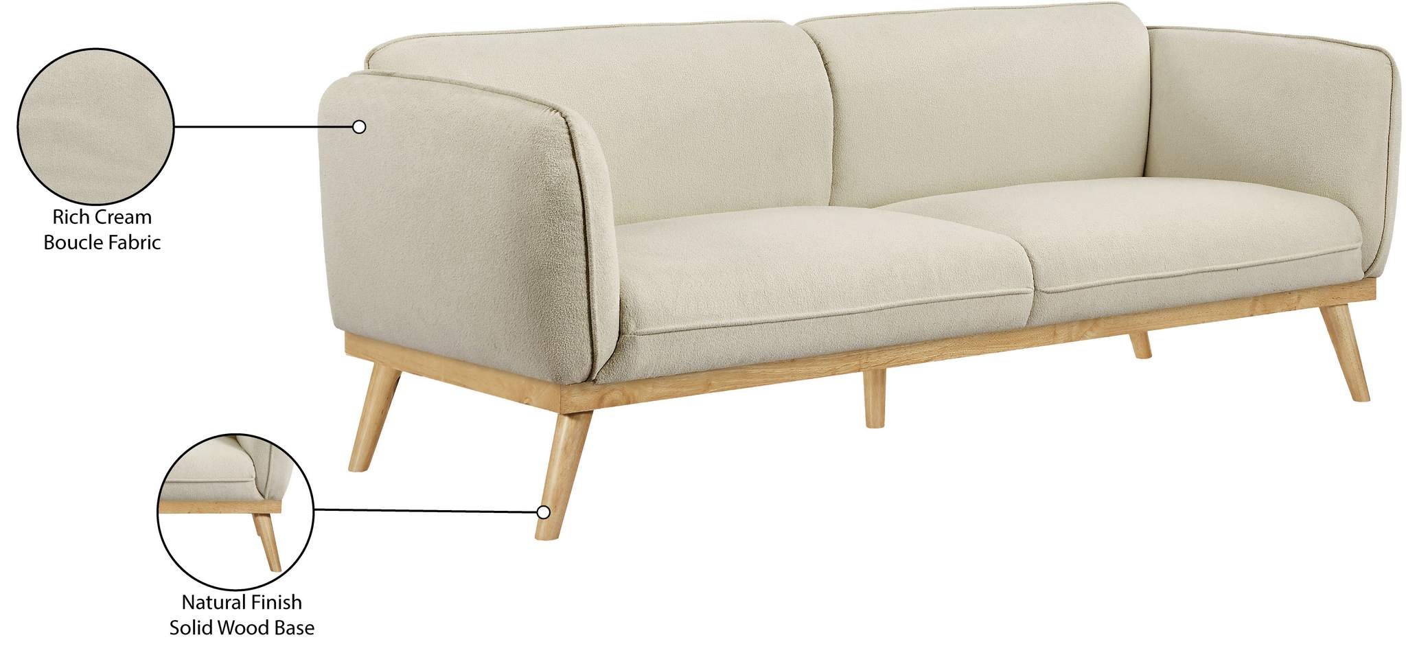 Nolita 82" Cream Boucle Fabric Upholstered Sofa | Meridian Furniture - 159Cream-S