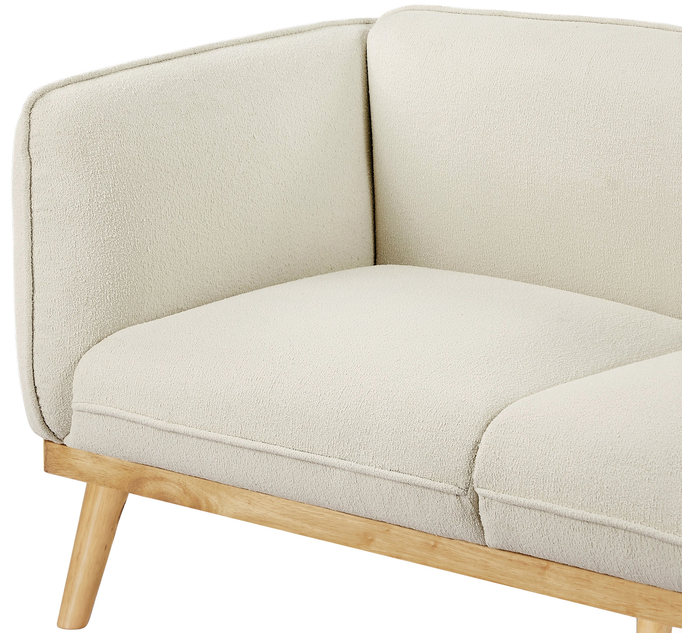 Cozy up with a good book from the confines of this Nolita boucle fabric sofa. This elegant sofa is a true showstopper in every sense of the word with its super rich cream boucle fabric that cradles your body in exquisite comfort while you relax and unwind. The midcentury design fits well with your existing furnishings, and the solid wood frame lends this pretty chair the durability it needs to stand up to long-term relaxation and lounging.