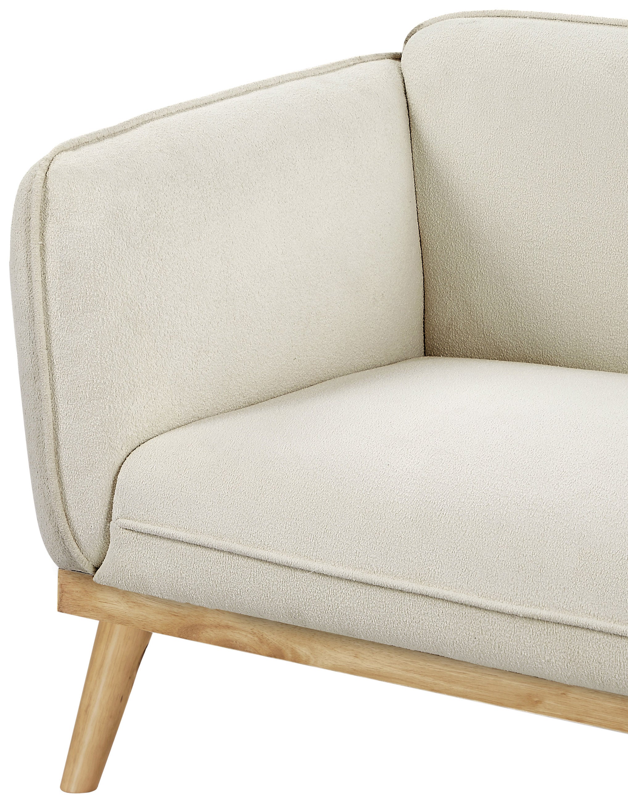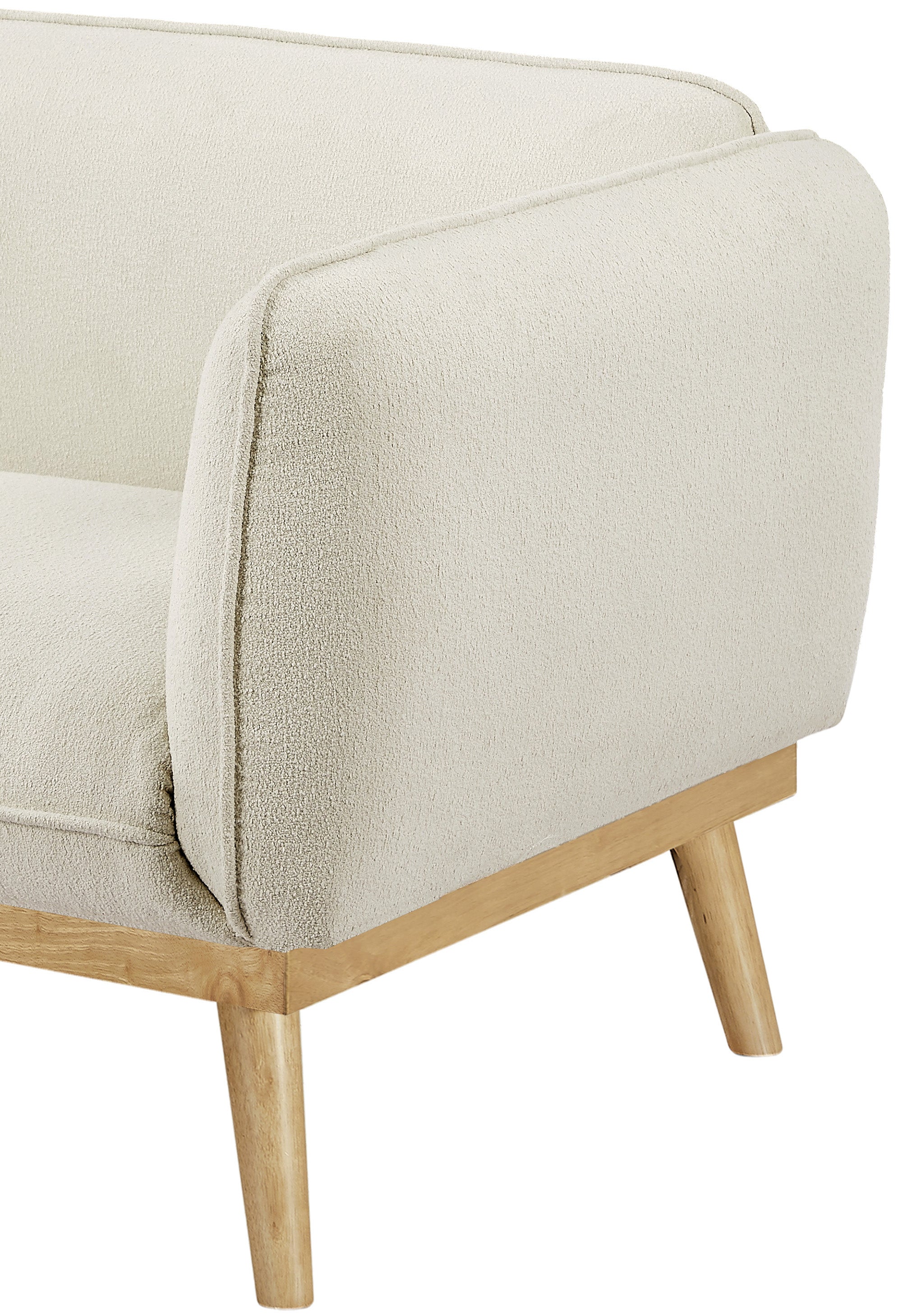 Cozy up with a good book from the confines of this Nolita boucle fabric chair. This elegant chair is a true showstopper in every sense of the word with its super rich cream boucle fabric that cradles your body in exquisite comfort while you relax and unwind. The midcentury design fits well with your existing furnishings, and the solid wood frame lends this pretty chair the durability it needs to stand up to long-term relaxation and lounging.