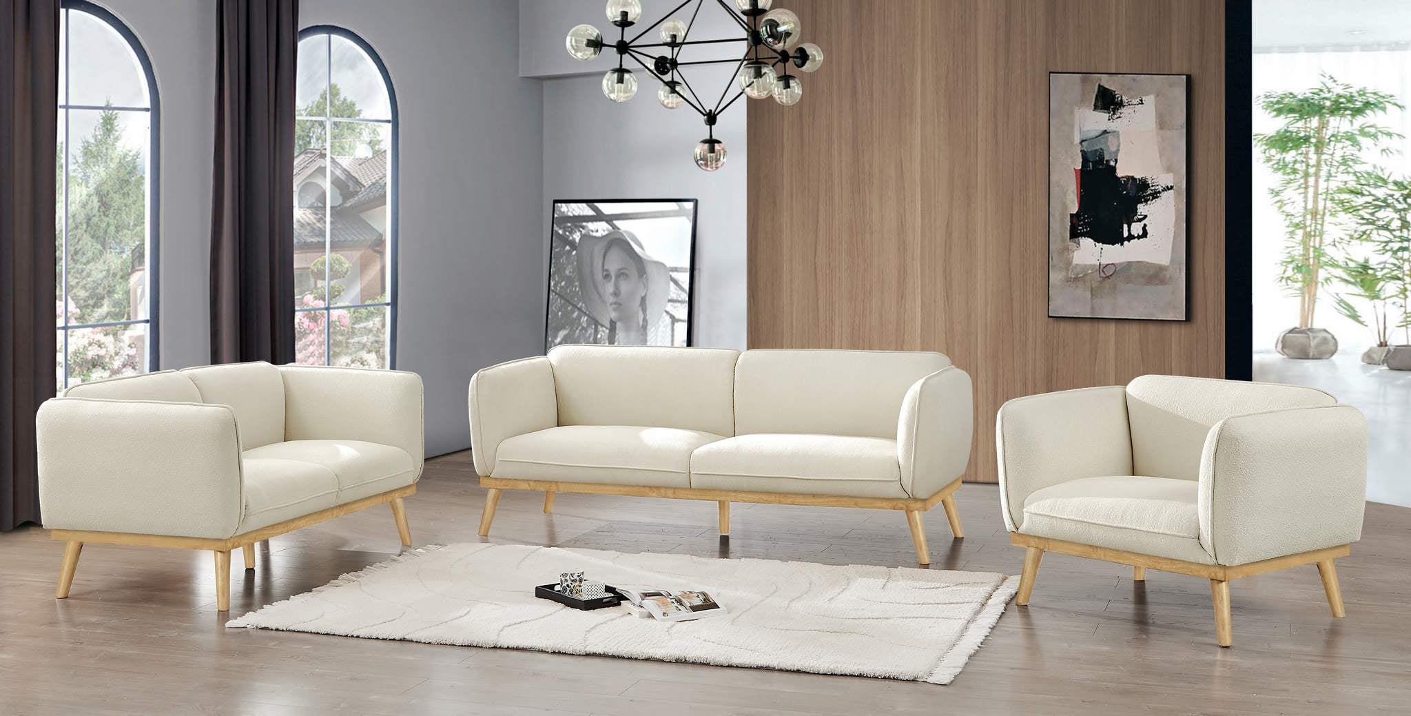 Material: Boucle Fabric / Solid Wood / Foam