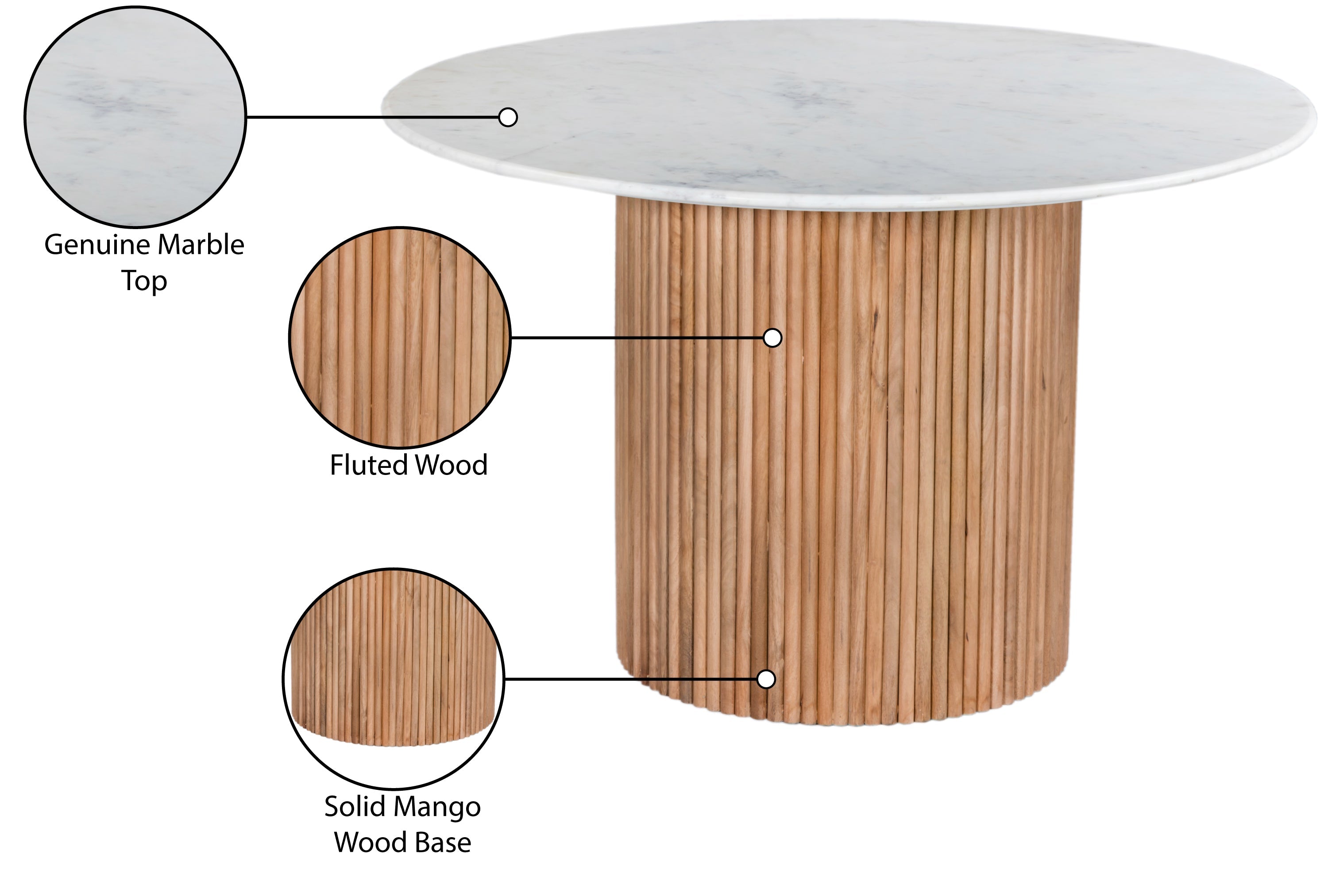 Oakhill 47" Natural Marble Top And Mango Wood Base Dining Table | Meridian Furniture - 757-T
