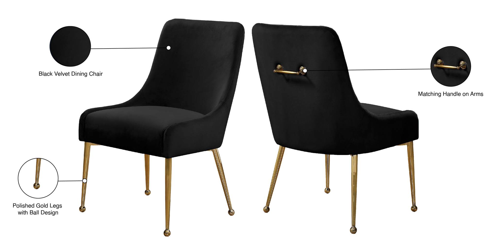 Owen Black Velvet Upholstered Dining Chair (Set of 2) | Meridian Furniture - 744Black