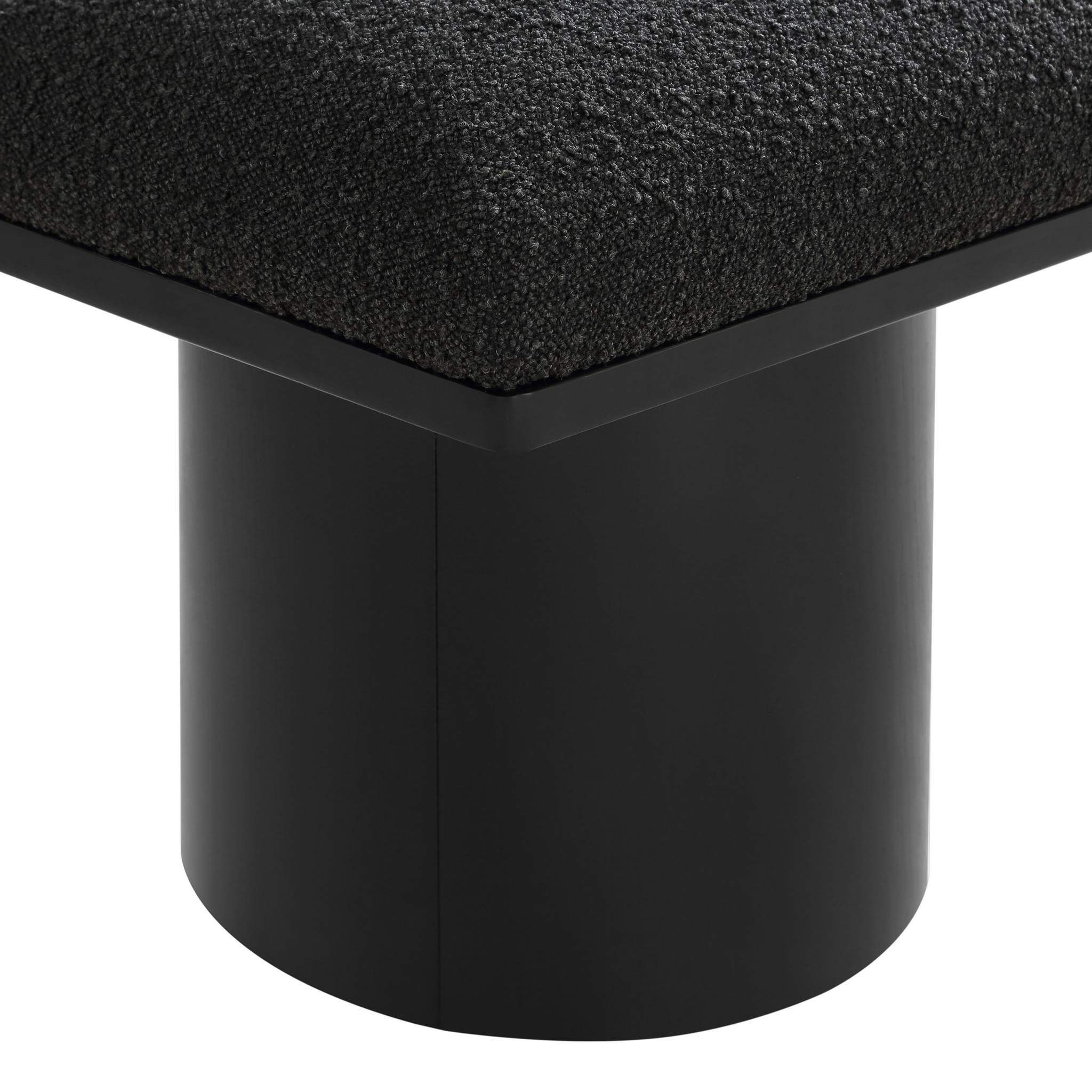 Bring valuable seating and remarkable style to your space with this black Pavilion Boucle Fabric Bench/Stool, an exquisite balance of style and usability for the entryway, bedroom, and beyond. Crafted from oak veneer with a black finish, this bench has a 4-inch-thick seat cushion that's channel-tufted for a touch of luxury. The bench's columnar bases add a dash of Art Deco design, making it a captivating focal point in any room.