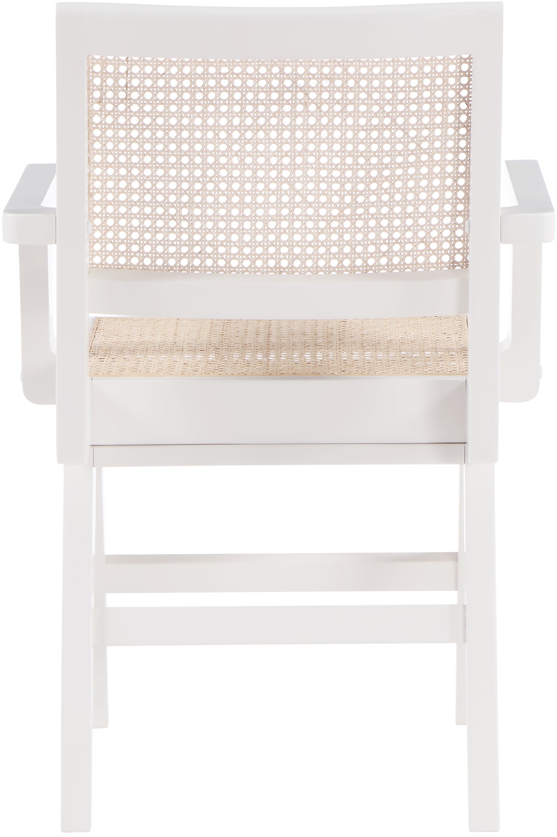 Preston White Solid Wood And Natural Cane Dining Arm Chair (Set of 2) | Meridian Furniture - 588White-AC