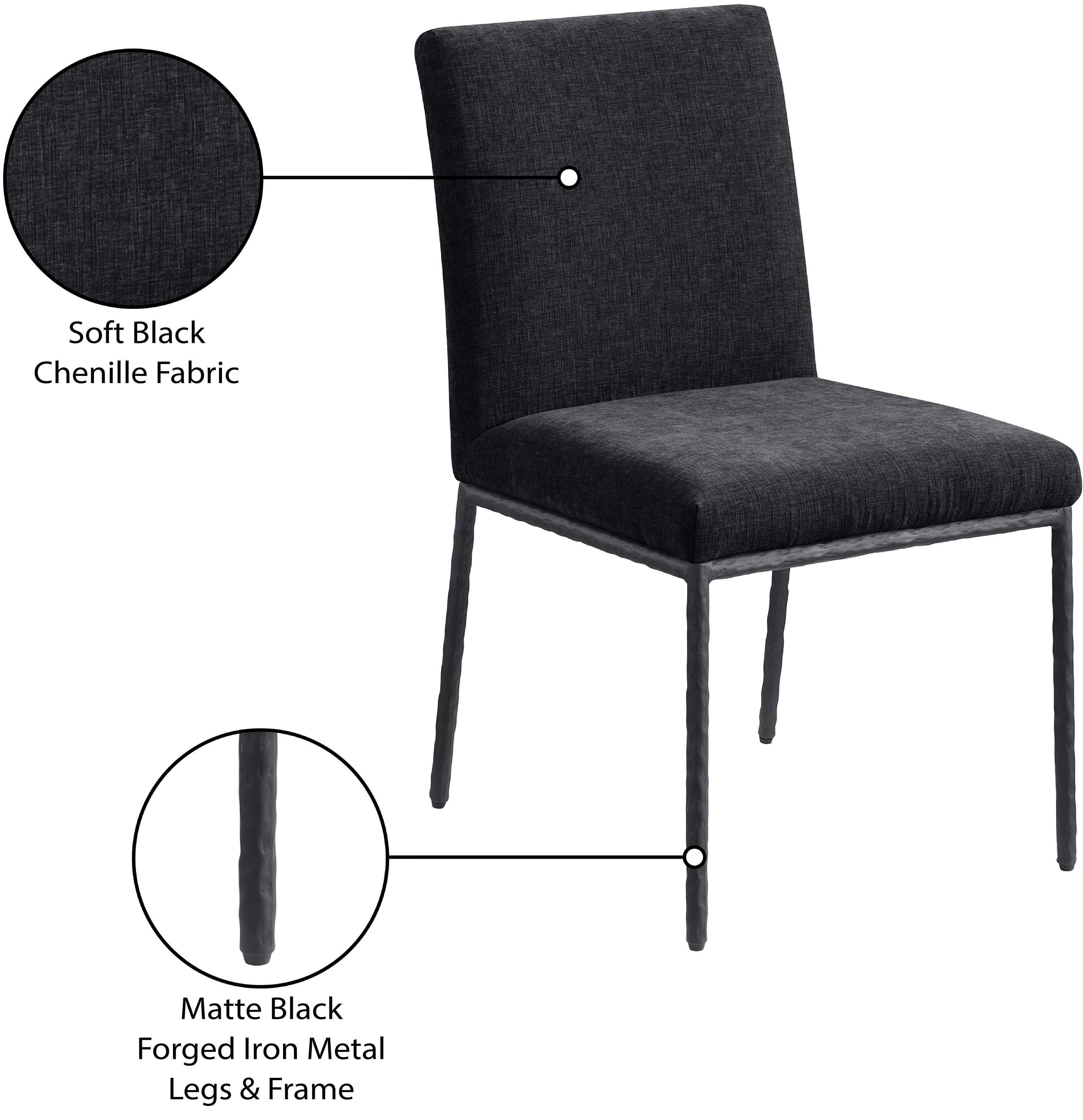 Reeves Black Chenille Fabric Upholstered Dining Side Chair (Set of 2) | Meridian Furniture - 11001Black-SC
