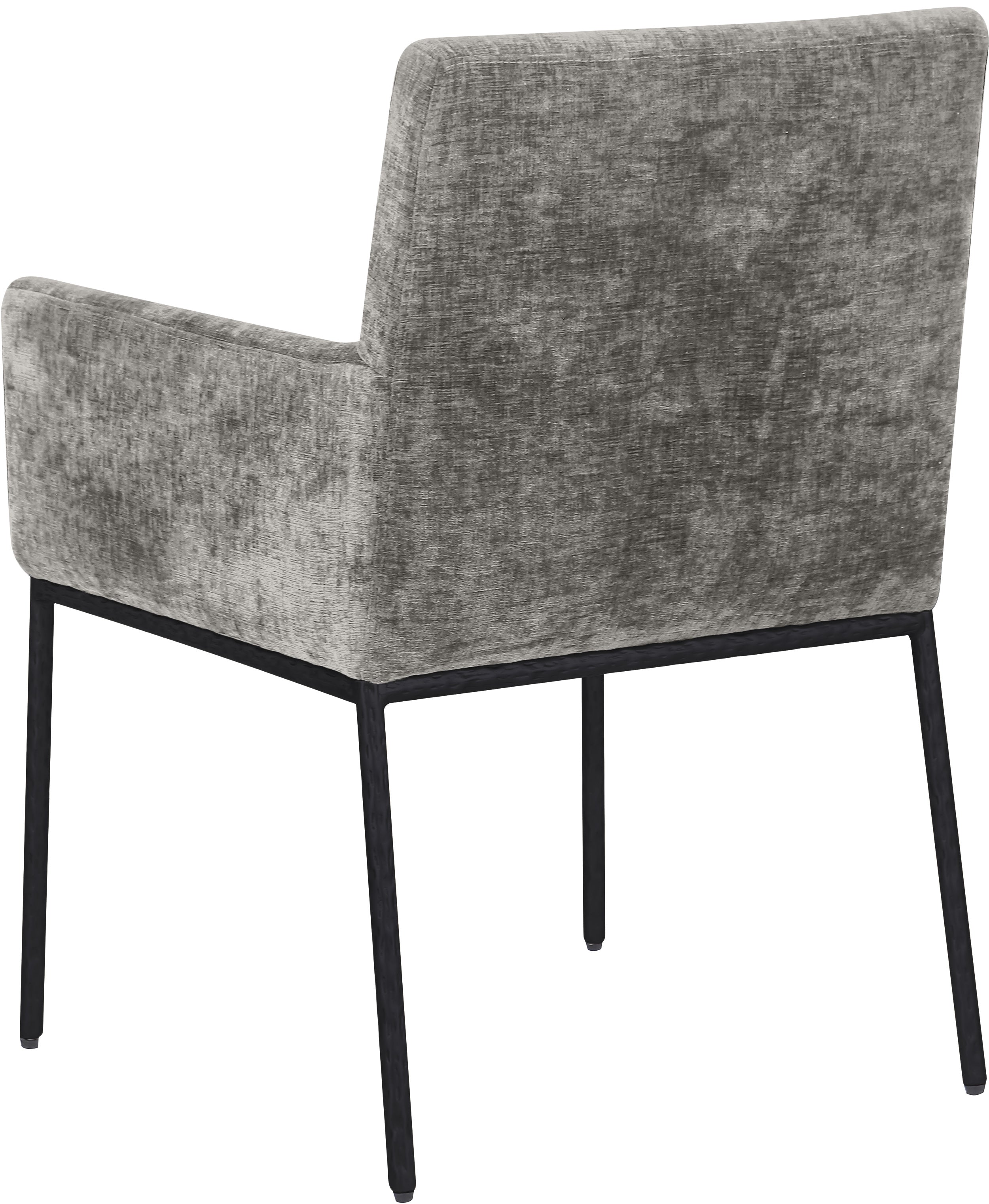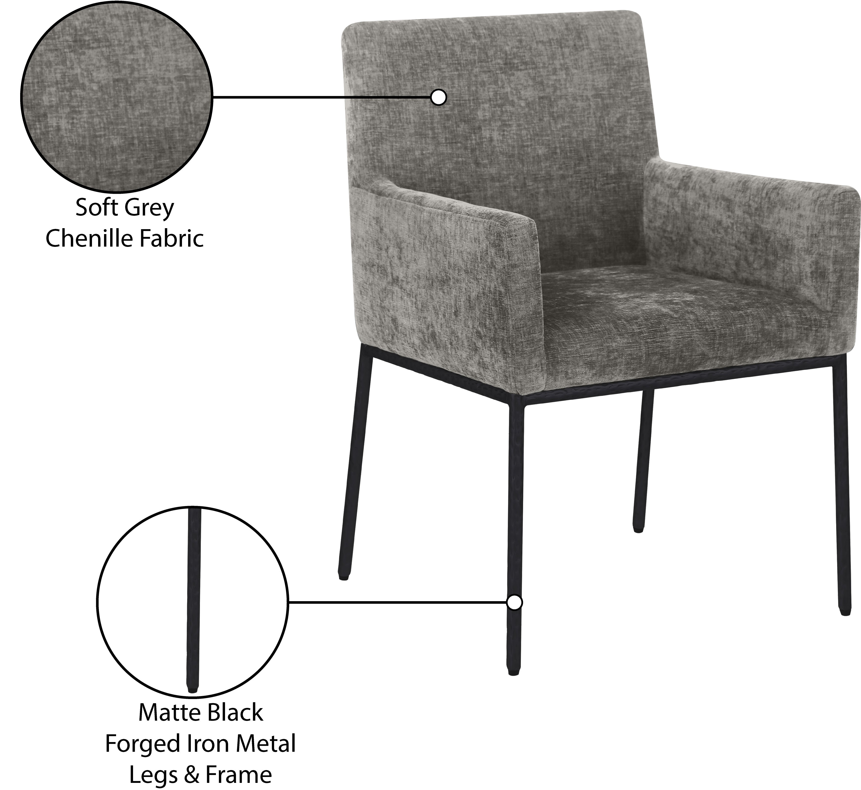 Casual comfort is the order of the day when dinner guests relax from the cozy confines of this Reeves soft grey chenille fabric dining chair. Sumptuously padded arms, back, and seat ensure total comfort from appetizers through dessert, and the neutral, solid-colored upholstered makes it easy to pair this dining chair with the table of your choice. An all-metal frame matte black and legs lend a contemporary finish and impeccable sturdiness and strength for long-term enjoyment.