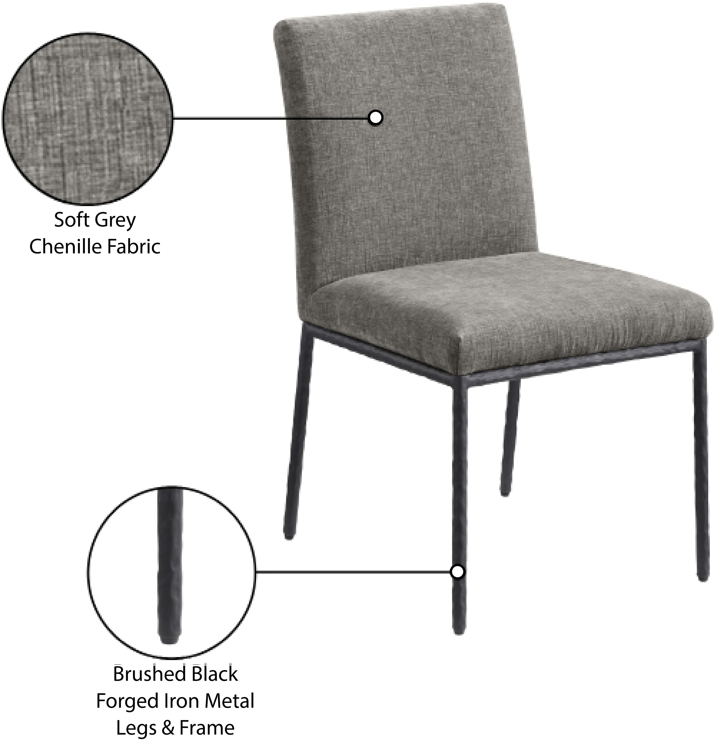 Reeves Grey Chenille Fabric Upholstered Dining Side Chair (Set of 2) | Meridian Furniture - 11001Grey-SC