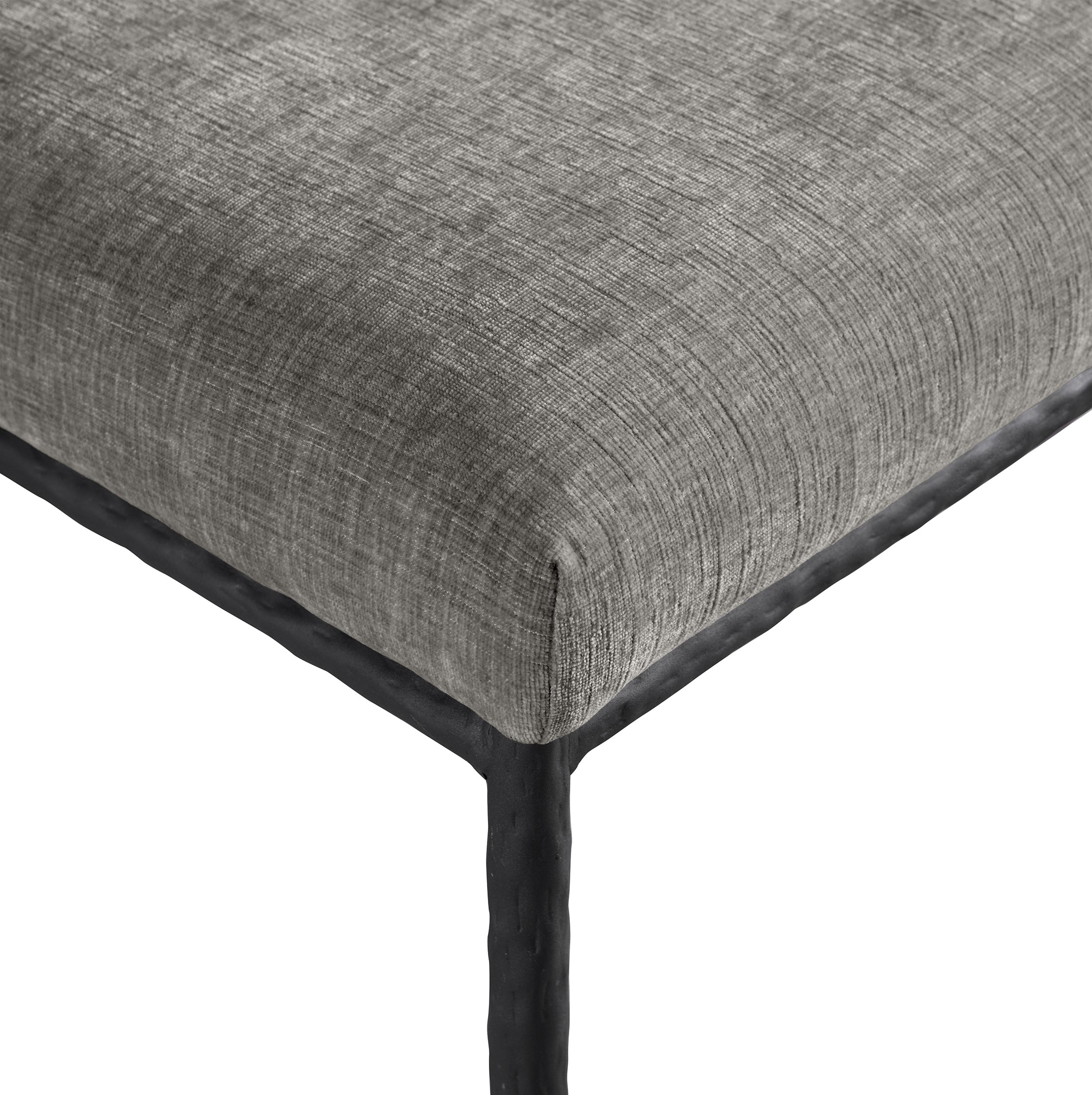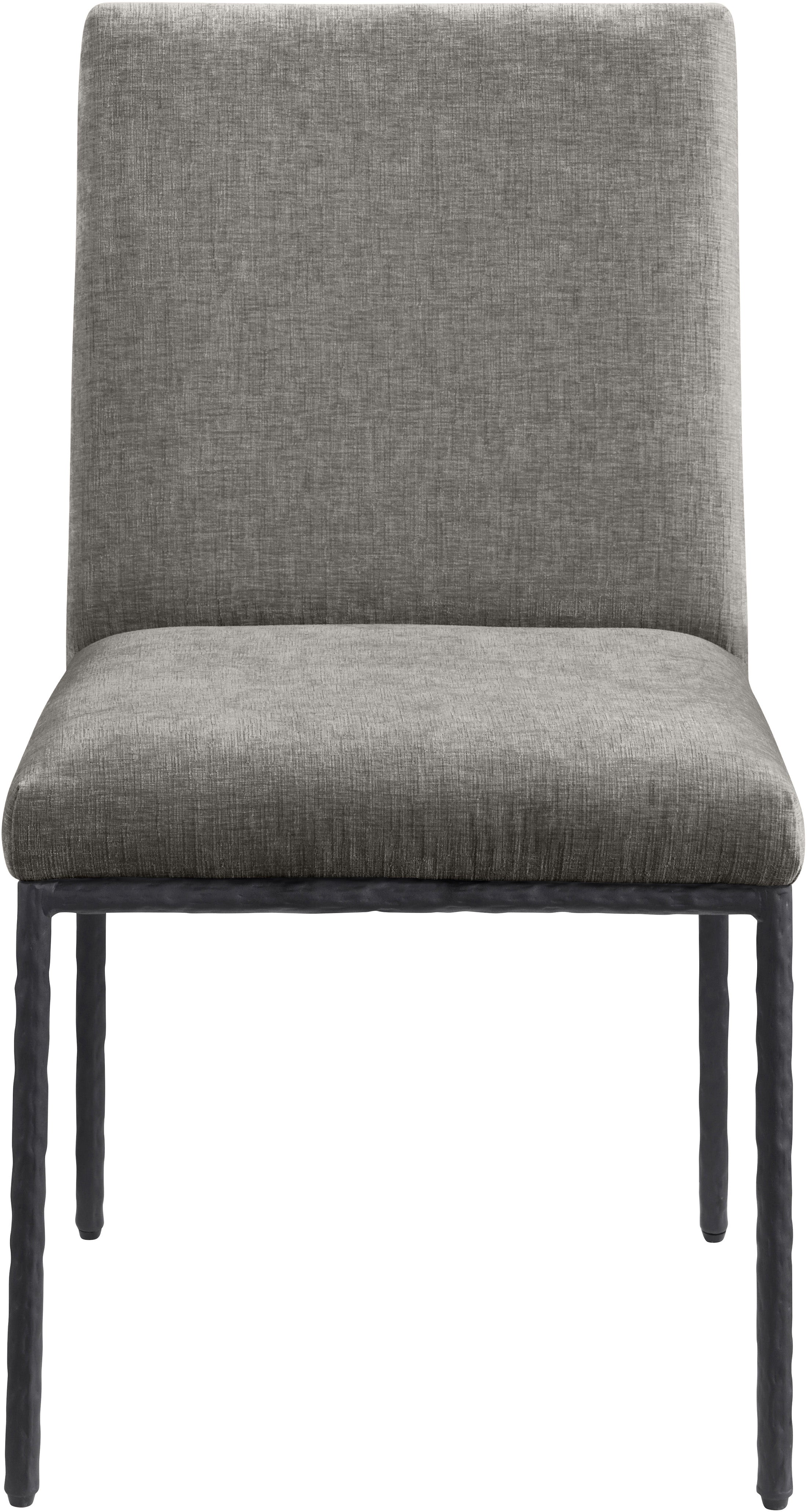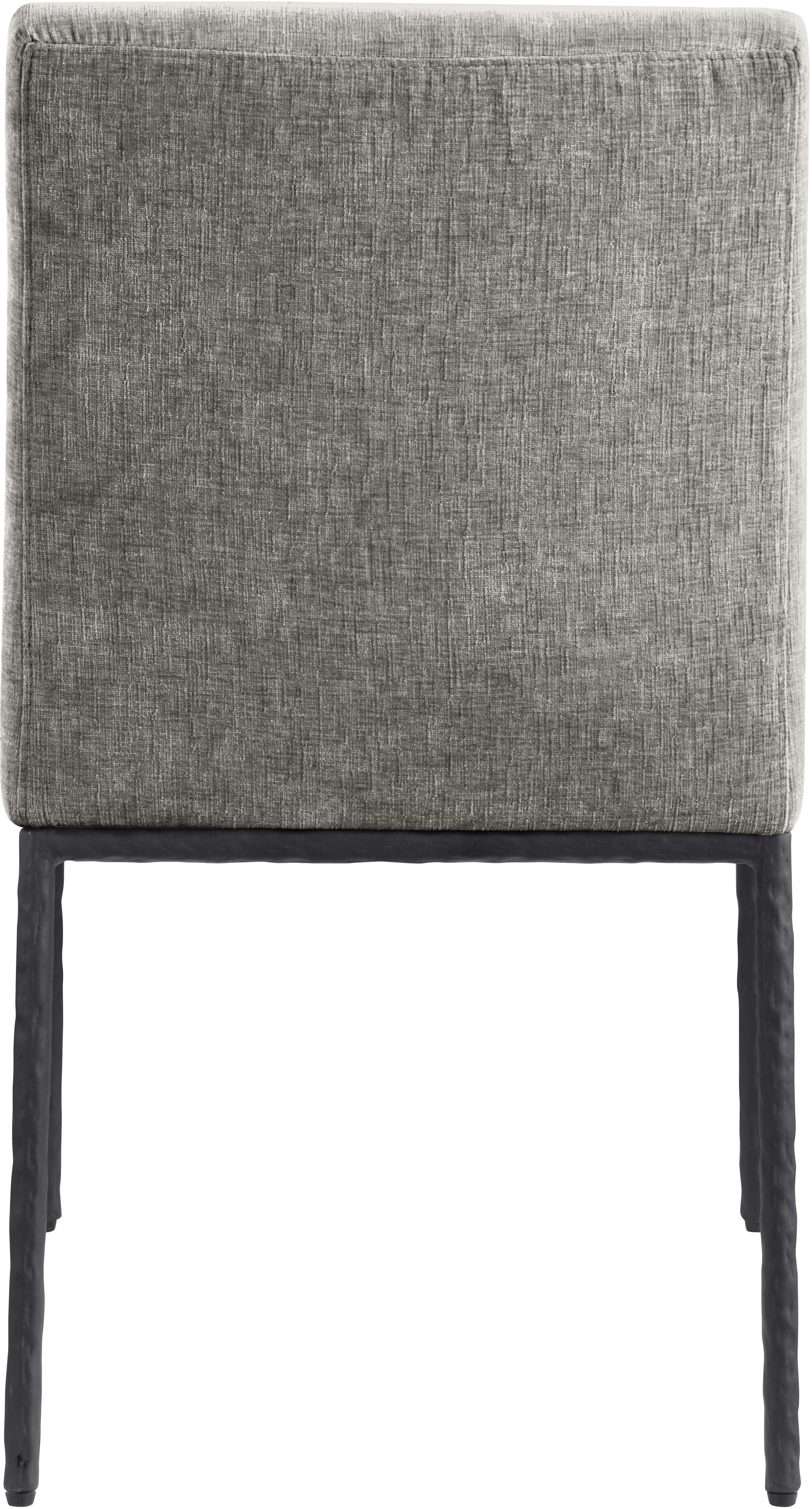 With an effortless sophistication, the Reeves grey chenille fabric upholstered dining side chair elevates your dining space with its soft fabric and elegantly textured design. Supported by sturdy, hand-forged matte black metal legs, this chair blends refined comfort with artisanal craftsmanship. Its clean silhouette and plush upholstery make it a perfect addition to modern and transitional interiors, offering both style and everyday functionality.