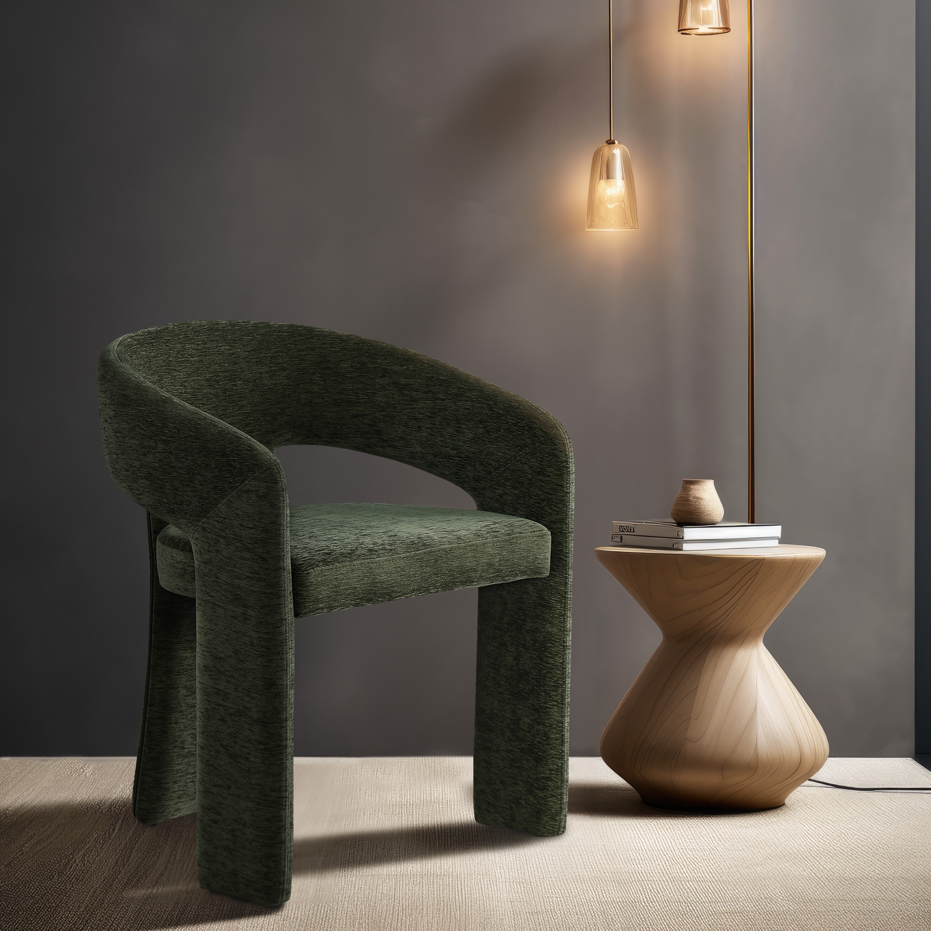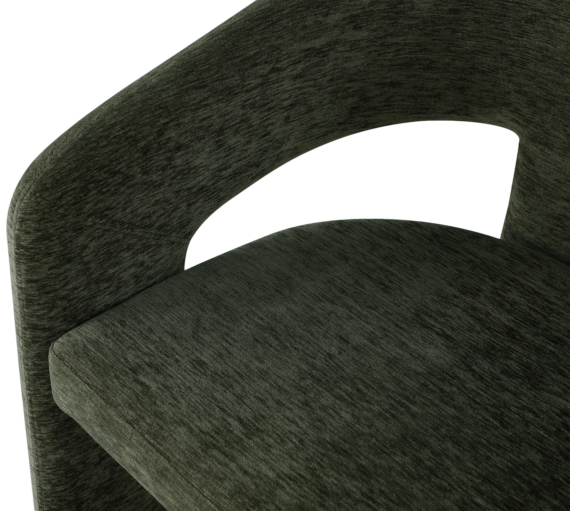 Make guests do a double take when you seat them in this fabulous Rendition fabric dining chair. This lovely chair is as eye-catching as it is modish and fun, with a curved back that supports your body so you can relax and unwind while you dine. Soft green plush fabric is welcoming and soft, and a frame made from iron retains impeccable durability to hold up to long-term use.