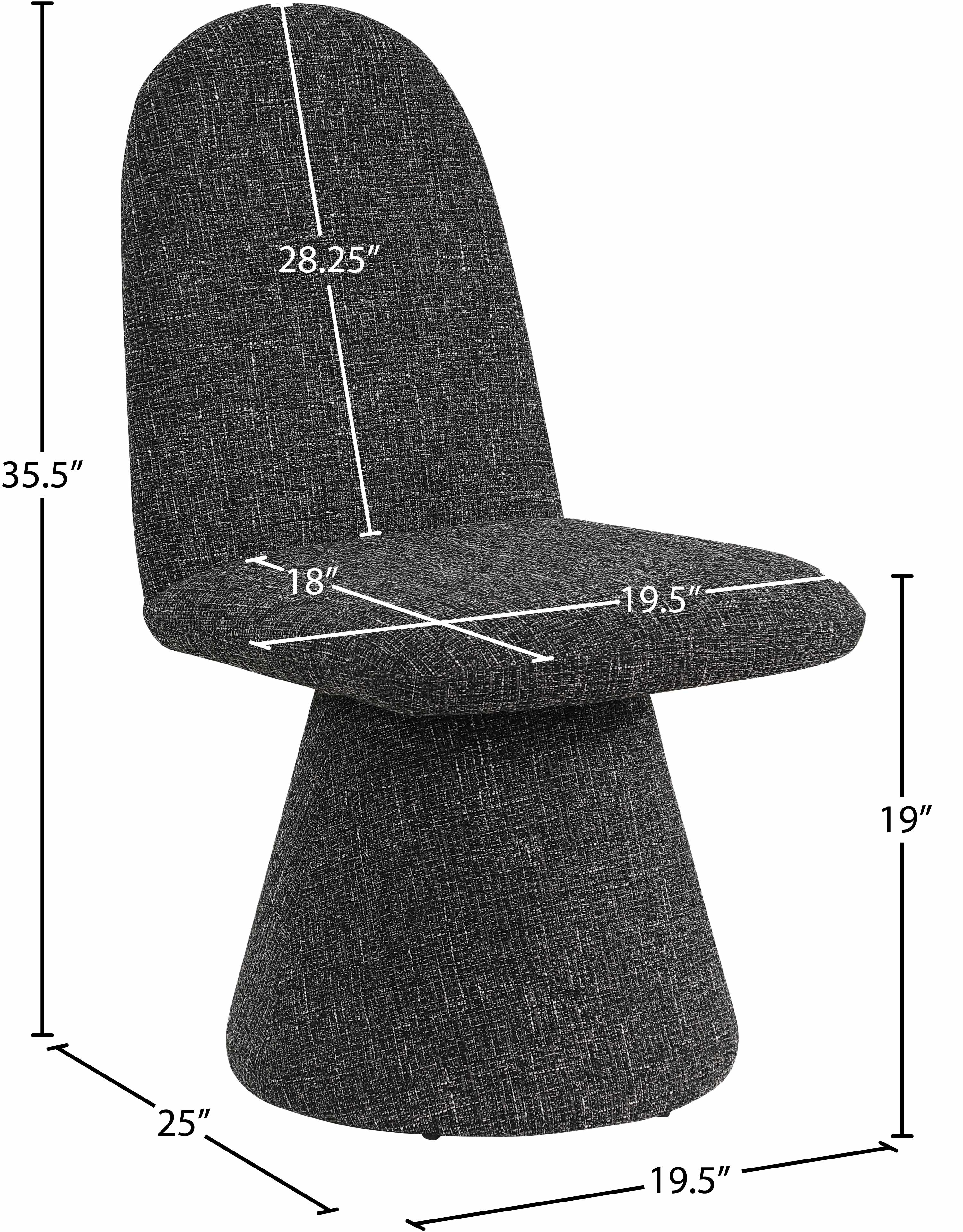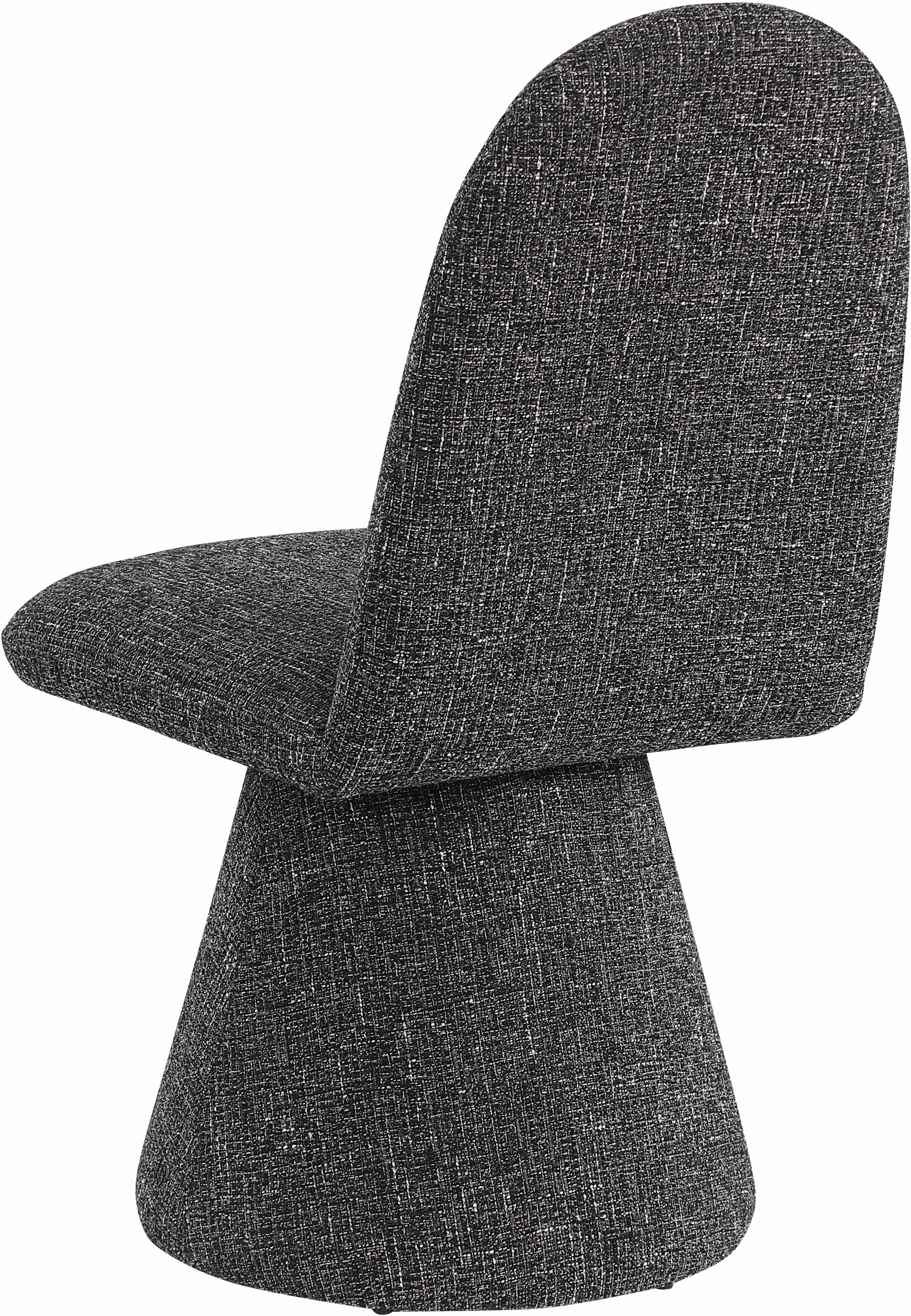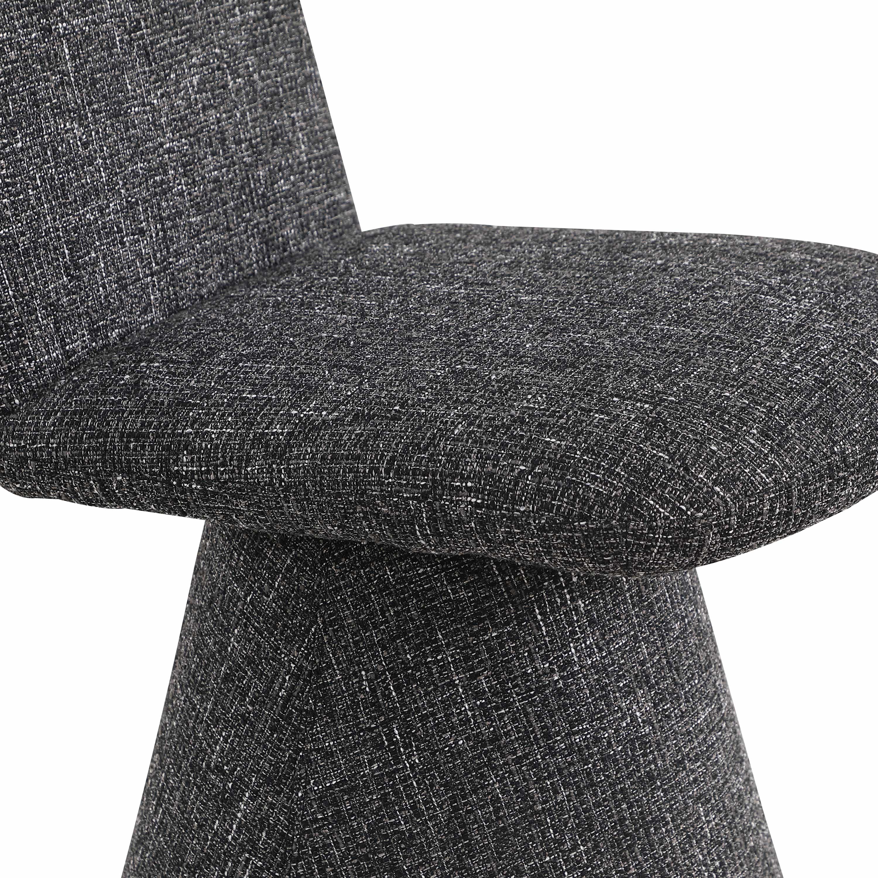 Introduce a touch of elegance with this Art Deco-inspired Renuar black fabric dining chair, upholstered in a rich, interwoven polyester fabric that blends for a textured look. The intricate weave creates a dimensional look, giving the chair a sophisticated and timeless feel. Perfect for any living room, bedroom, or lounge, this chair's stylish design and luxurious fabric combine classic charm with modern comfort, making it a statement piece in any decor.