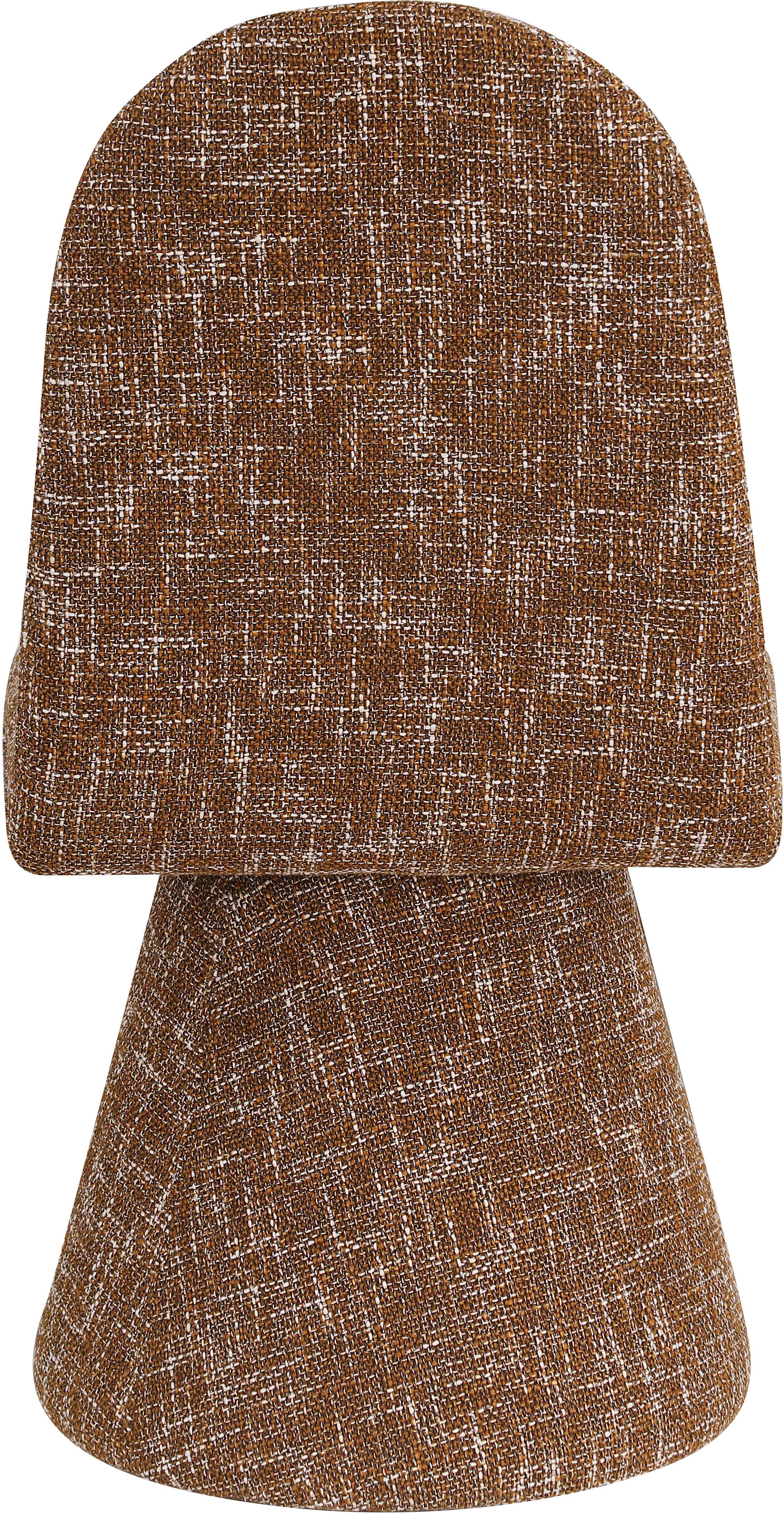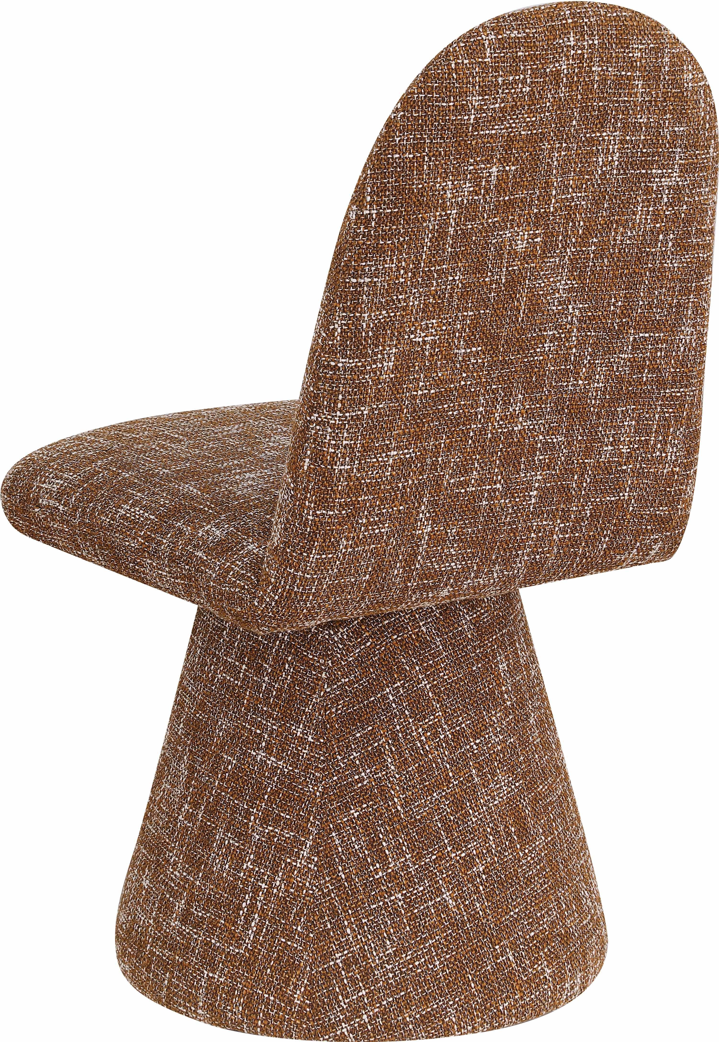 Introduce a touch of elegance with this Art Deco-inspired Renuar cognac fabric dining chair, upholstered in a rich, interwoven polyester fabric that blends for a textured look. The intricate weave creates a dimensional look, giving the chair a sophisticated and timeless feel. Perfect for any living room, bedroom, or lounge, this chair's stylish design and luxurious fabric combine classic charm with modern comfort, making it a statement piece in any decor.