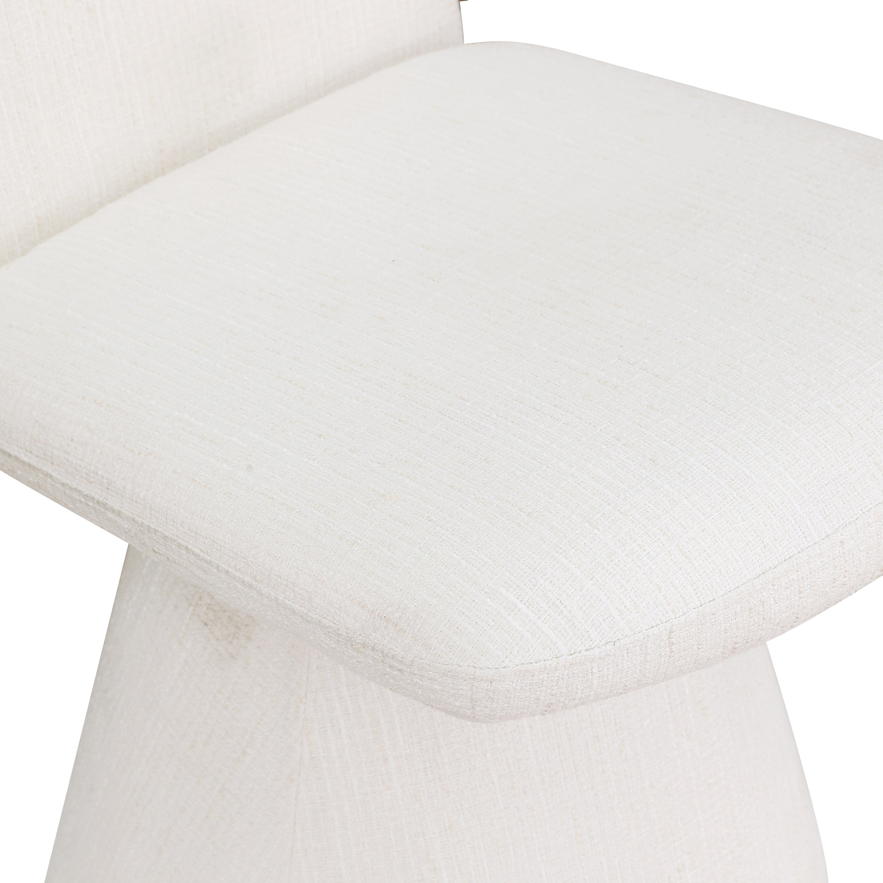 Introduce a touch of elegance with this Art Deco-inspired Renuar cream fabric dining chair, upholstered in a rich, interwoven polyester fabric that blends for a textured look. The intricate weave creates a dimensional look, giving the chair a sophisticated and timeless feel. Perfect for any living room, bedroom, or lounge, this chair's stylish design and luxurious fabric combine classic charm with modern comfort, making it a statement piece in any decor.