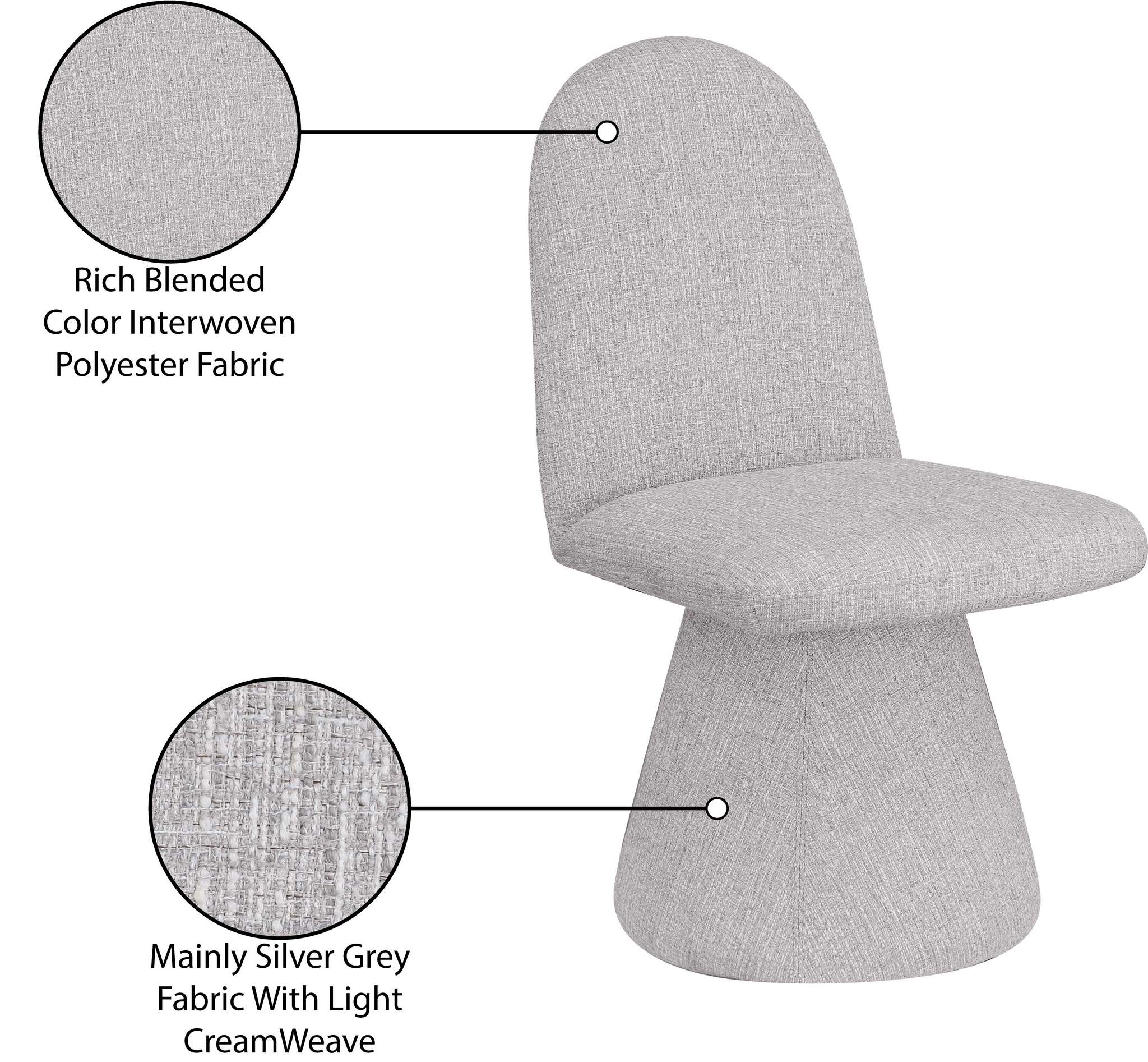 Introduce a touch of elegance with this Art Deco-inspired Renuar grey fabric dining chair, upholstered in a rich, interwoven polyester fabric that blends for a textured look. The intricate weave creates a dimensional look, giving the chair a sophisticated and timeless feel. Perfect for any living room, bedroom, or lounge, this chair's stylish design and luxurious fabric combine classic charm with modern comfort, making it a statement piece in any decor.