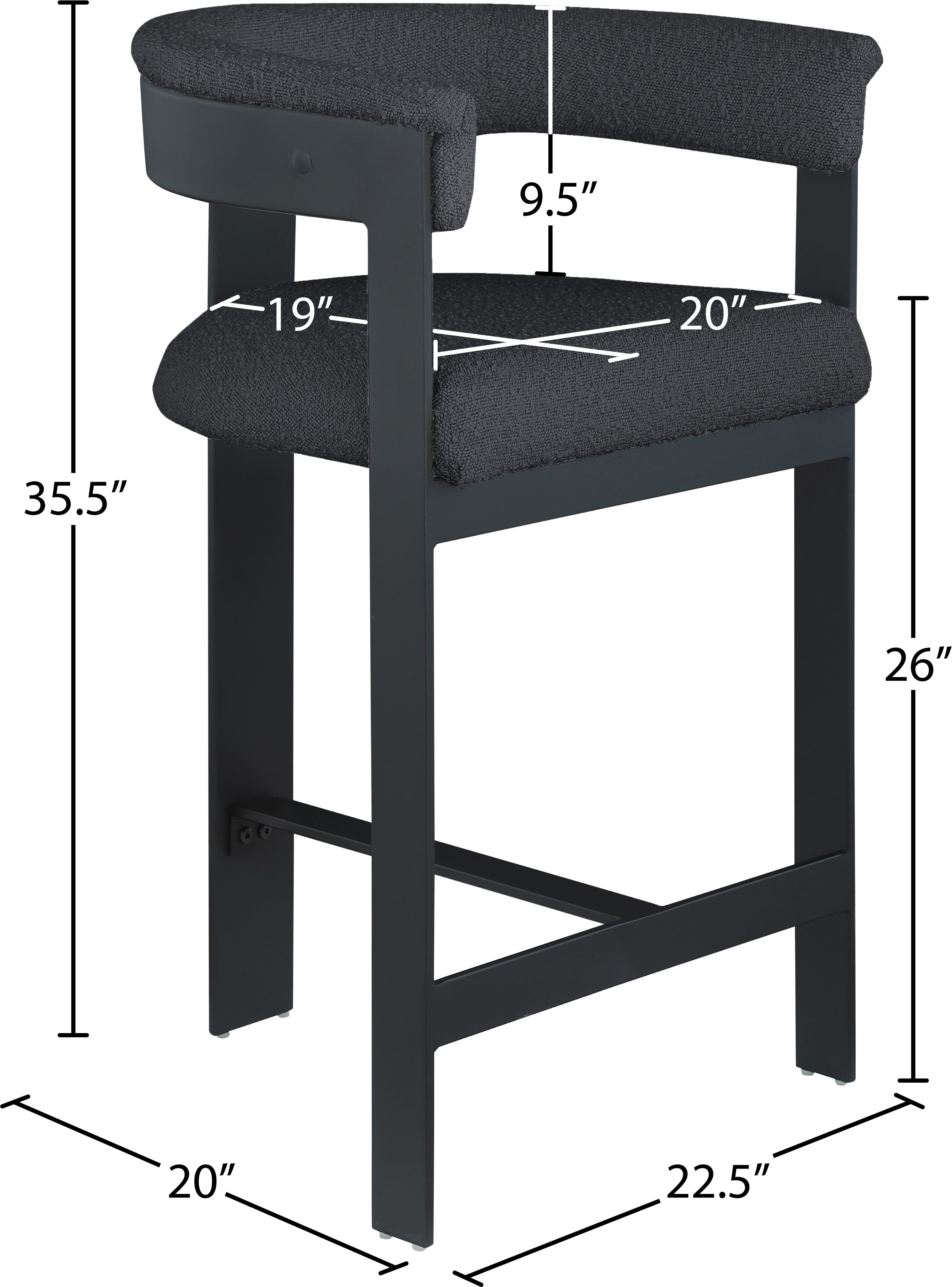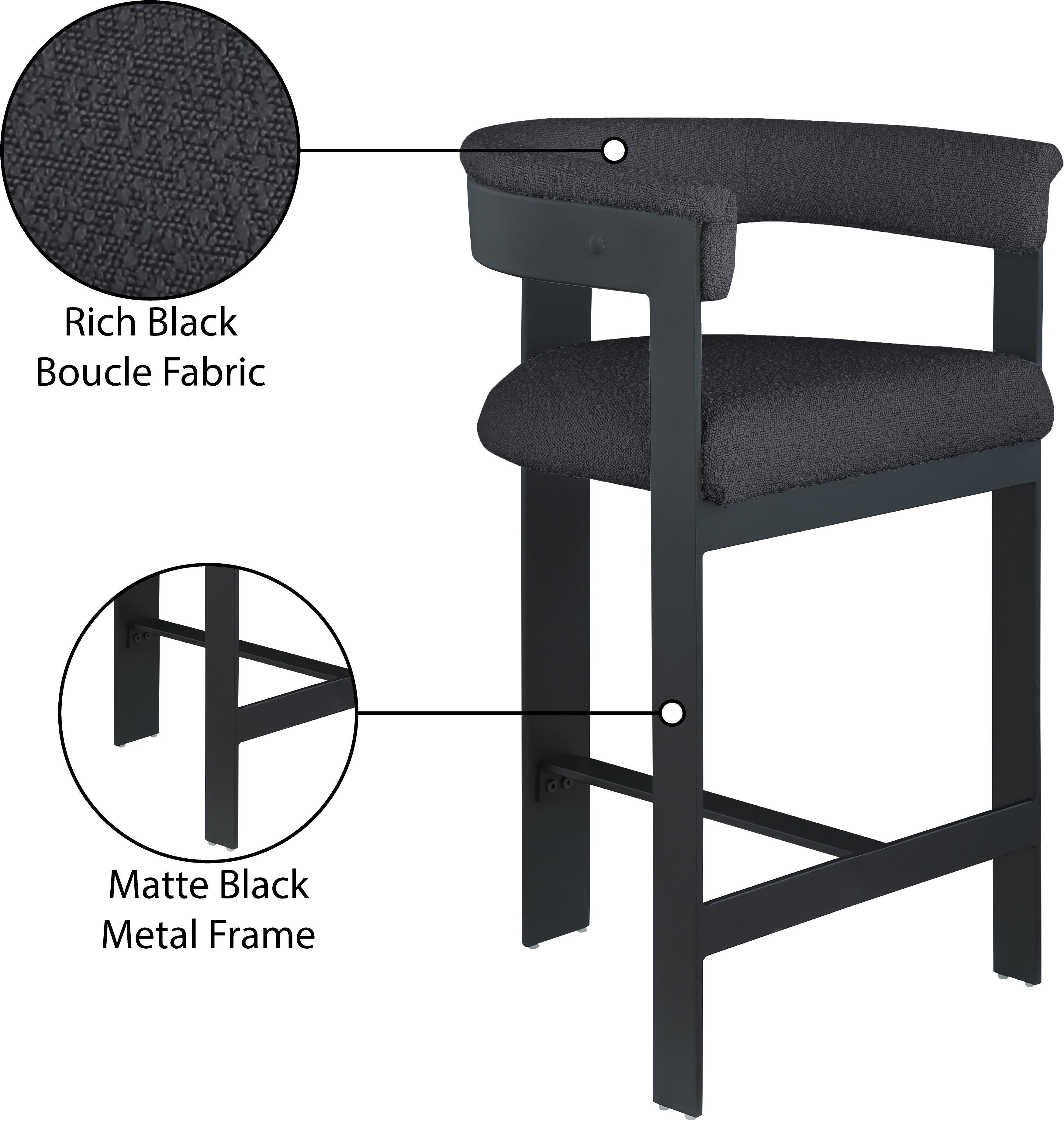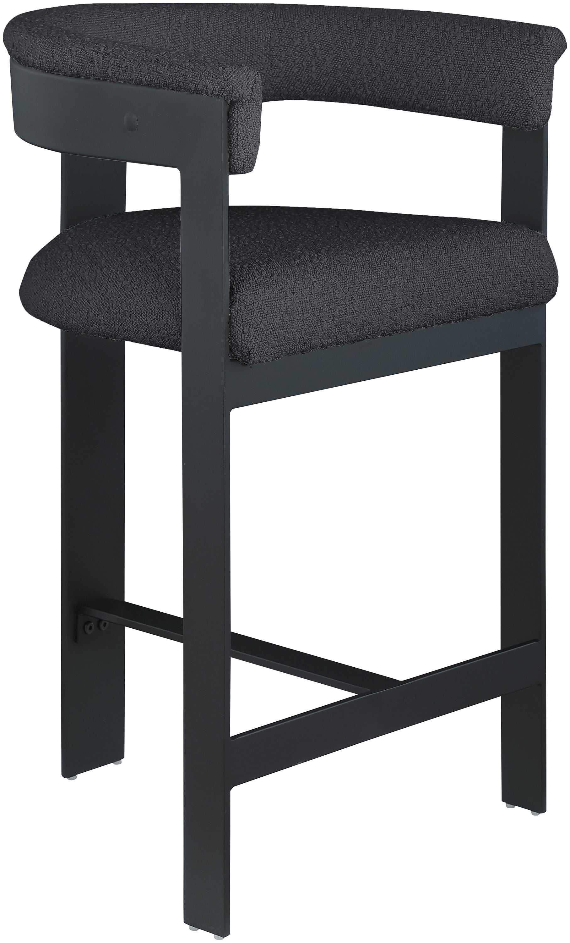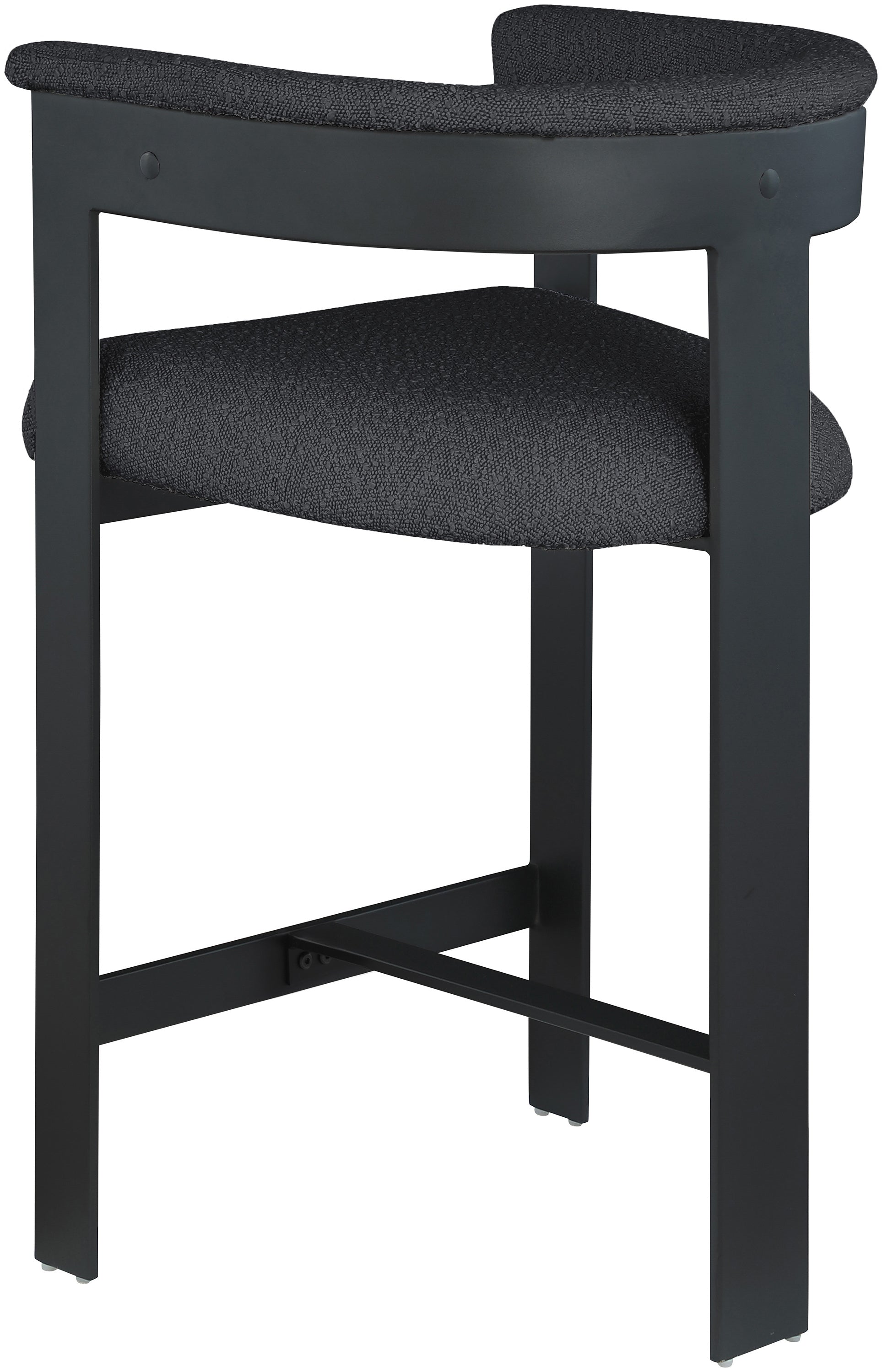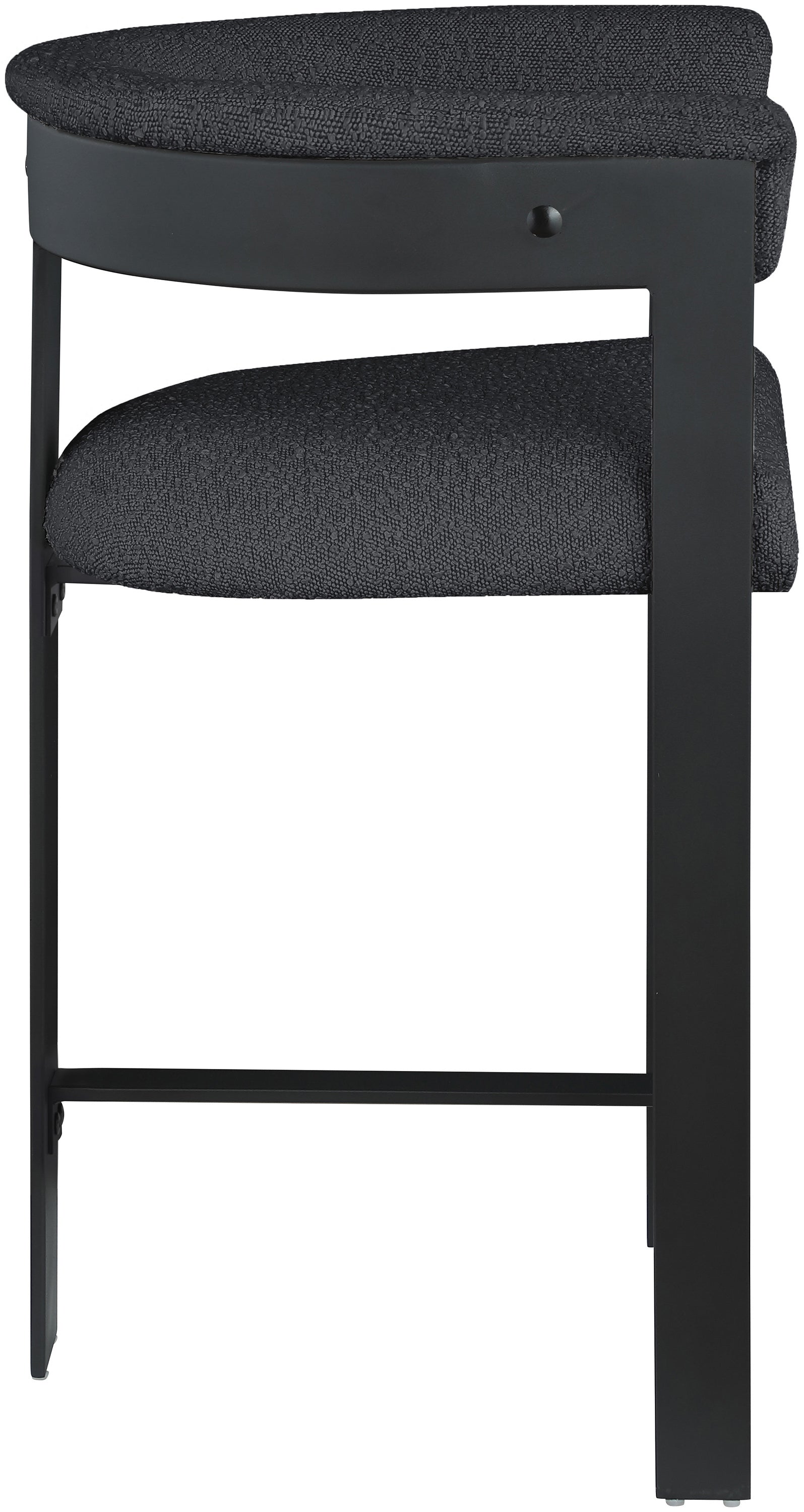 Update your kitchen counter or home bar with this black Romeo boucle stool. It boasts a soft black boucle seat and a curved back for comfortable and contemporary seating. The matte black metal frame ensures sturdiness and a sleek aesthetic, impressing family and guests alike. With its modern design, this stool effortlessly complements your space, making it a superb addition to your space.