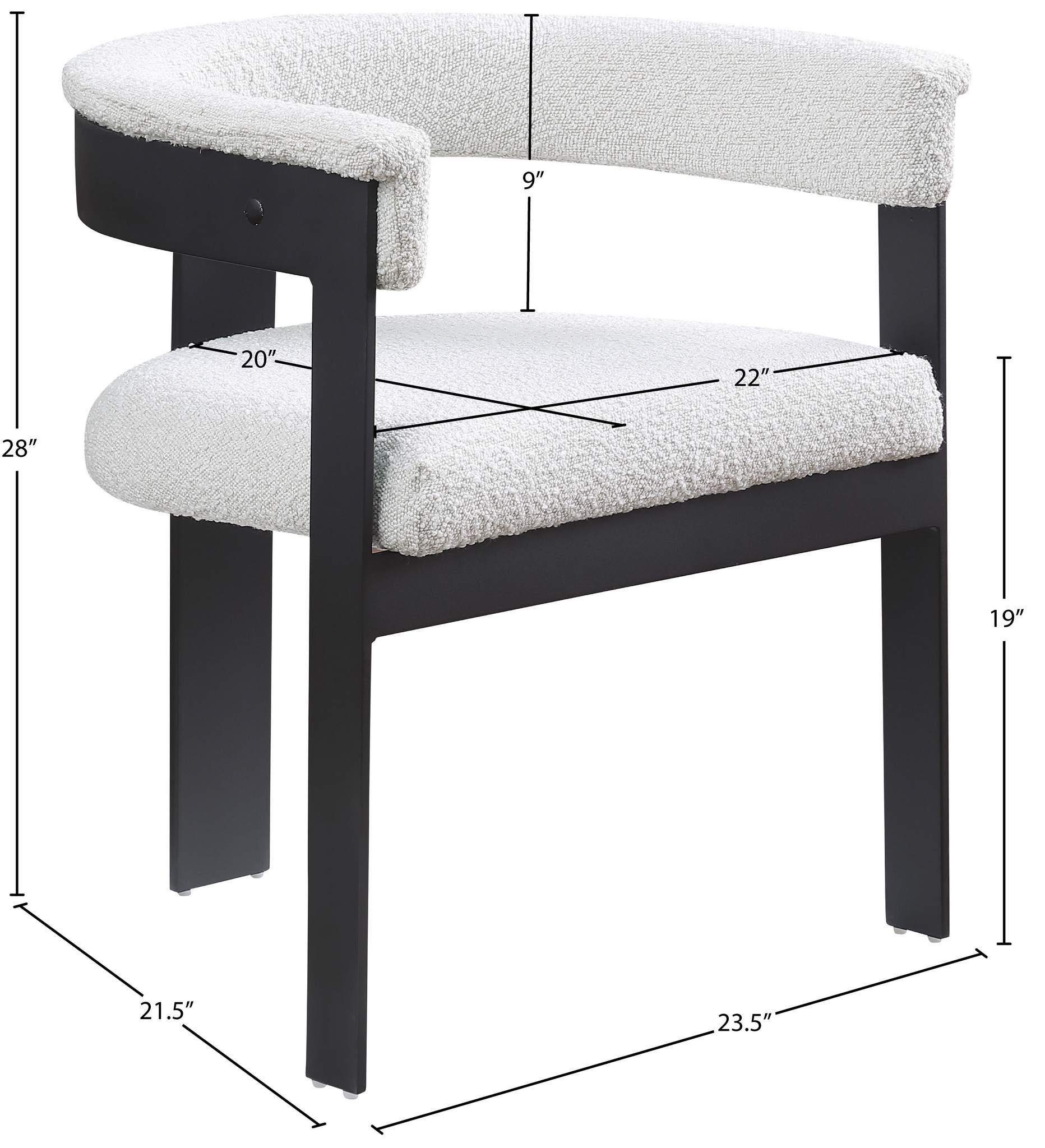 Material: Boucle Fabric / Iron / Engineered Wood / Foam