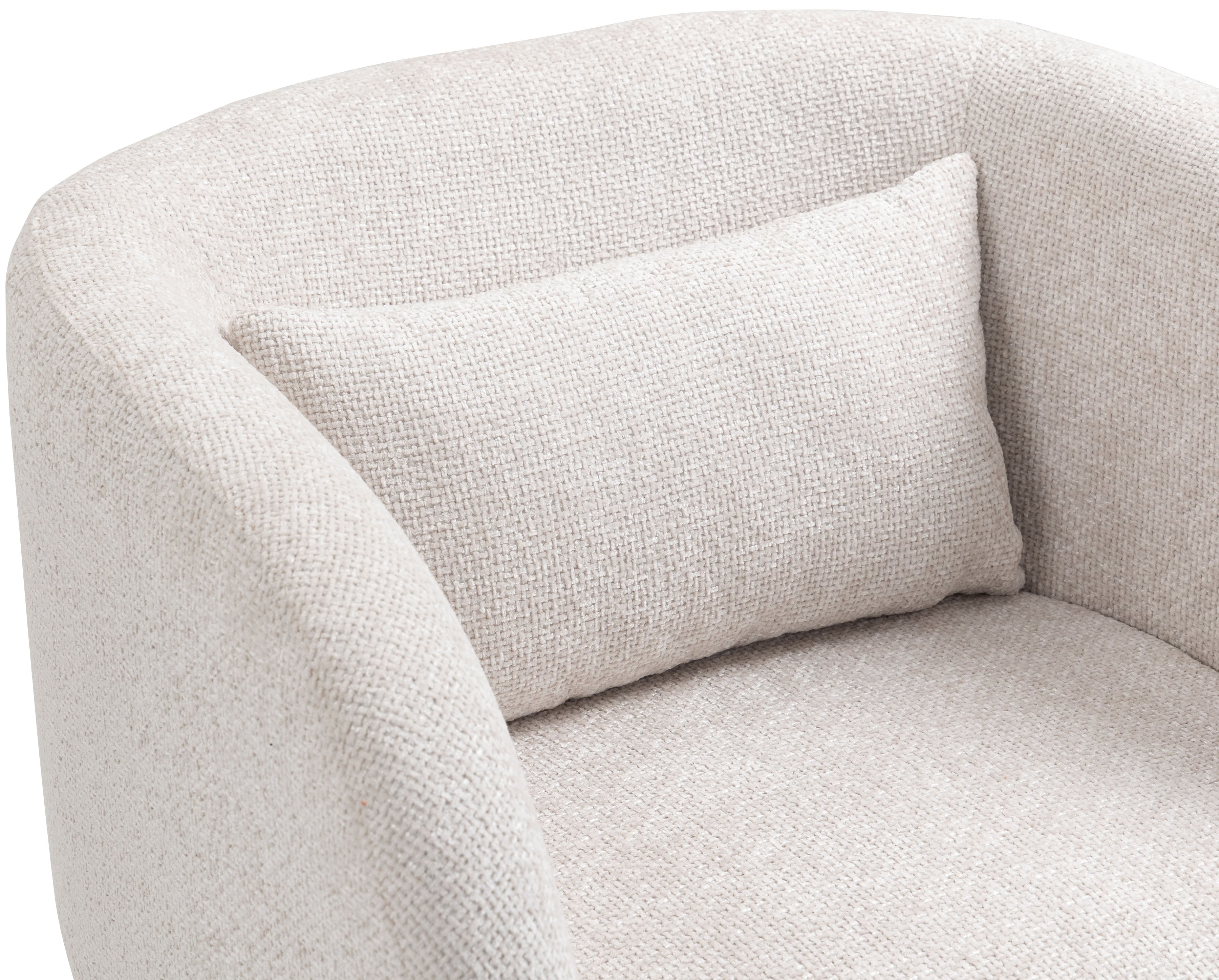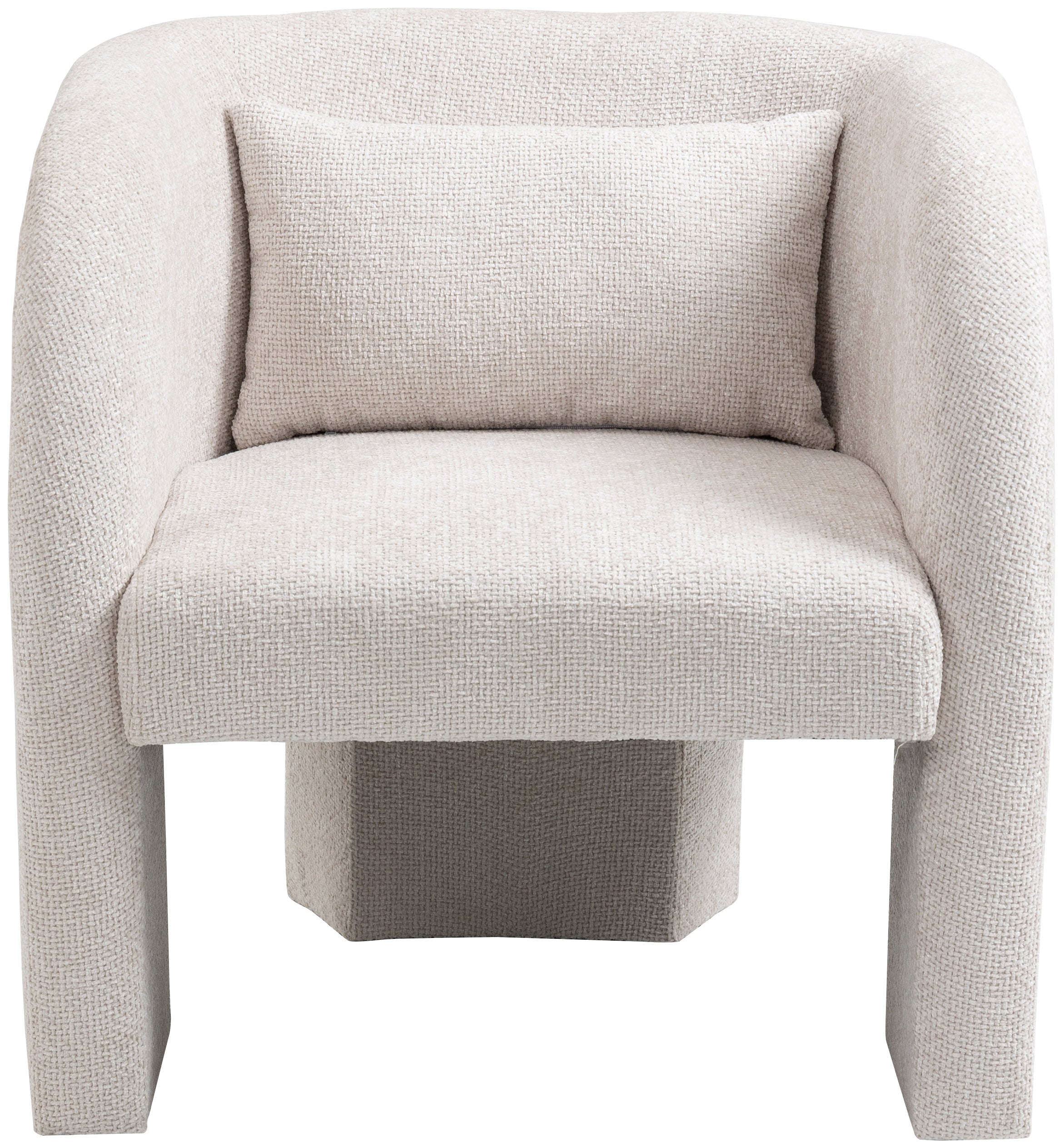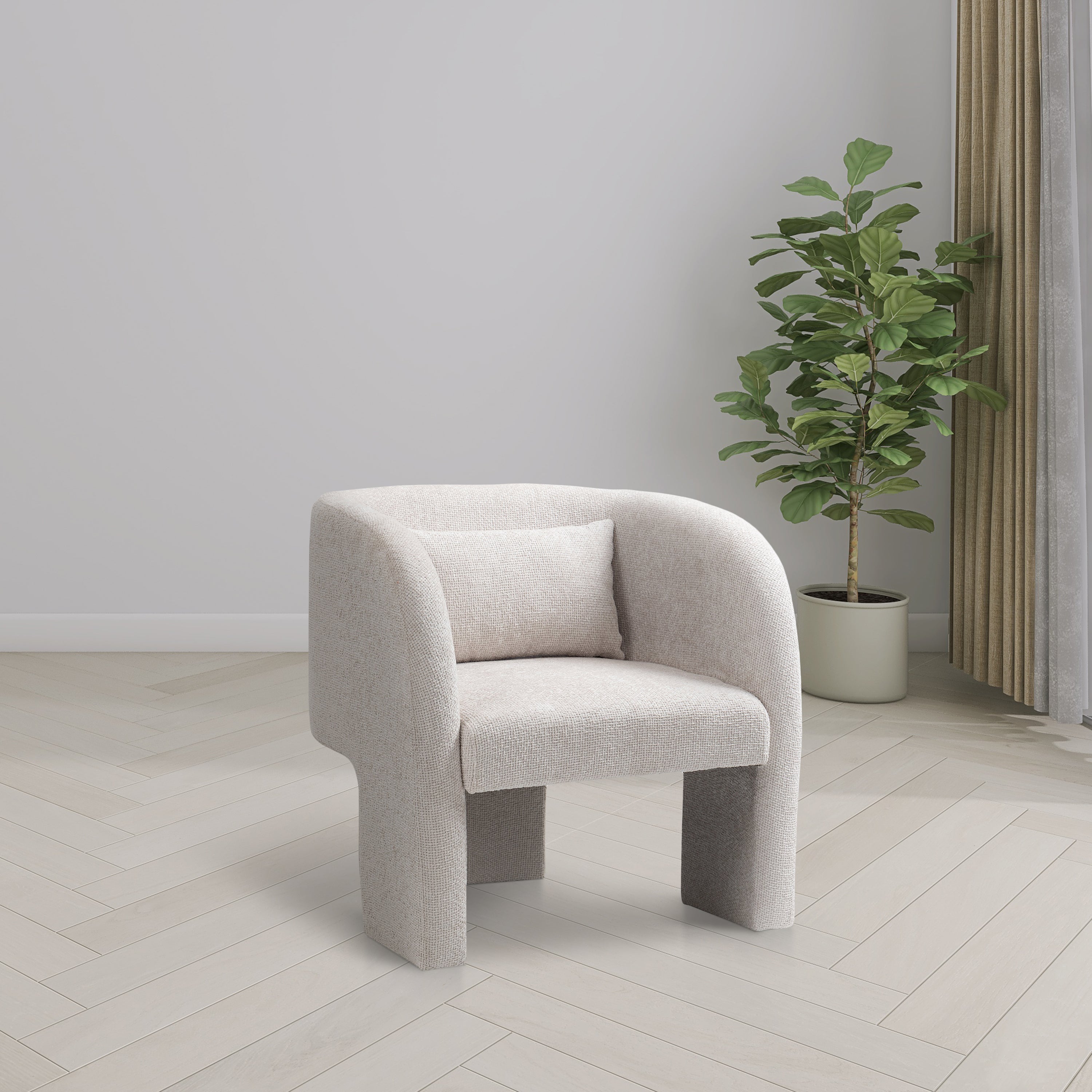 Showcase your upscale taste with this handsome Sawyer chenille fabric accent chair. Upholstered from top to bottom in super-soft cream chenille cross-hatched fabric, this beautiful chair has a distinctively modern design that ensures it grabs attention, no matter the angle. A futuristic shape draws all eyes to the chair while the included pillow comforts the back and makes it extra comfortable. A birchwood frame provides sturdiness and resilience, ensuring this chair finds a spot in your home for long-term use.
