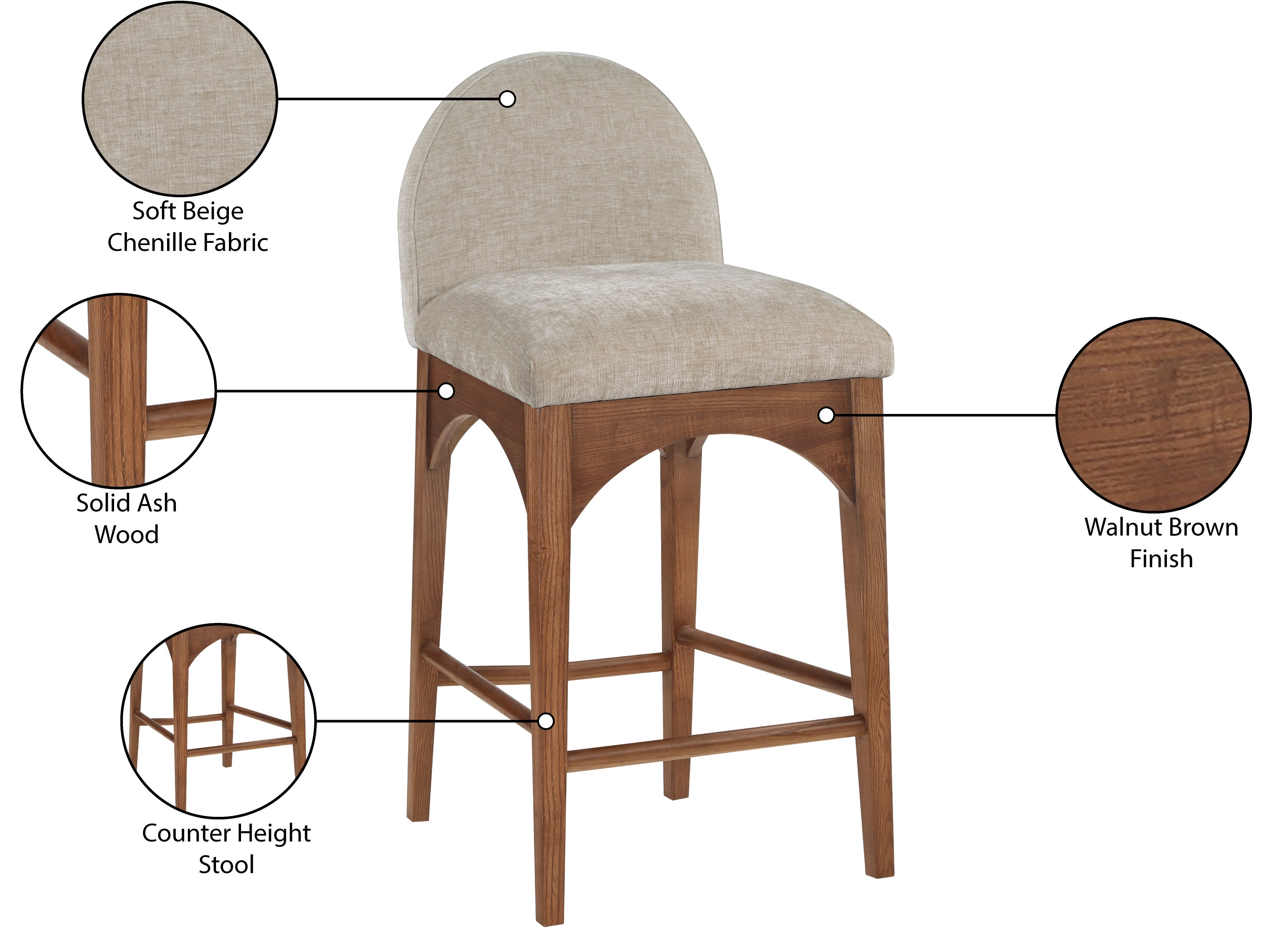 Waldorf Beige Chenille Fabric Upholstered Counter Stool | Meridian Furniture - 393Beige-C