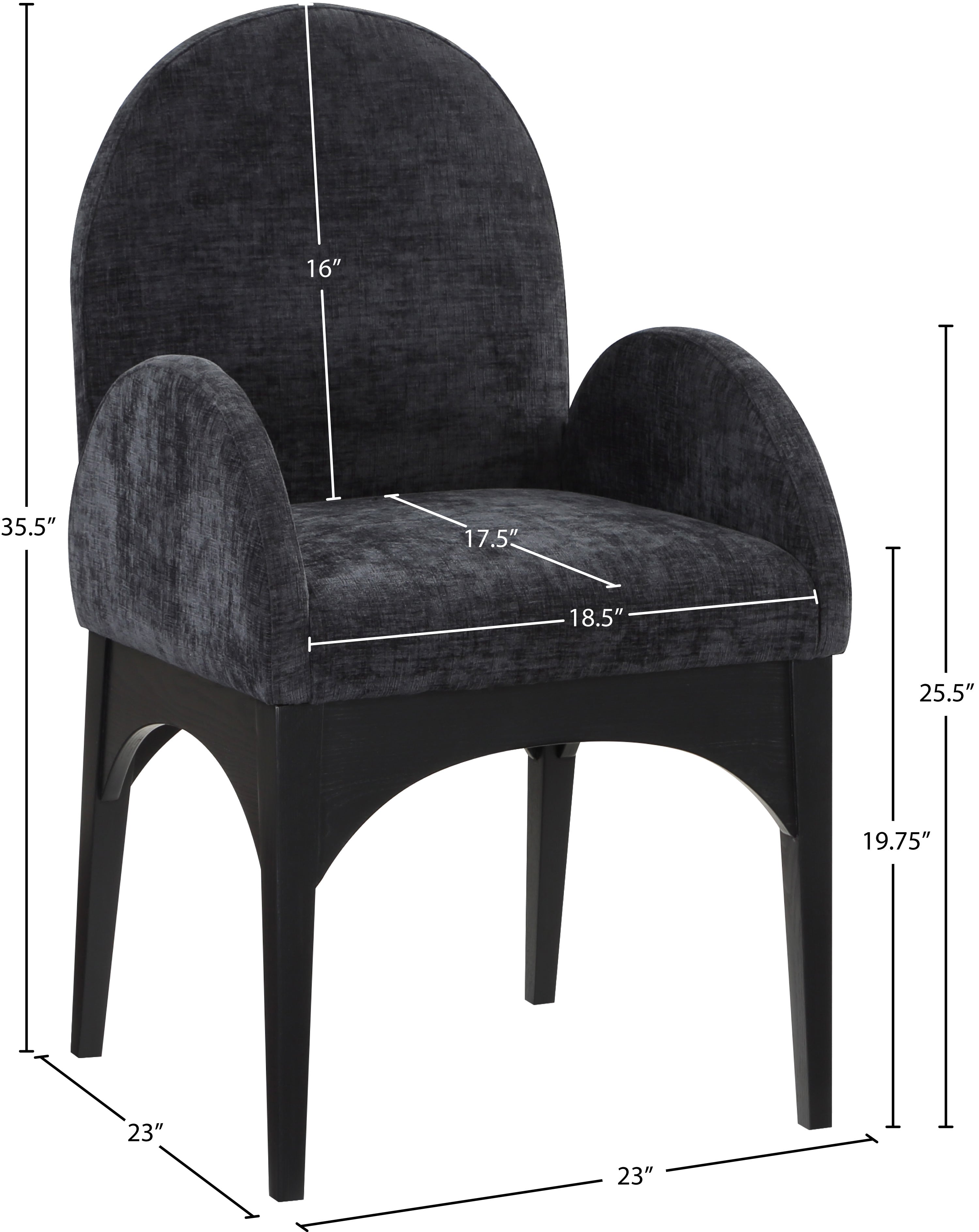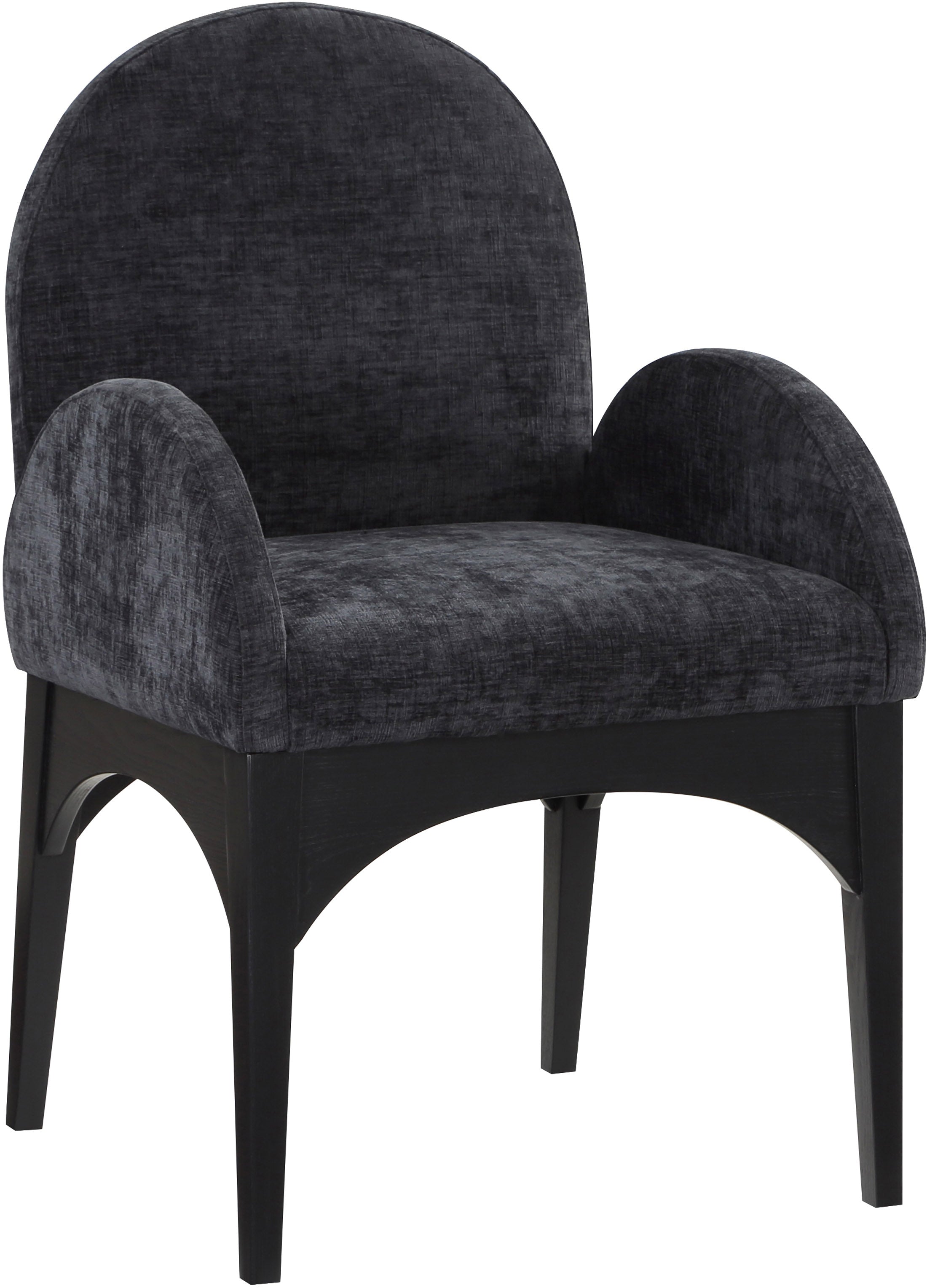 Waldorf Black Chenille Fabric Upholstered Dining Arm Chair | Meridian Furniture - 378Black-AC