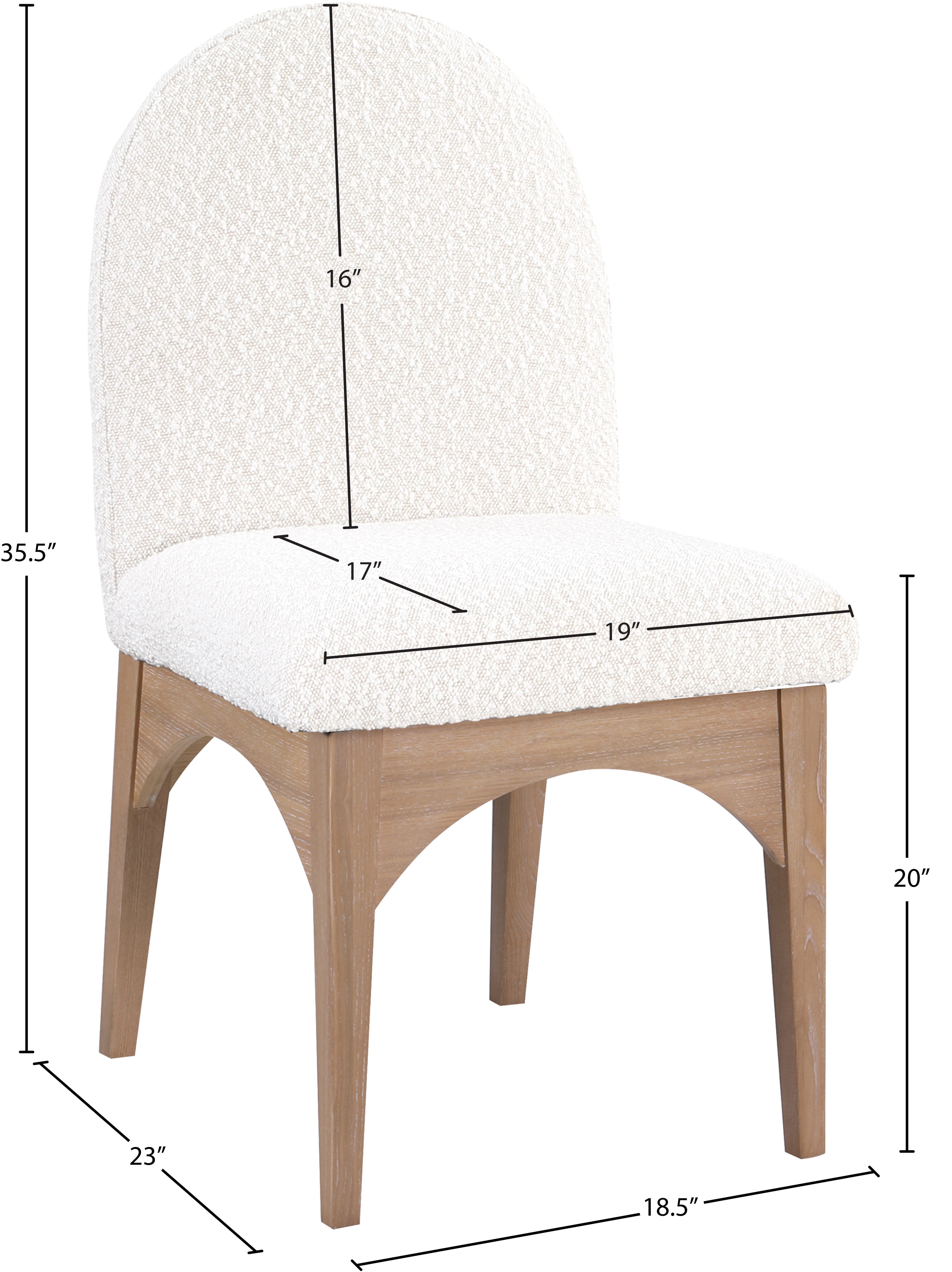 The Waldorf Boucle Fabric Dining Side Chair exudes elegance and comfort. Crafted with solid ash wood, this dining chair boasts a sturdy and durable construction. The natural finished legs provide a warm and welcoming touch to the overall design. The plush cream boucle fabric on the seat and backrest of the chair offers a soft and cozy seating experience, making it an ideal choice for long dinner conversations with family and friends.