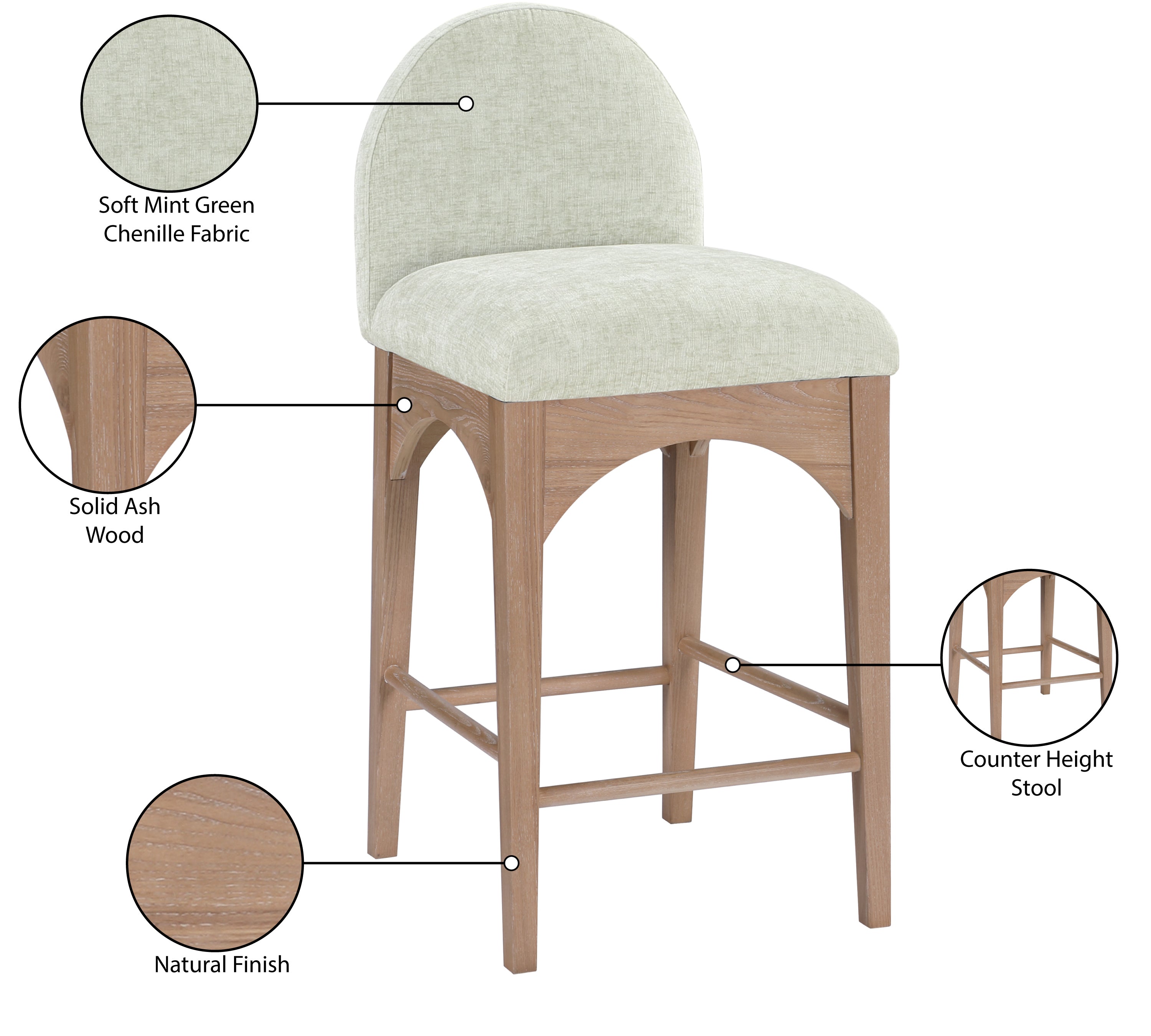 Waldorf Mint Chenille Fabric Upholstered Counter Stool | Meridian Furniture - 390Mint-C
