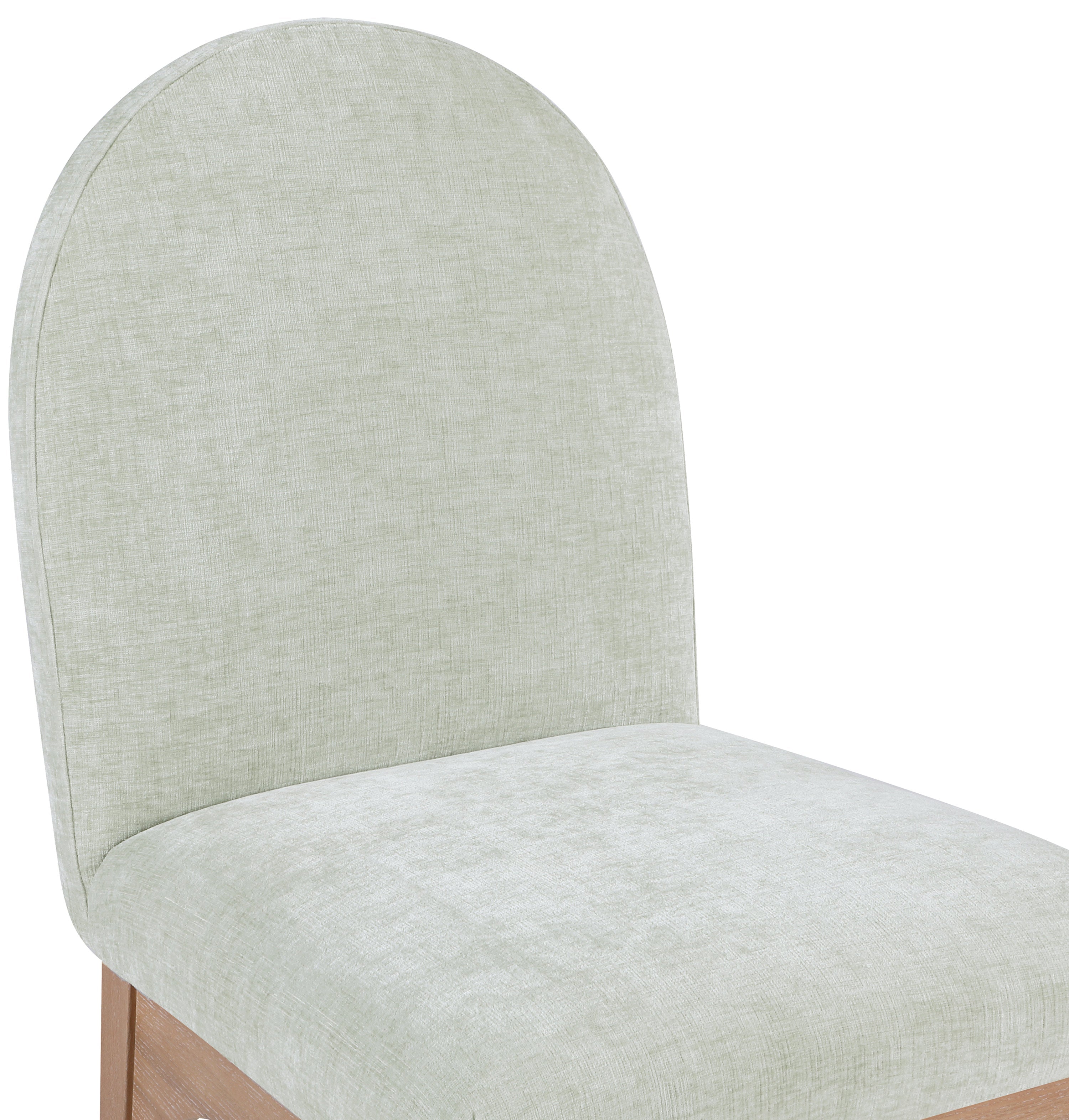 The Waldorf Chenille Fabric Dining Side Chair exudes elegance and comfort. Crafted with solid ash wood, this dining chair boasts a sturdy and durable construction. The natural finished legs provide a warm and welcoming touch to the overall design. The plush mint chenille fabric on the seat and backrest of the chair offers a soft and cozy seating experience, making it an ideal choice for long dinner conversations with family and friends.