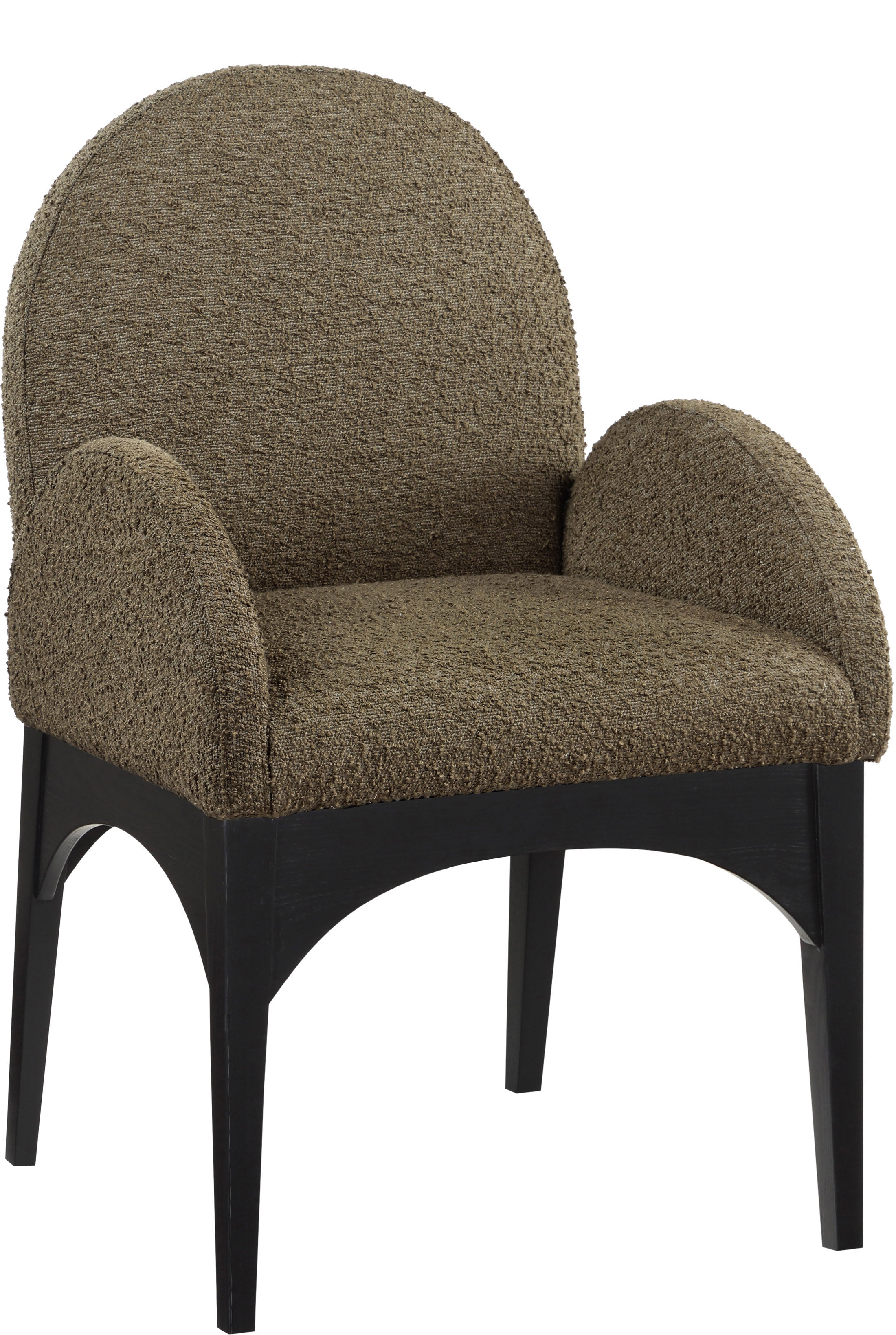 Waldorf Olive Boucle Fabric Upholstered Dining Arm Chair | Meridian Furniture - 381Olive-AC