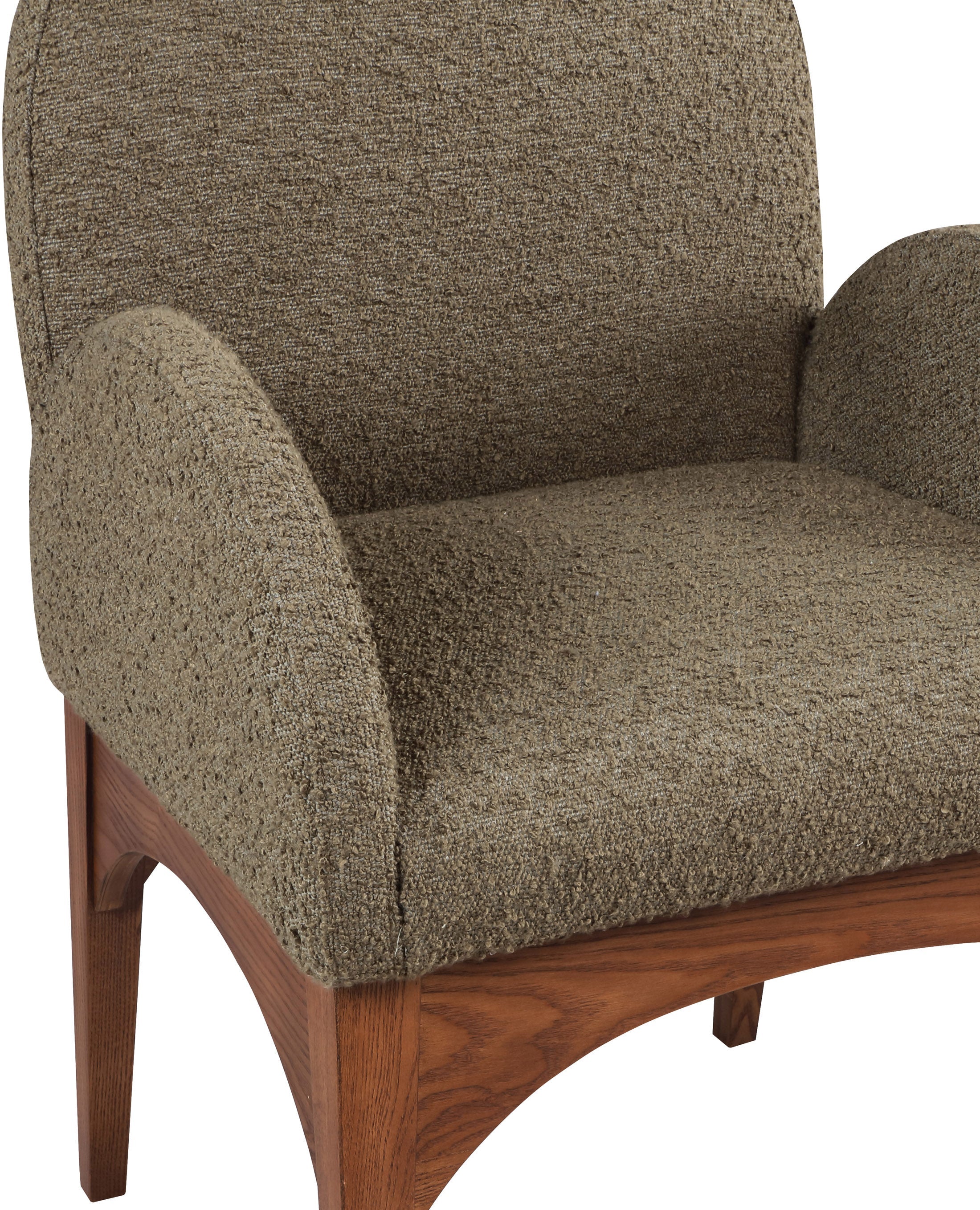 Waldorf Olive Boucle Fabric Upholstered Dining Arm Chair | Meridian Furniture - 382Olive-AC