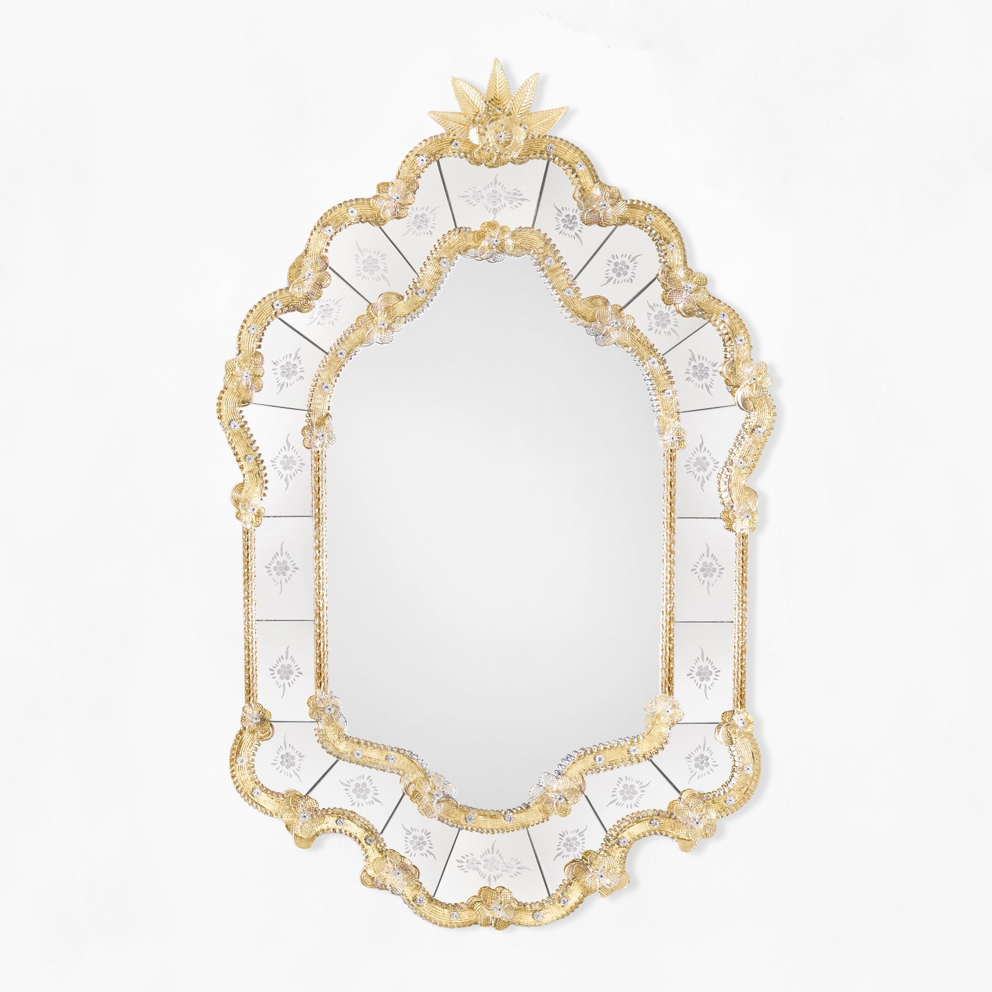 Murano glass mirror with gold rosettes
