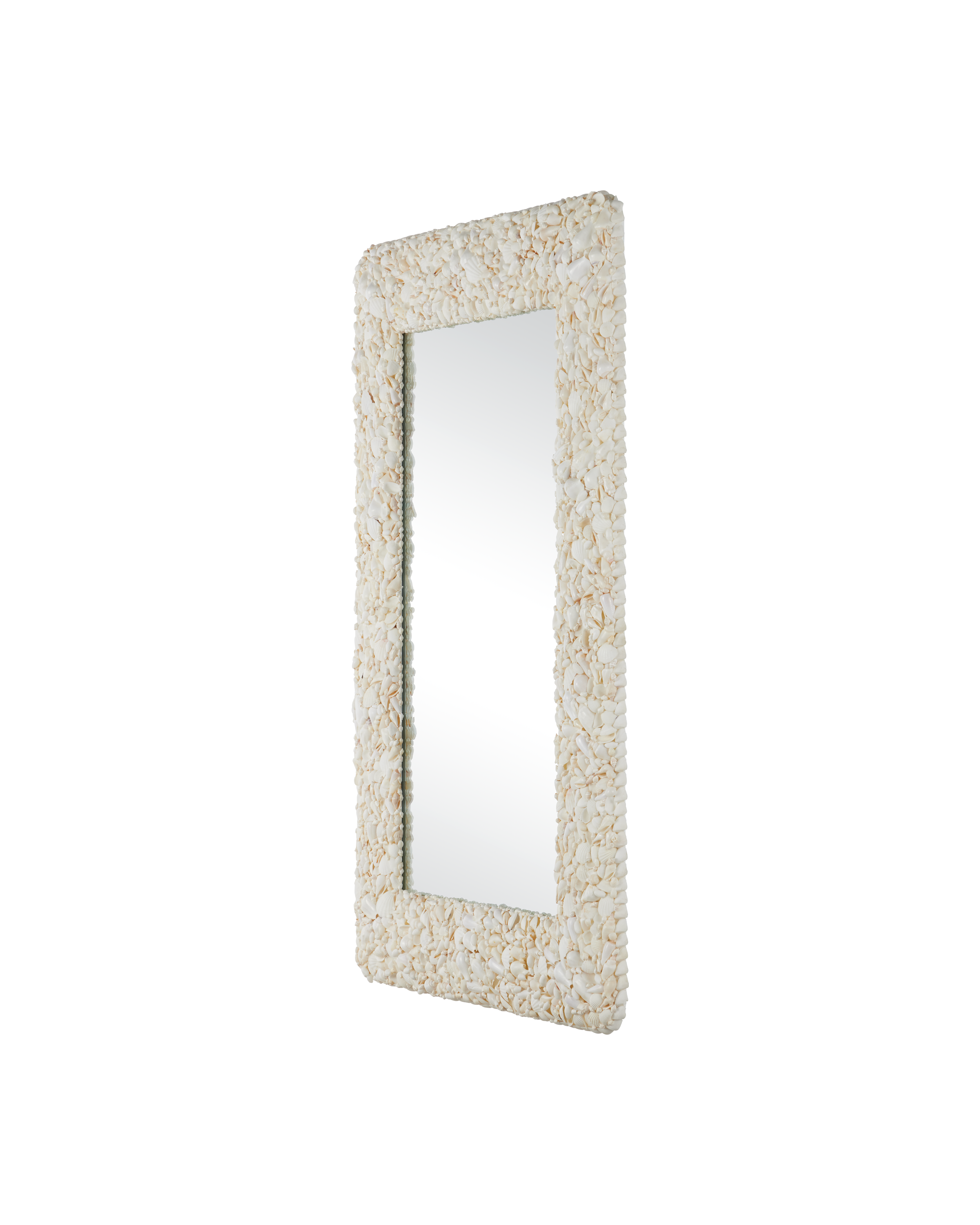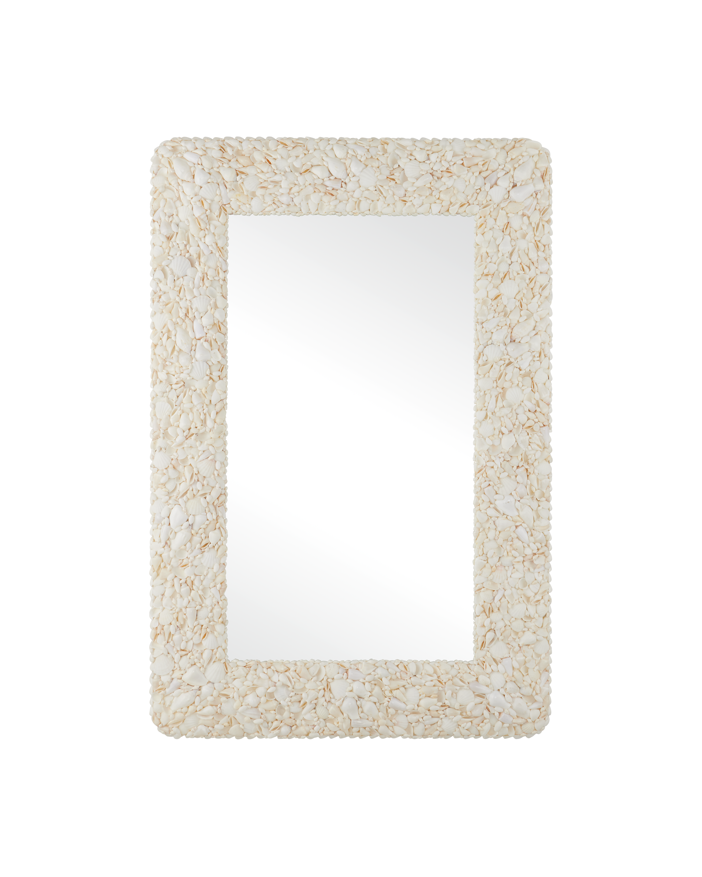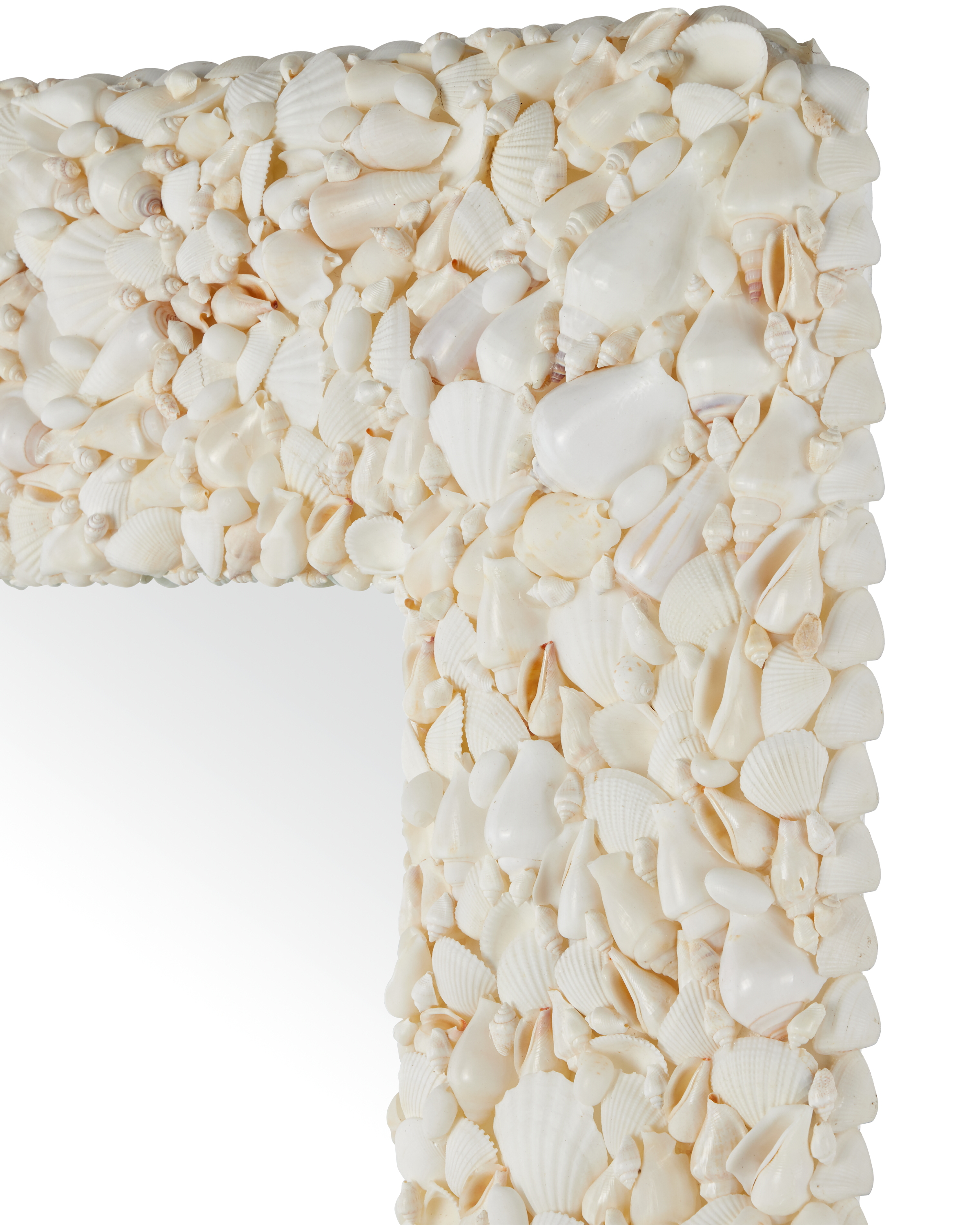 Add a hint of coastal sophistication to a room with the Turbinella Rectangular Mirror. Measuring 48 inches by 32 inches, the eye-catching piece features a frame crafted from white seashells in a variety of sizes and shapes, each one applied by hand to create a rich, tone-on-tone texture. The natural variation in the shells gives the mirror a dynamic, sculptural look that brings subtle movement and depth to any wall. The Turbinella comes with cleats that allow it to be hung vertically or horizontally.