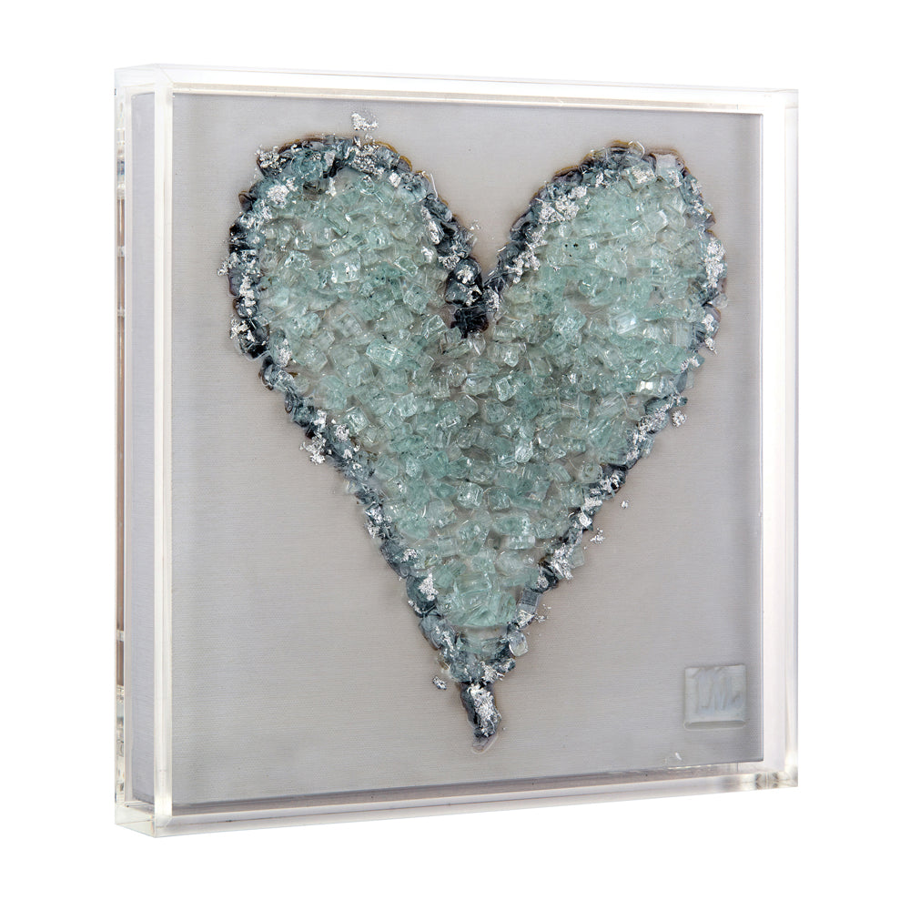 Show your love with this beautiful piece by glass artist Mary Hong. Emphasized by a high-gloss vitreous finish and silver leaf, the artwork is surrounded by an acrylic frame.