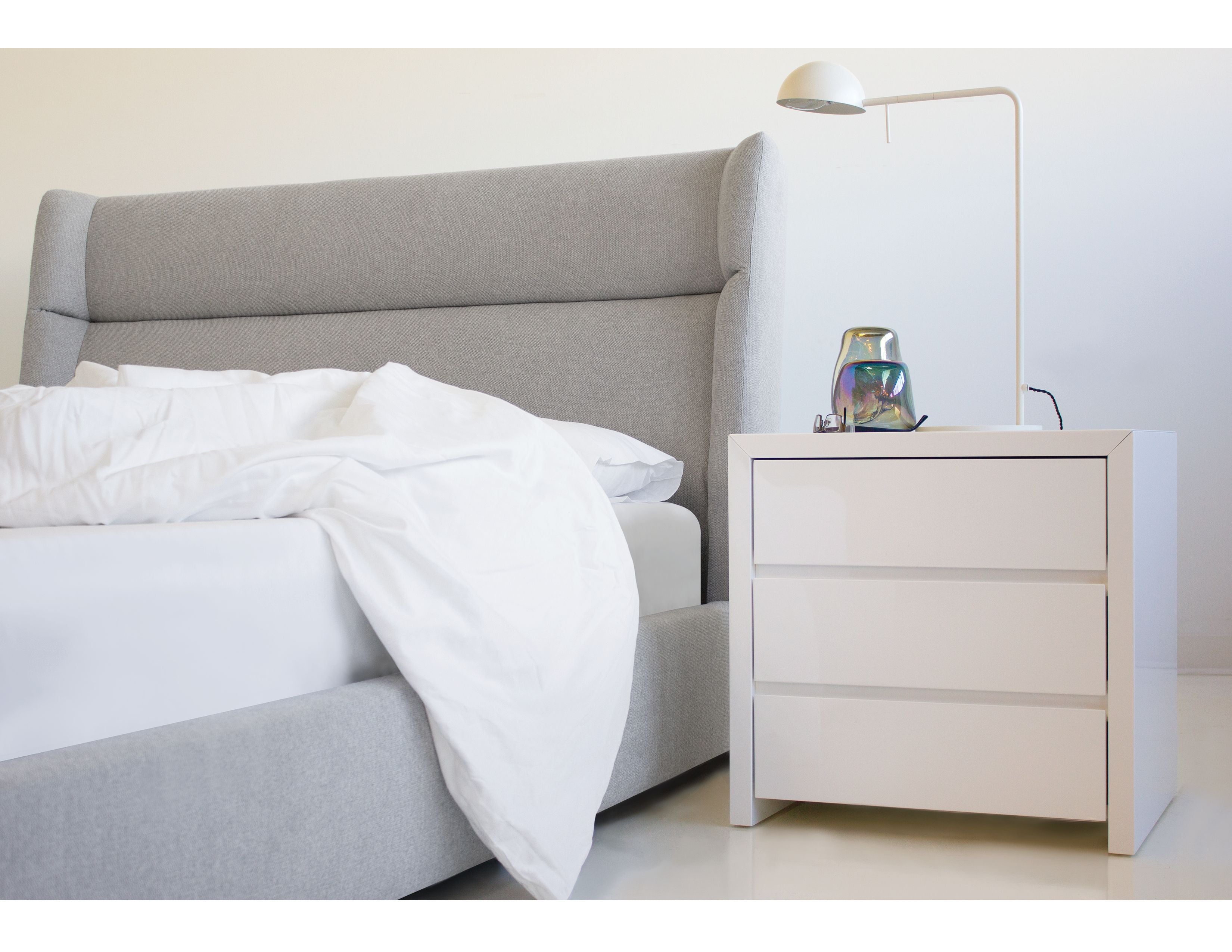 The COVE storage bed is an understated elegant design that will work with all kinds of rooms and night stands. Upholstered in a removeable Velcro cover, this fashion-forward heather grey fabric choice will also combine with any combination of bed linens.