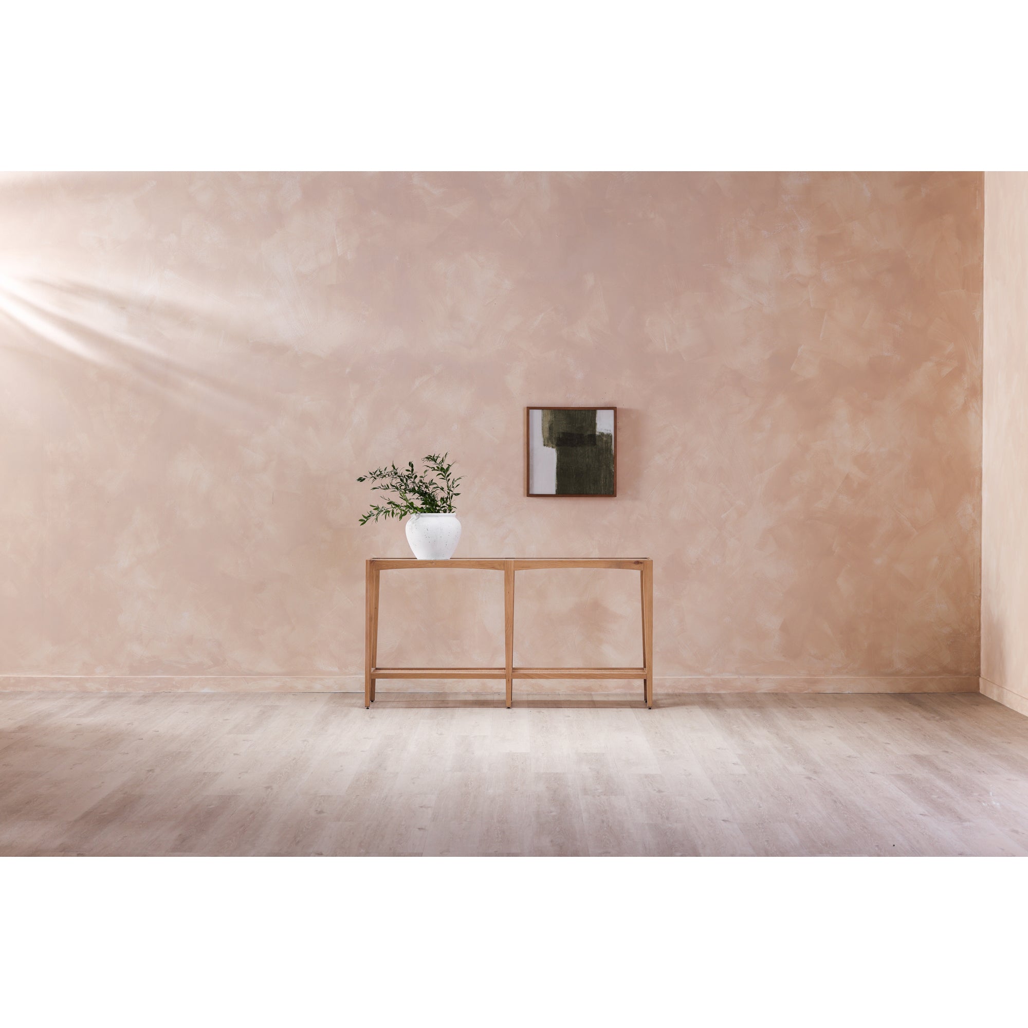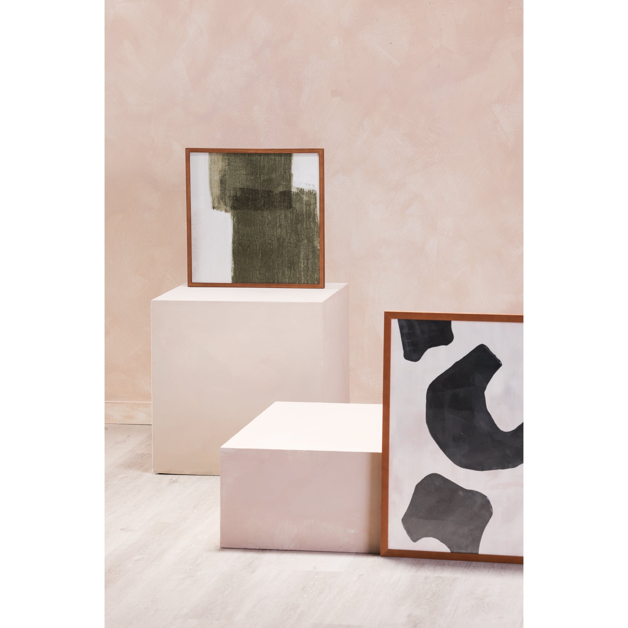 Brush is a bold and painterly piece where a grounding earthy green subdues sizeable brush strokes, and a warm-tone pine wood frame adds heirloom appeal.