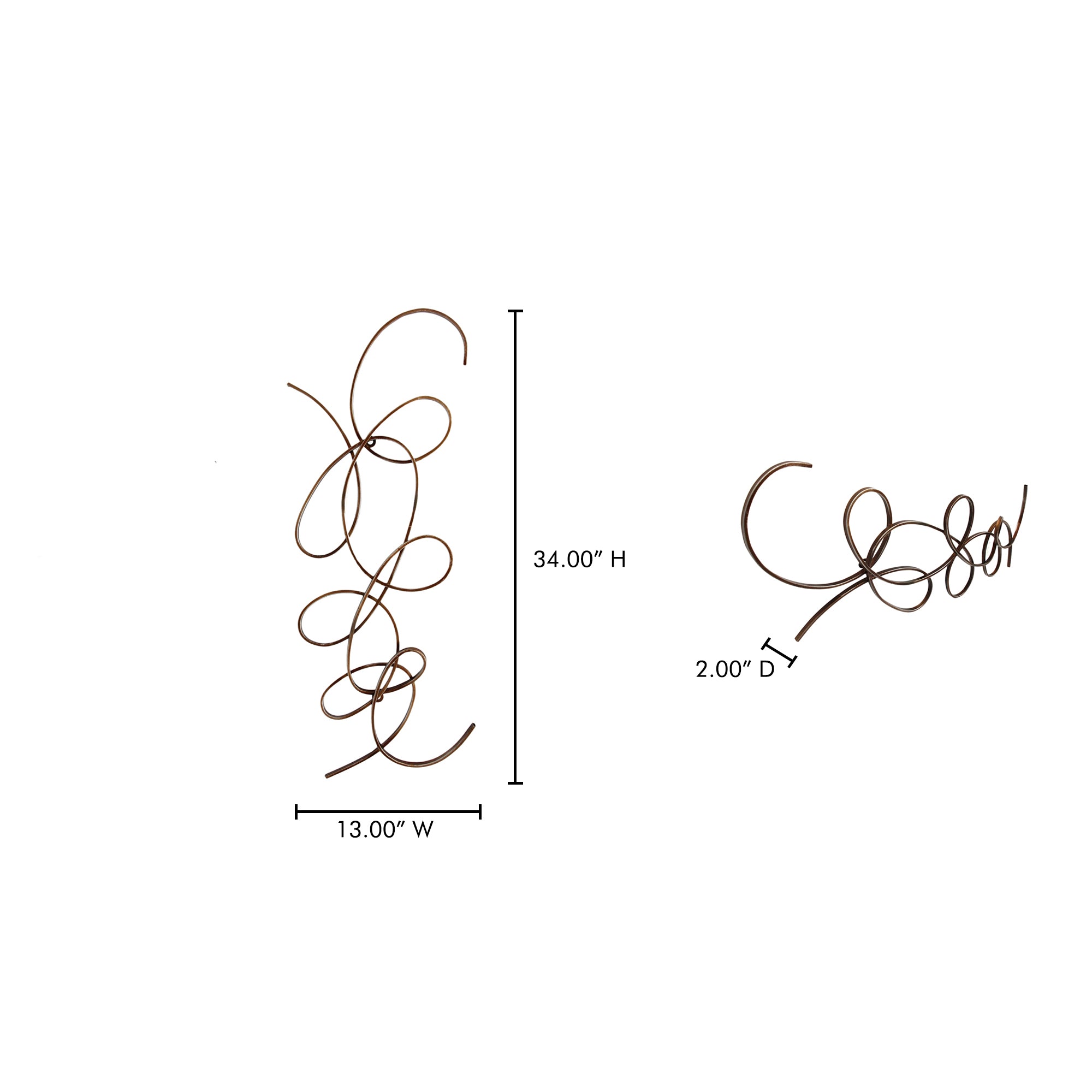 Scrolling and smooth, this metal wall art adds interest without cluttering up your walls. Easy to hang in either direction to accommodate your design needs. Comfort and style for your home.