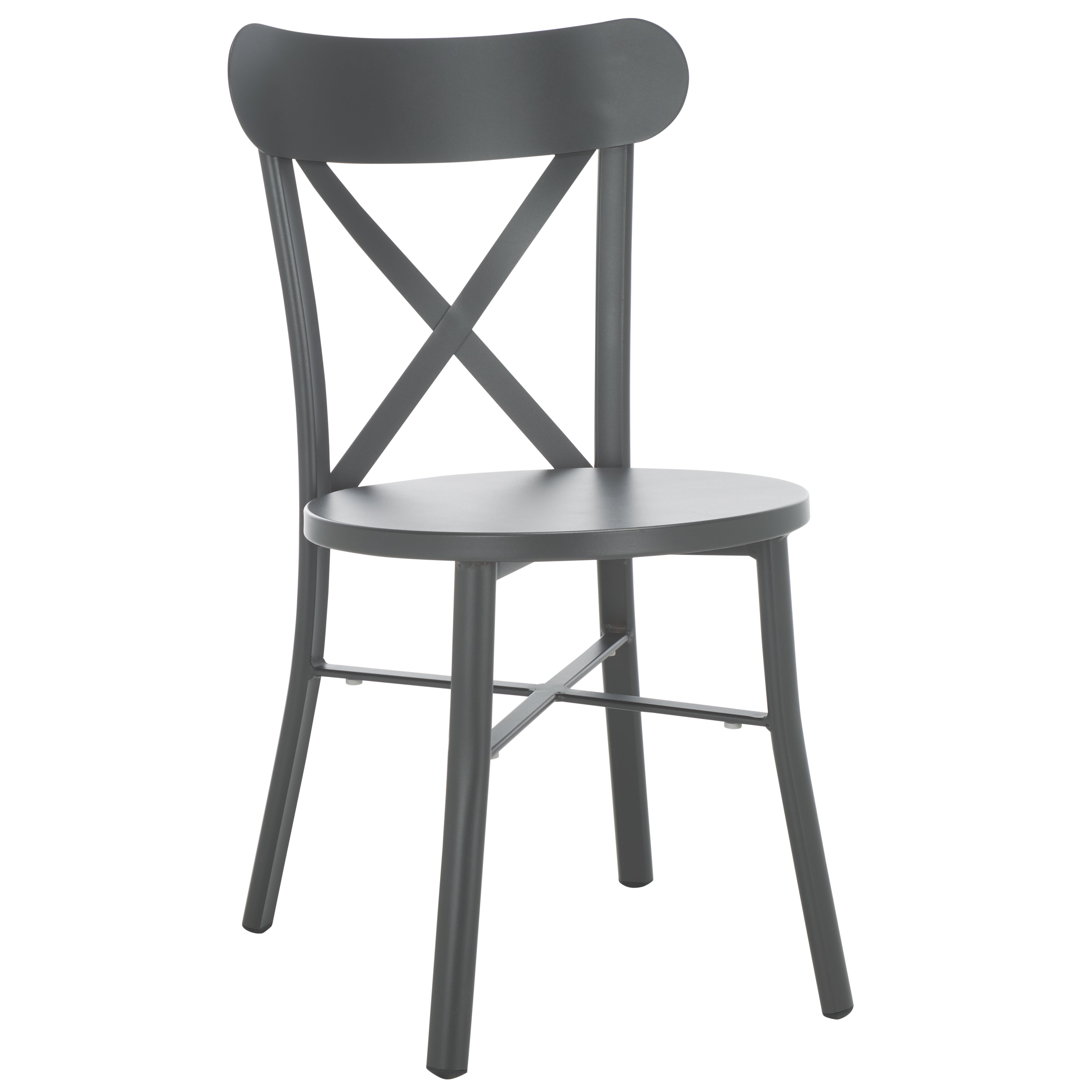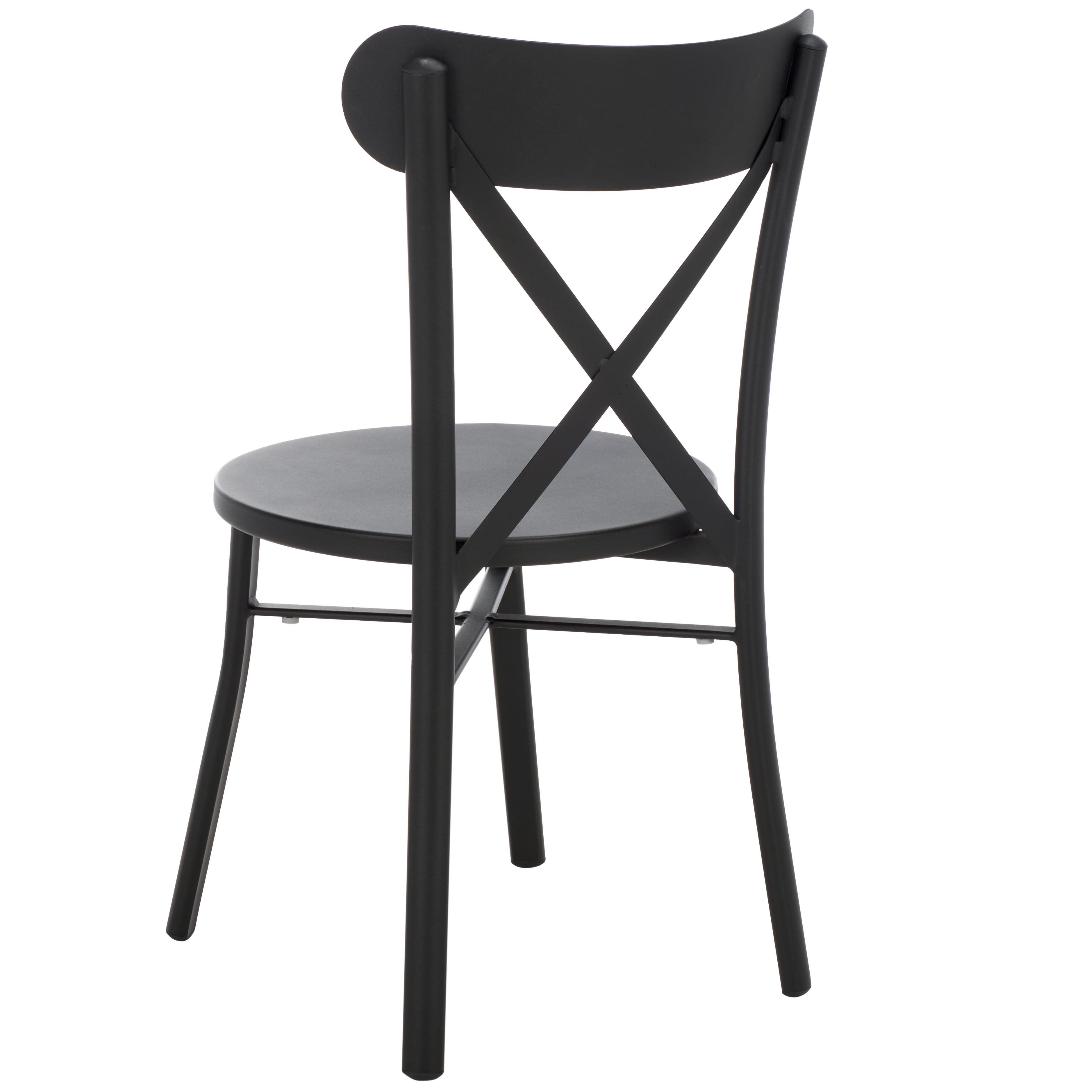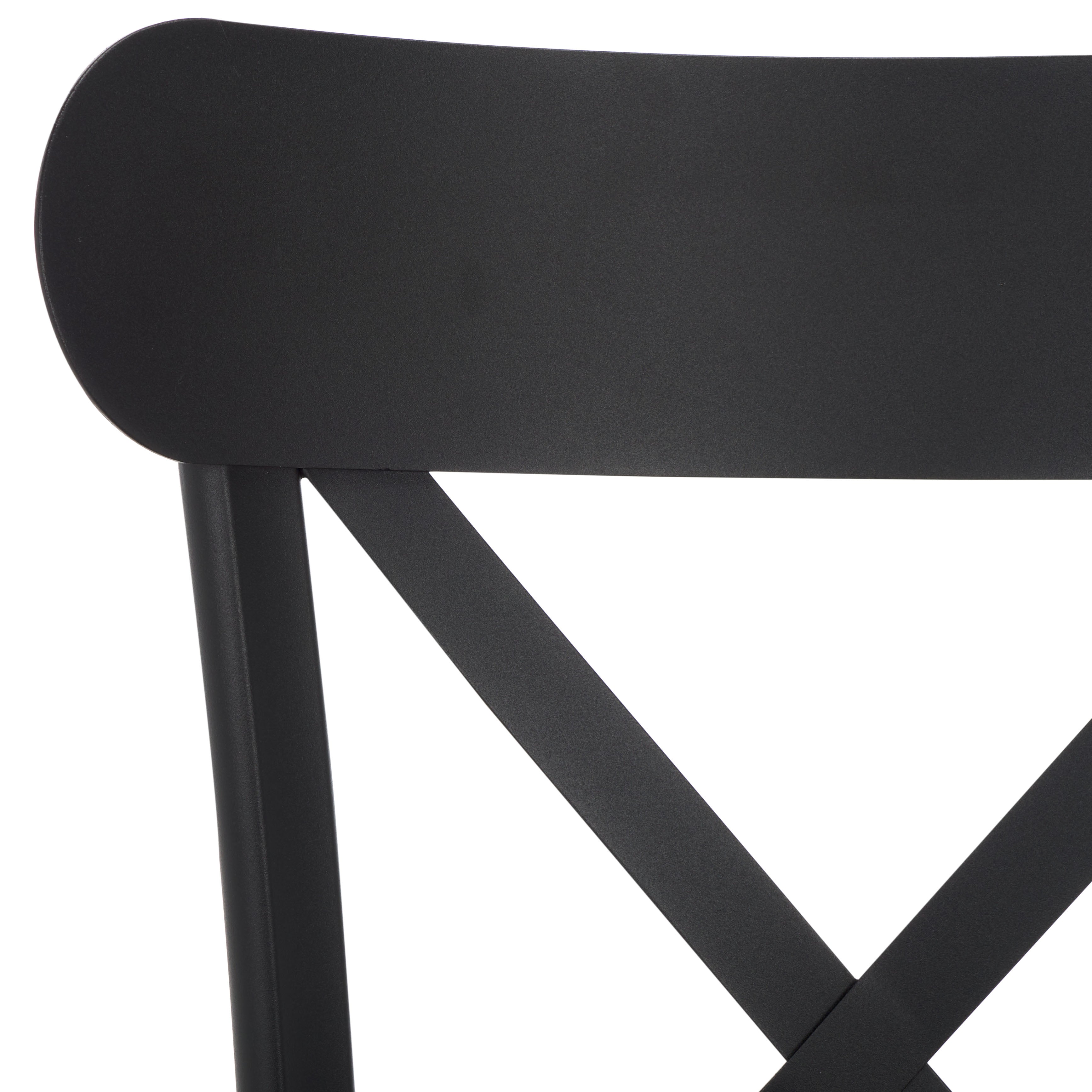 Introducing the Core Cross Back Chair Set, a duo designed to blend style and practicality for your outdoor spaces. These chairs come in a sleek black finish that exudes sophistication, capable of complementing any patio or garden setting. Crafted from durable aluminum, they offer a lightweight yet sturdy structure for daily use.