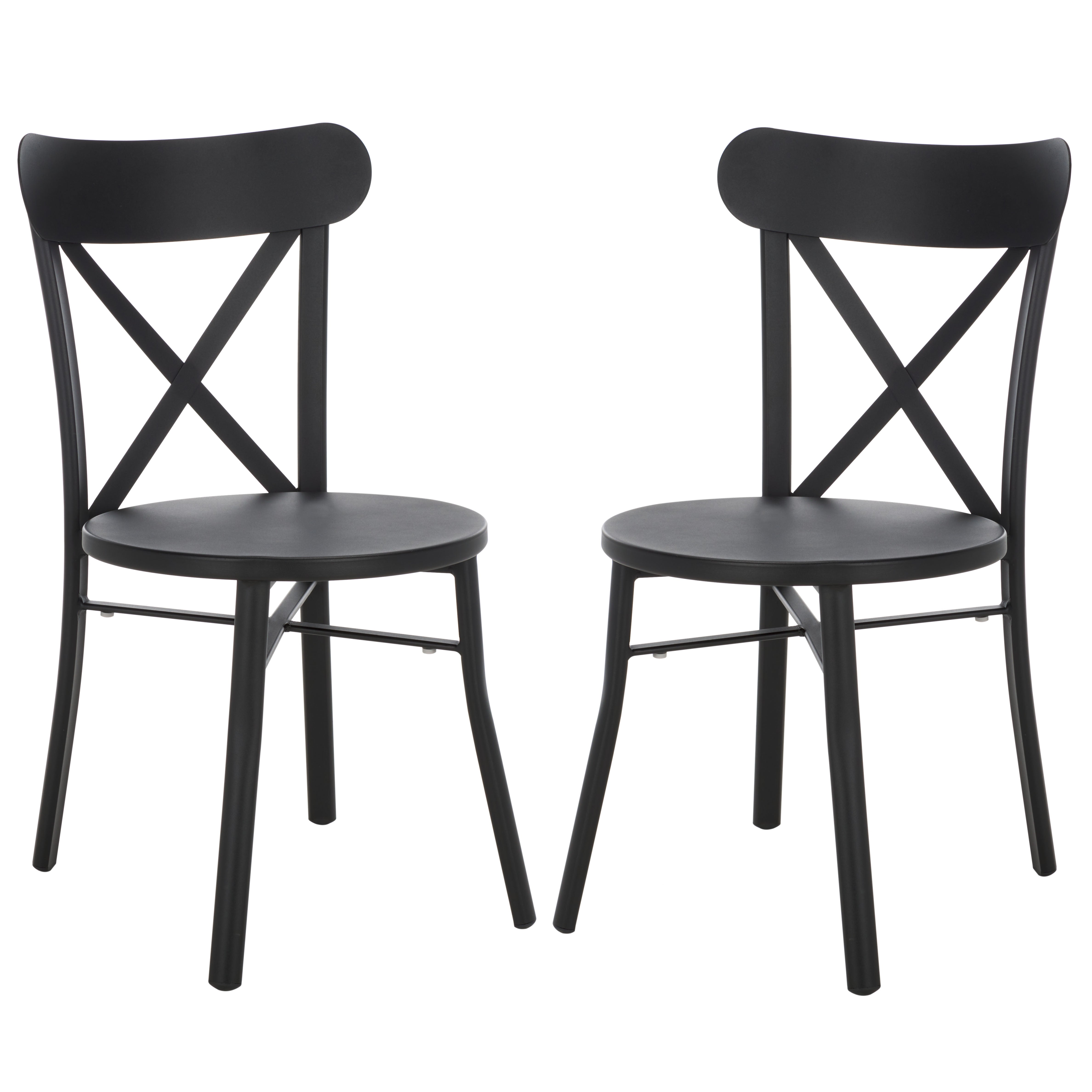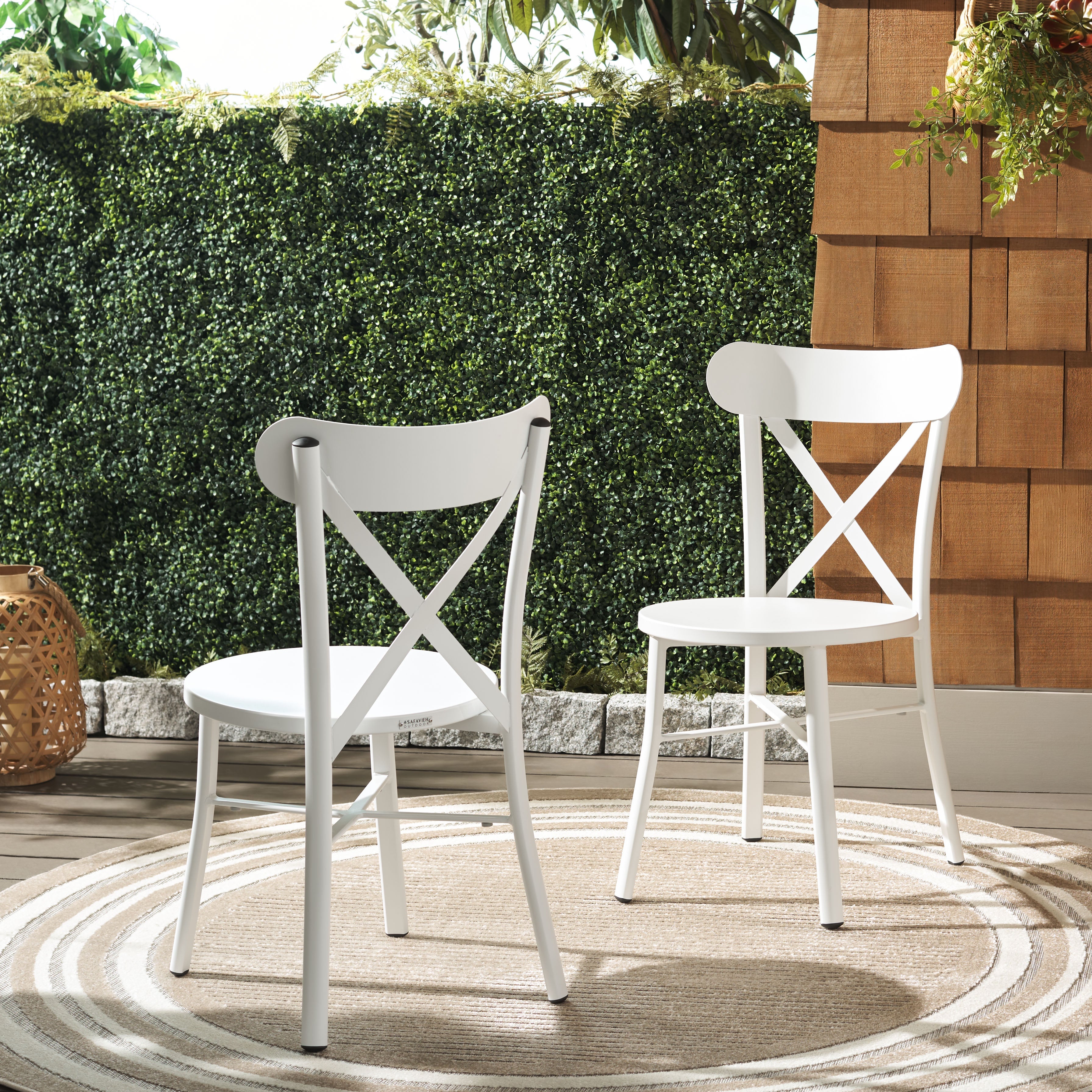 Their distinctive cross-back design is not only visually appealing, but it also provides ample back support for comfort during extended periods of seating. Whether you're enjoying a quiet morning coffee or dining al fresco with friends, these chairs are a valuable addition to your outdoor furniture collection. The set of two allows for easy coordination and creates a symmetrical aesthetic that can instantly elevate any exterior decor.
