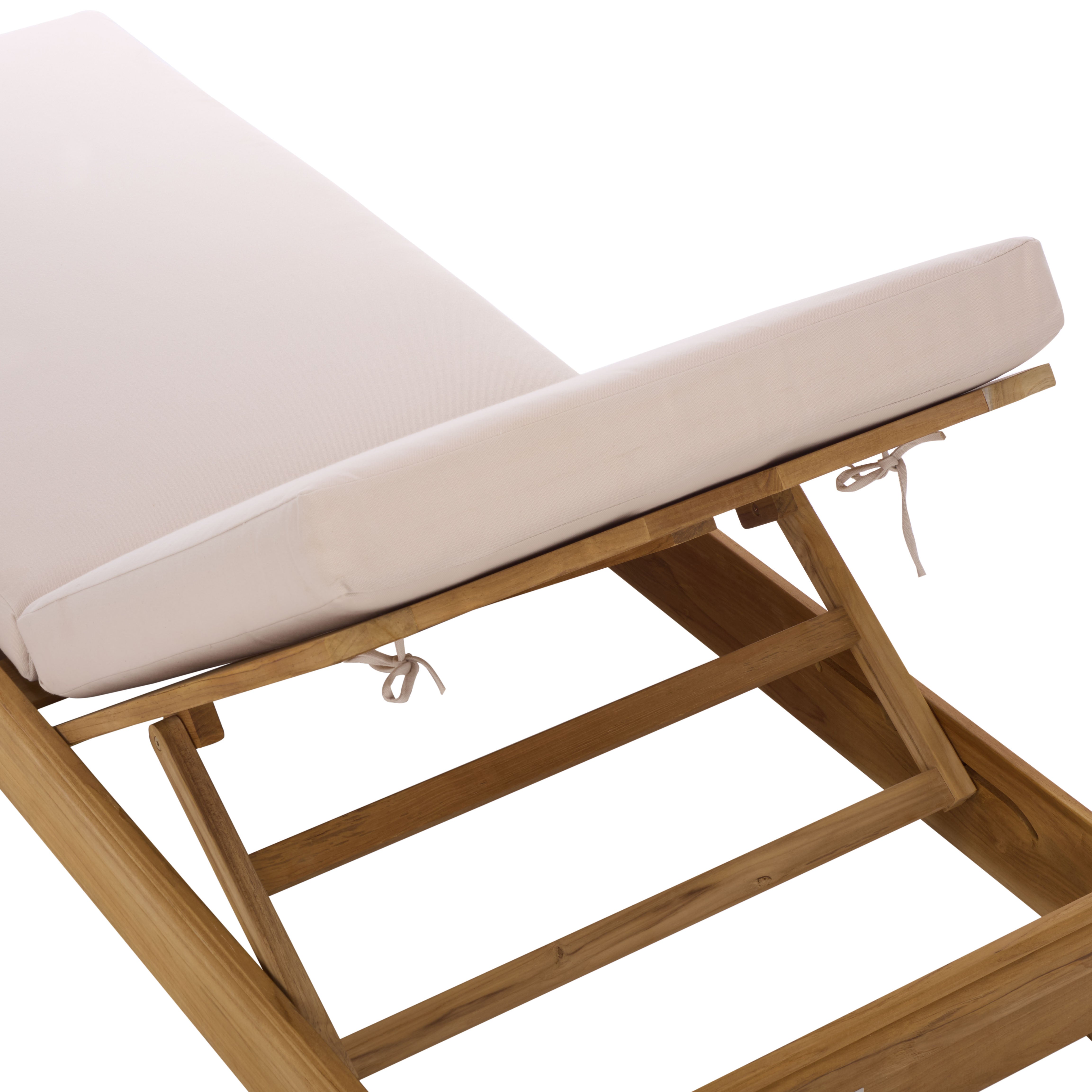 Discover unparalleled comfort and style with the Montford Brazilian Teak Chaise Lounge. Crafted with a distinctive blend of natural teak wood and an elegant beige fabric, this piece exudes sophistication. The graceful wooden frame offers a touch of nature, while the soft foam cushioning invites ultimate relaxation. Whether poolside or on a sunlit patio, this chaise lounge is designed for tranquil leisure. Its timeless design seamlessly complements any outdoor setting. Indulge in the beauty of simplicity and make every moment outside a luxurious escape. Transform your outdoor living area into a personal retreat with this charming and inviting lounge.