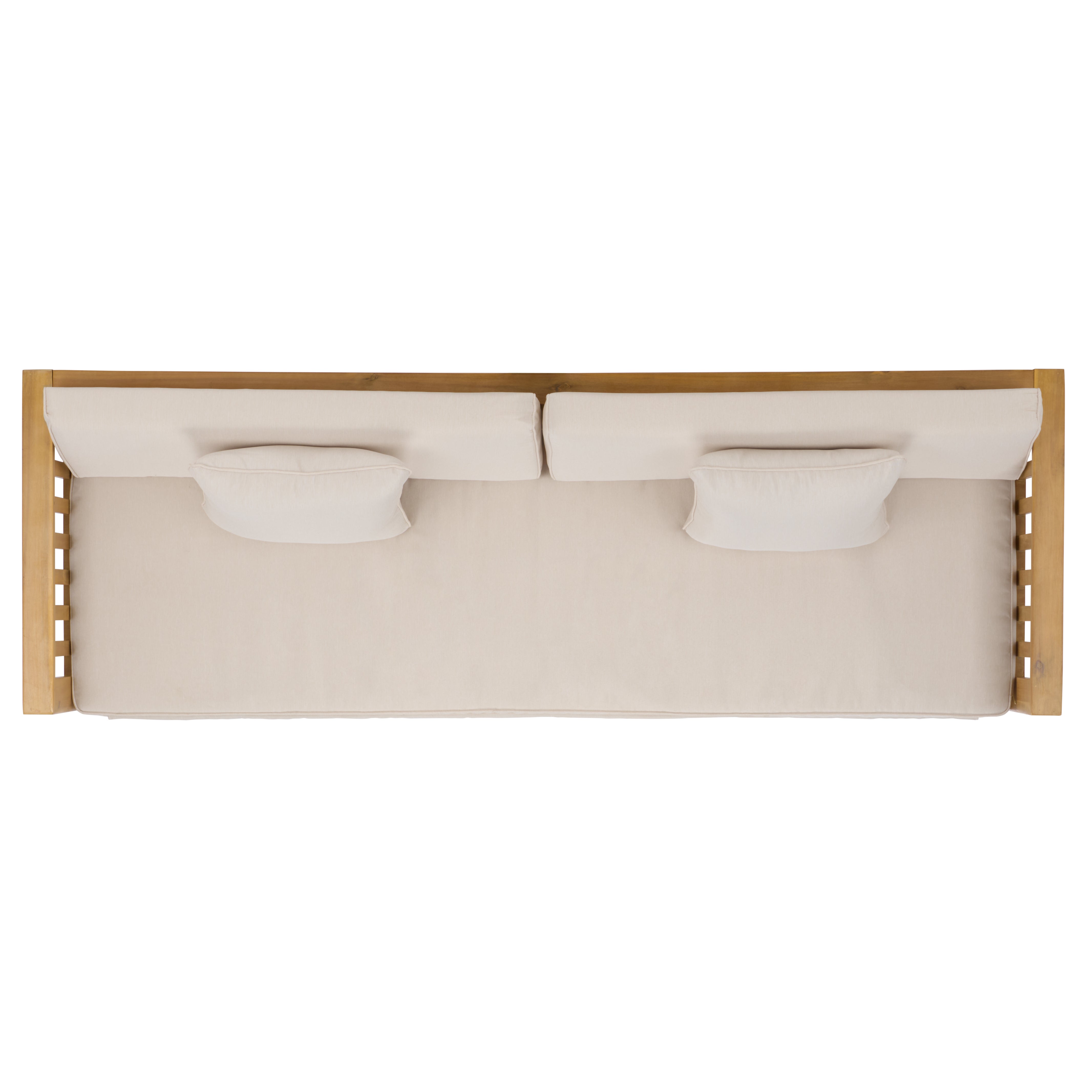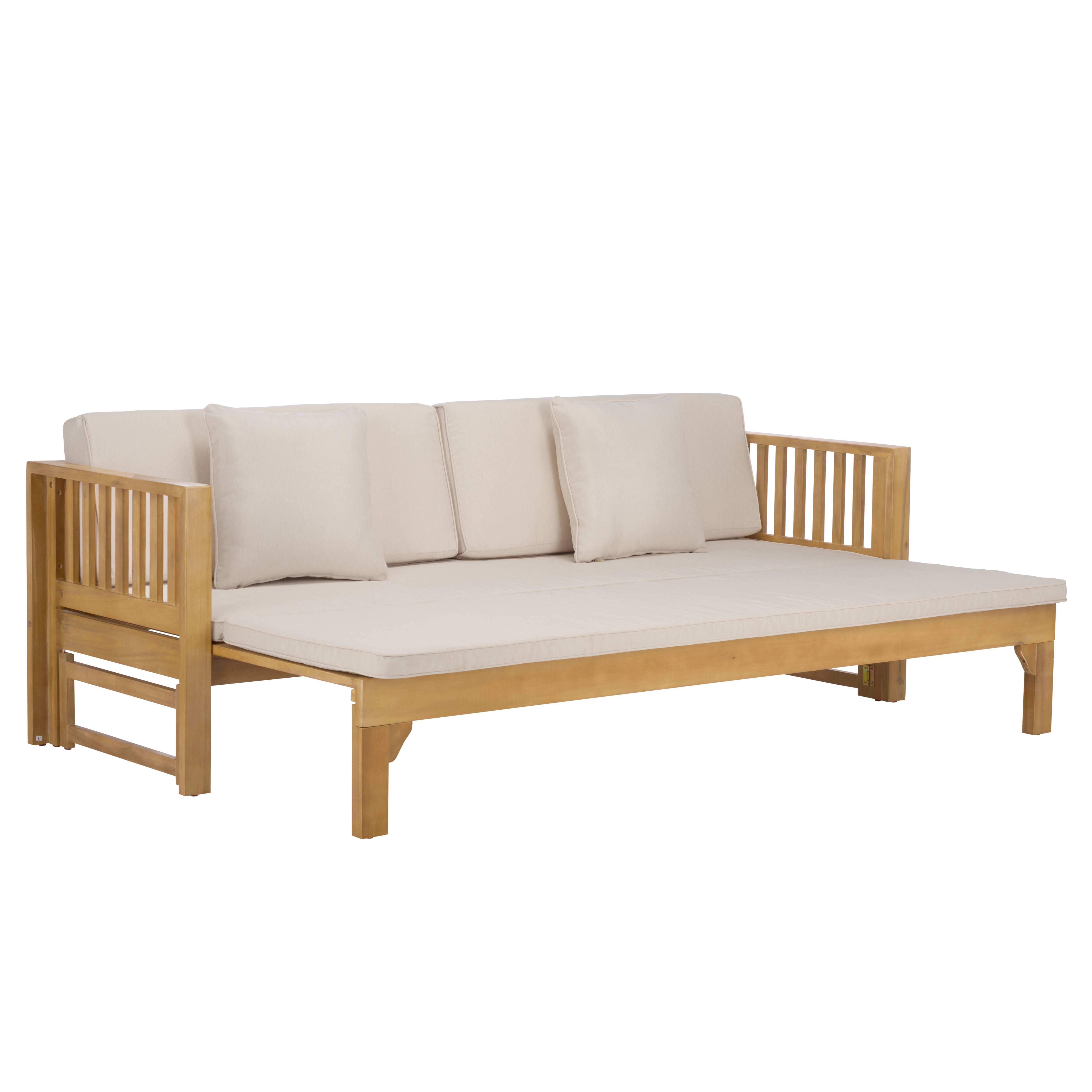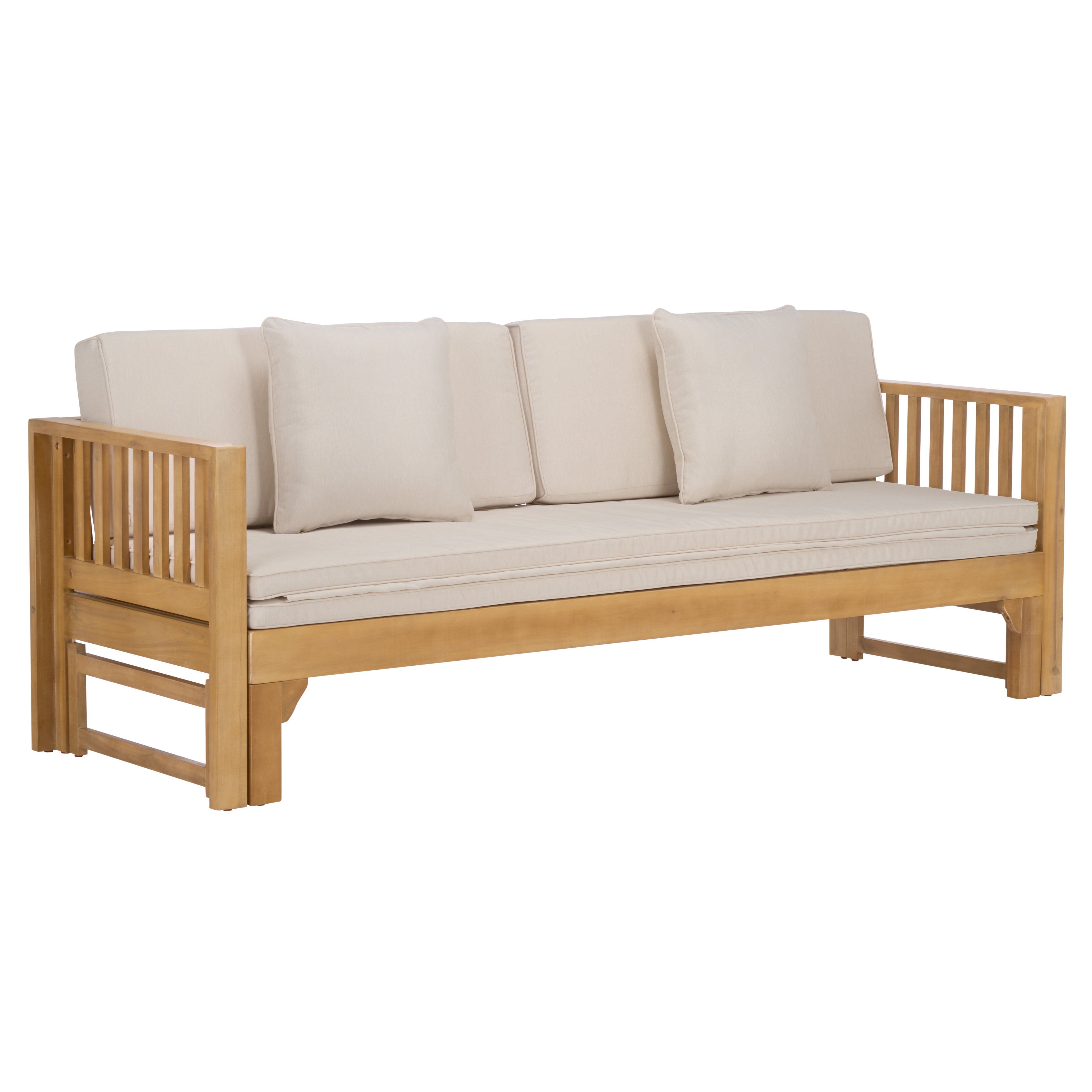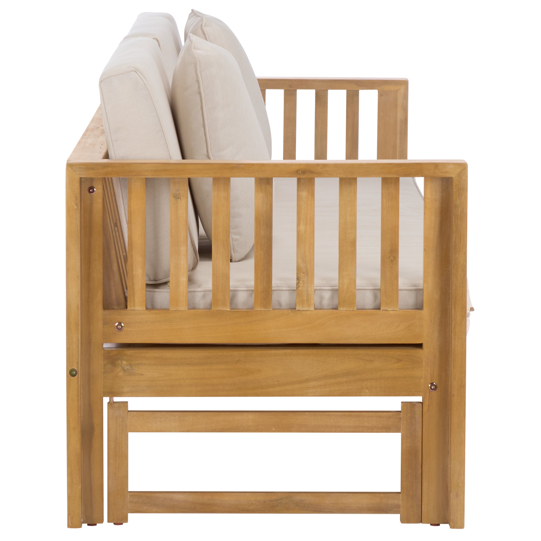 Enhance your outdoor living space with the versatile Napoli Bench & Bed. Expertly crafted from wood, this multifunctional piece easily transitions from a comfortable bench to a cozy bed. The colors pair beautifully with the soft cream cushion, adding elegance to any patio or garden setting.