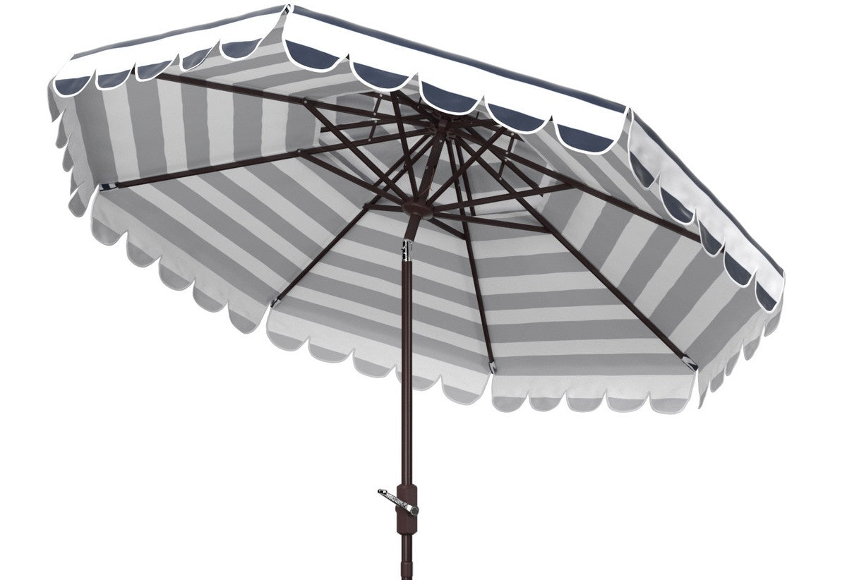 The stylish stripes and scalloped detail of this chic Vienna Umbrella fashionably elevate the art of sunbathing. Vienna’s round double top canopy protects you from harsh summer rays, and its aluminum post intelligently complements its coastal color palette.