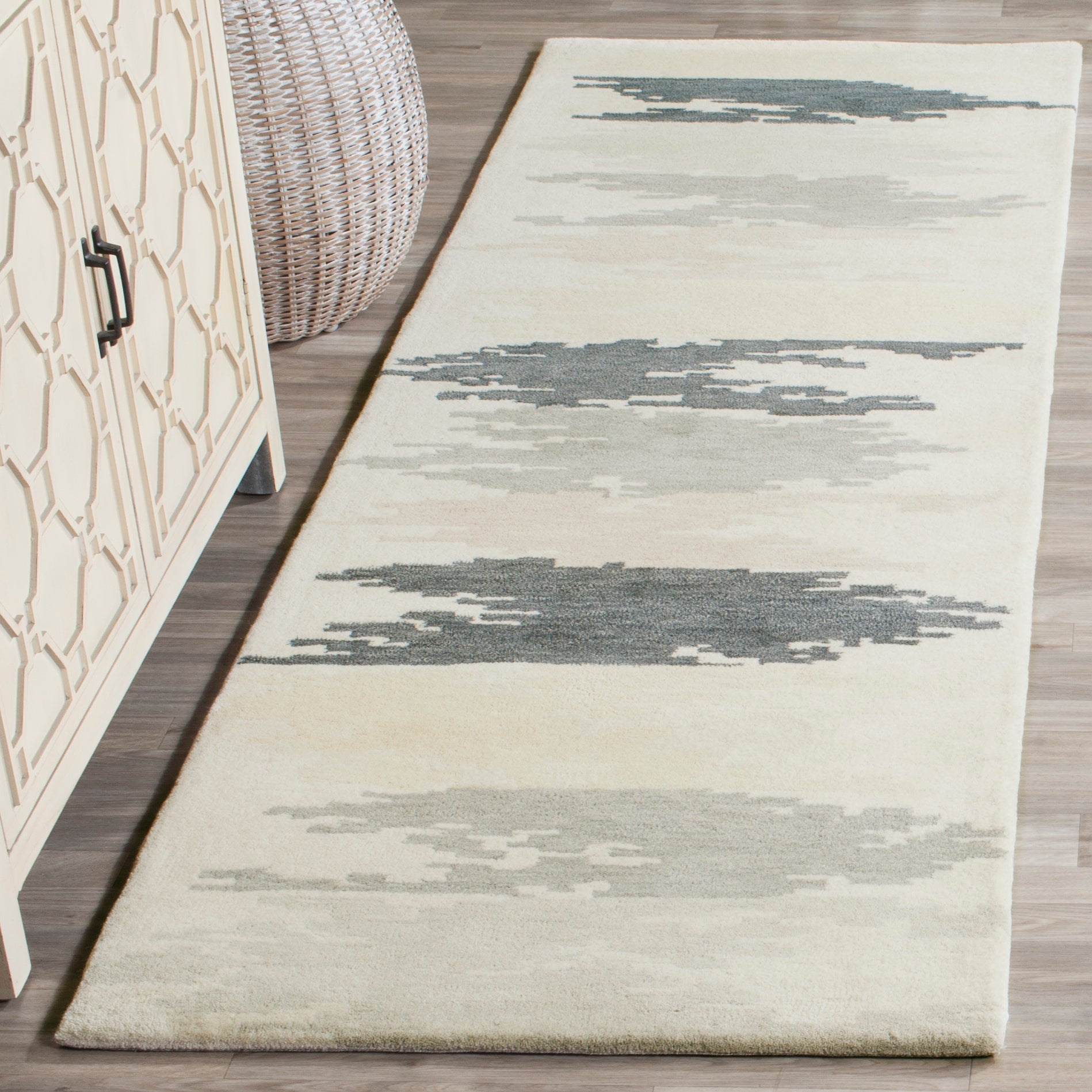 Introducing our elegant accent rug, expertly crafted to transform your living space. Measuring 2 feet by 3 feet, this rug is the perfect addition to any room looking for a touch of style. In soothing ivory and grey, it complements a wide range of decor. The abstract pattern adds a contemporary flair that draws the eye and sparks conversation.