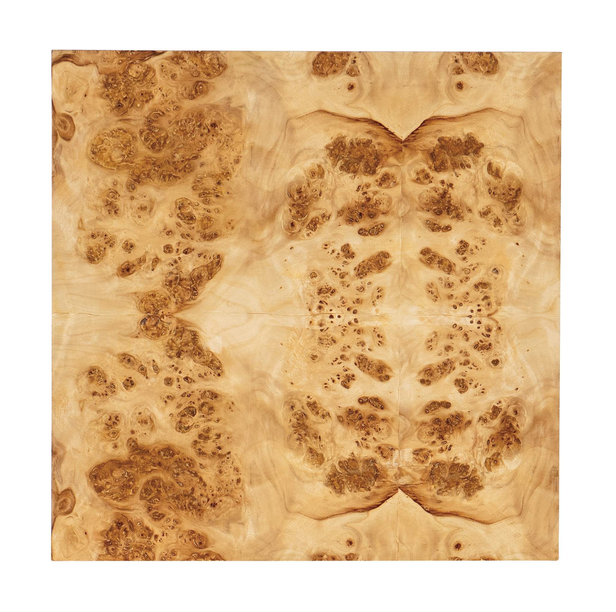 Exuding organic elegance and an earthy warmth, the Auberon Burl Drink Table is crafted of book-matched exotic Burl Wood with waterfall edges. The chic square shape is accentuated by a plinth base. The beautiful natural Burl characteristics make each table unique in its authentic pattern.