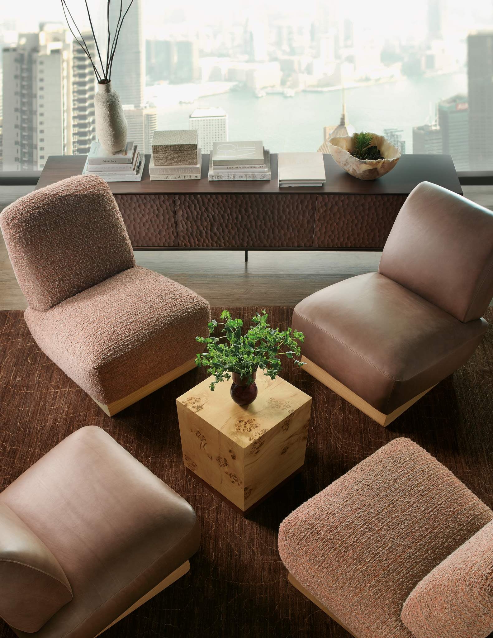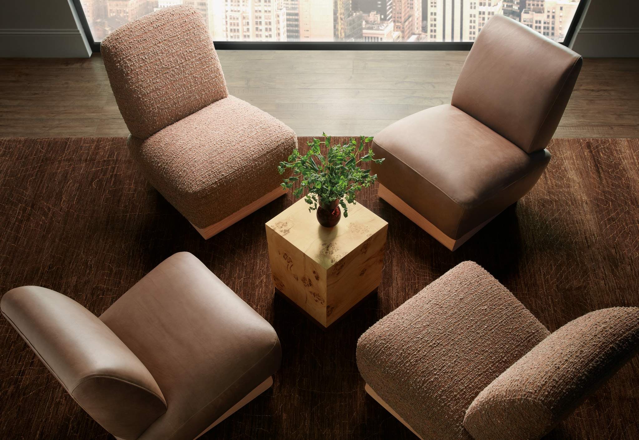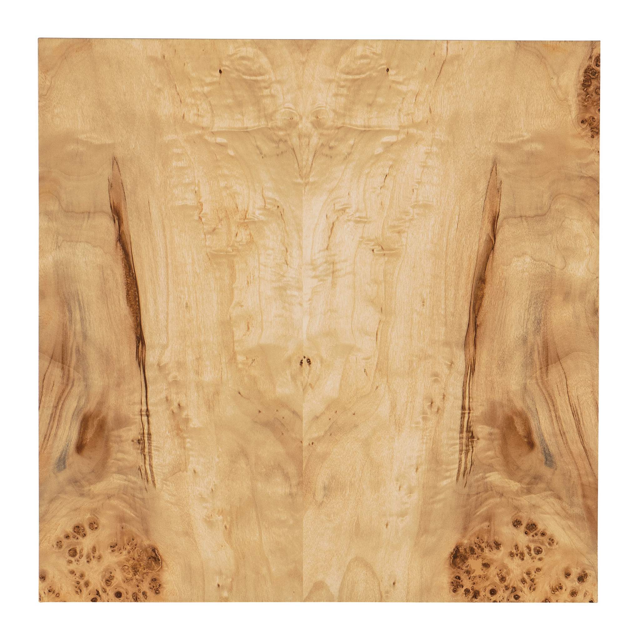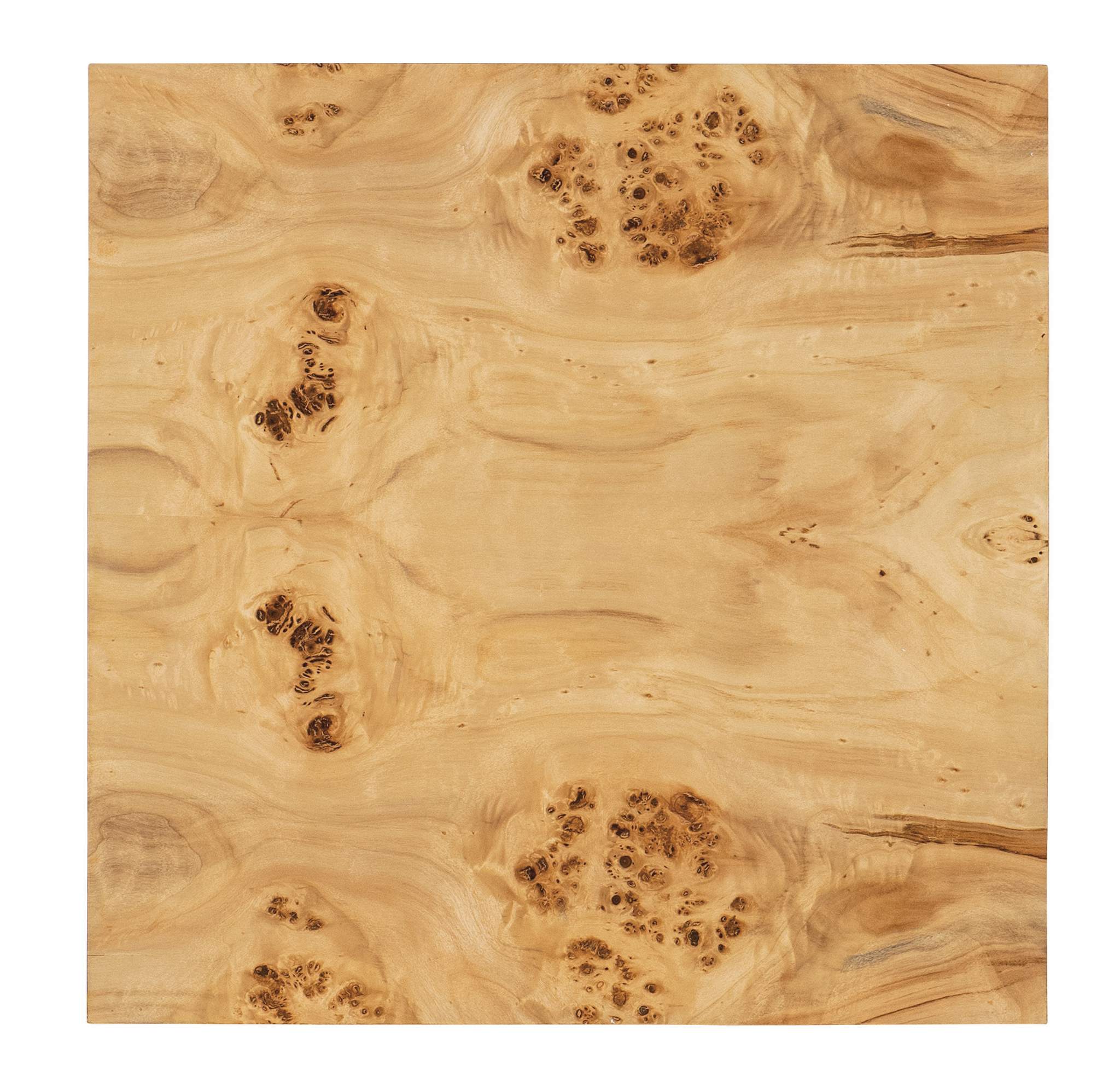 Exuding organic elegance and an earthy warmth, the Auberon Burl Side Table is crafted of book-matched exotic Burl Wood with waterfall edges. The chic square shape is accentuated by a plinth base. The beautiful natural Burl characteristics make each table unique in its authentic pattern.