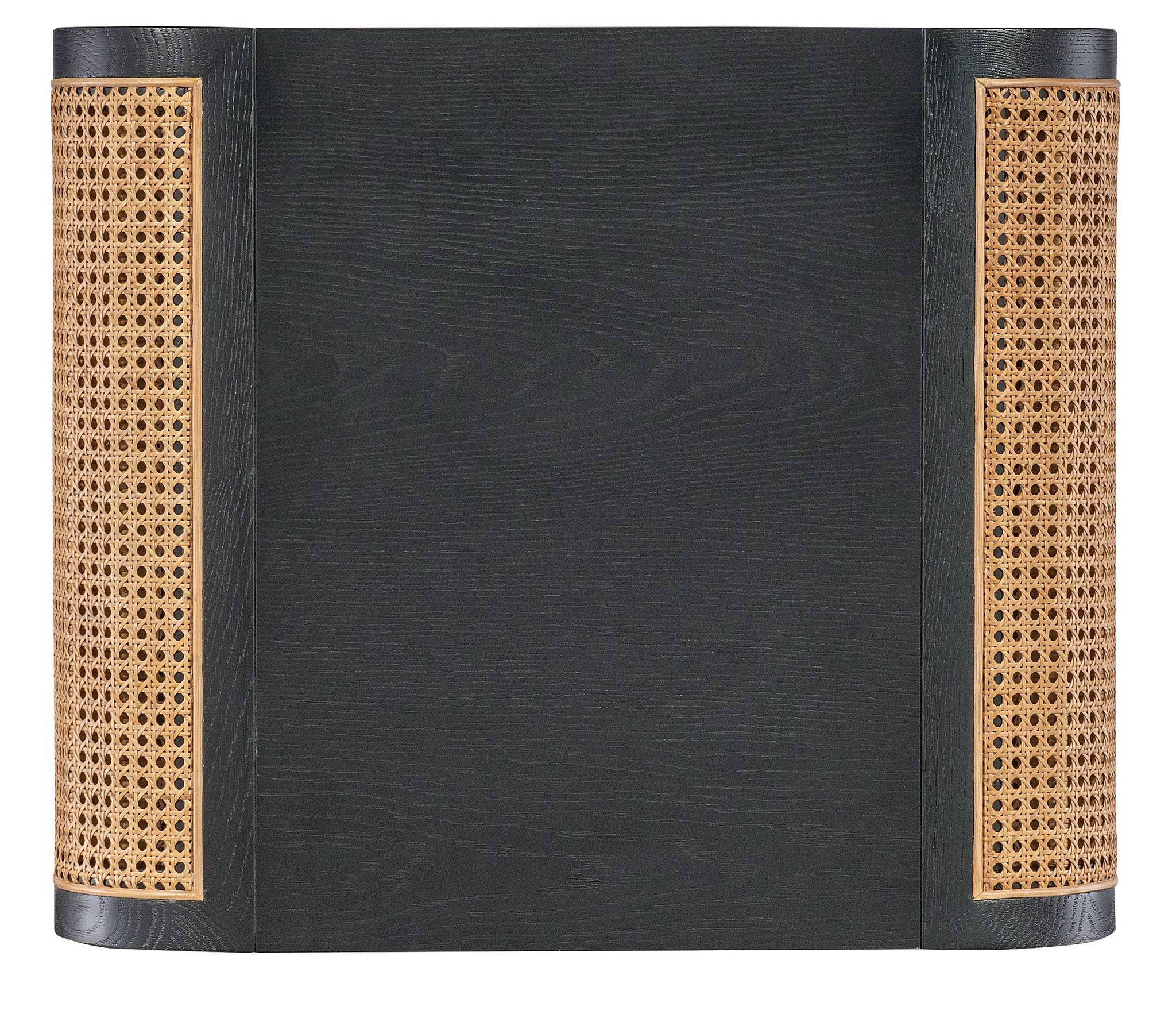 In a simple cube-like design with a light and airy appeal, the Cain Rectangle Side Table has a Red Oak wood top and bottom and one fixed wood shelf, complemented by cane end panels. Measures 26 inches wide by 22 ¼ inches deep.